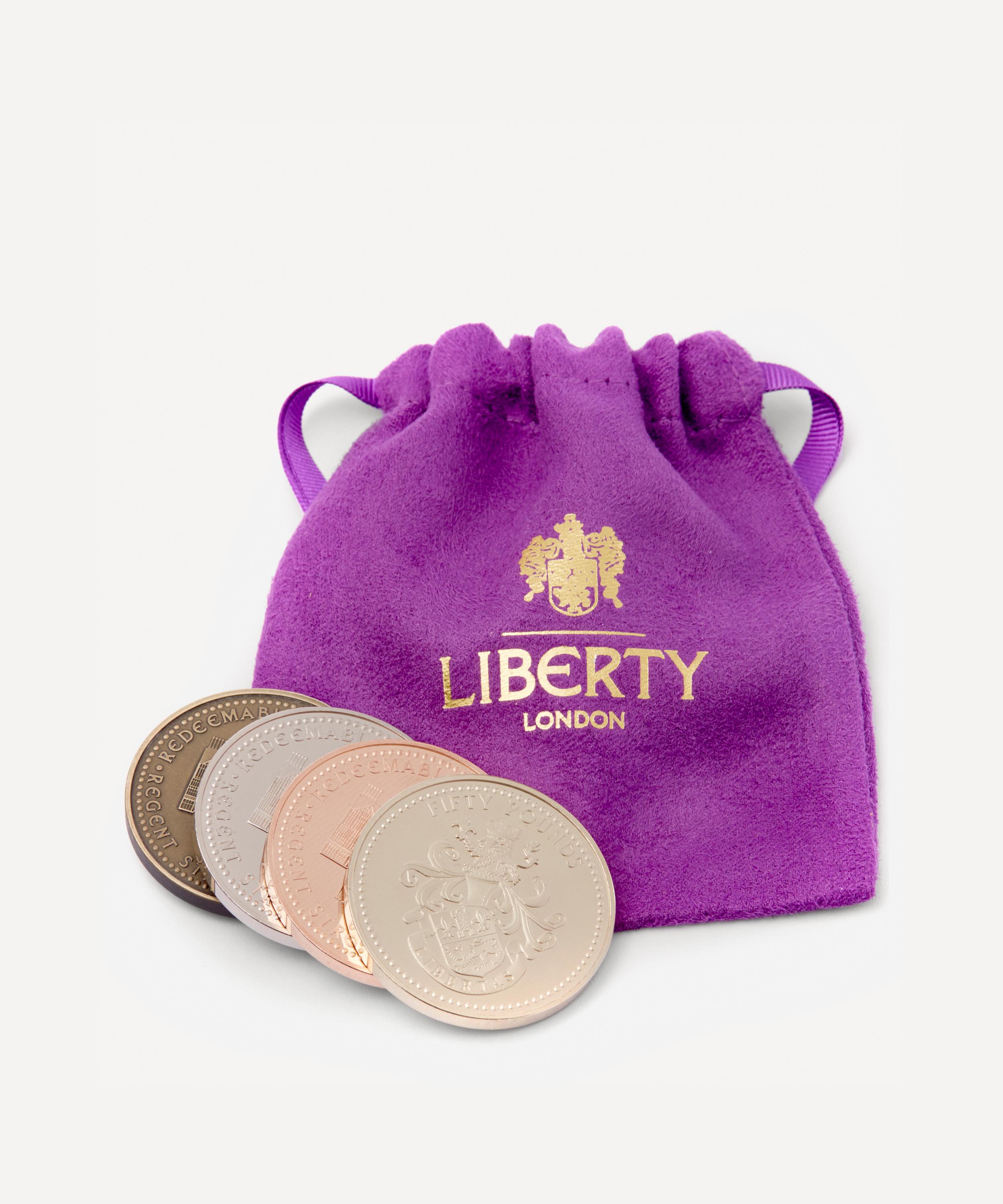 Each Liberty Gift Coin comes beautifully presented in a Liberty branded velvet pouch. Applicable to in-store purchases only, our Gift Coins have no expiry date and can be redeemed at any till point throughout the store, with the exception of Arthur’s restaurant.