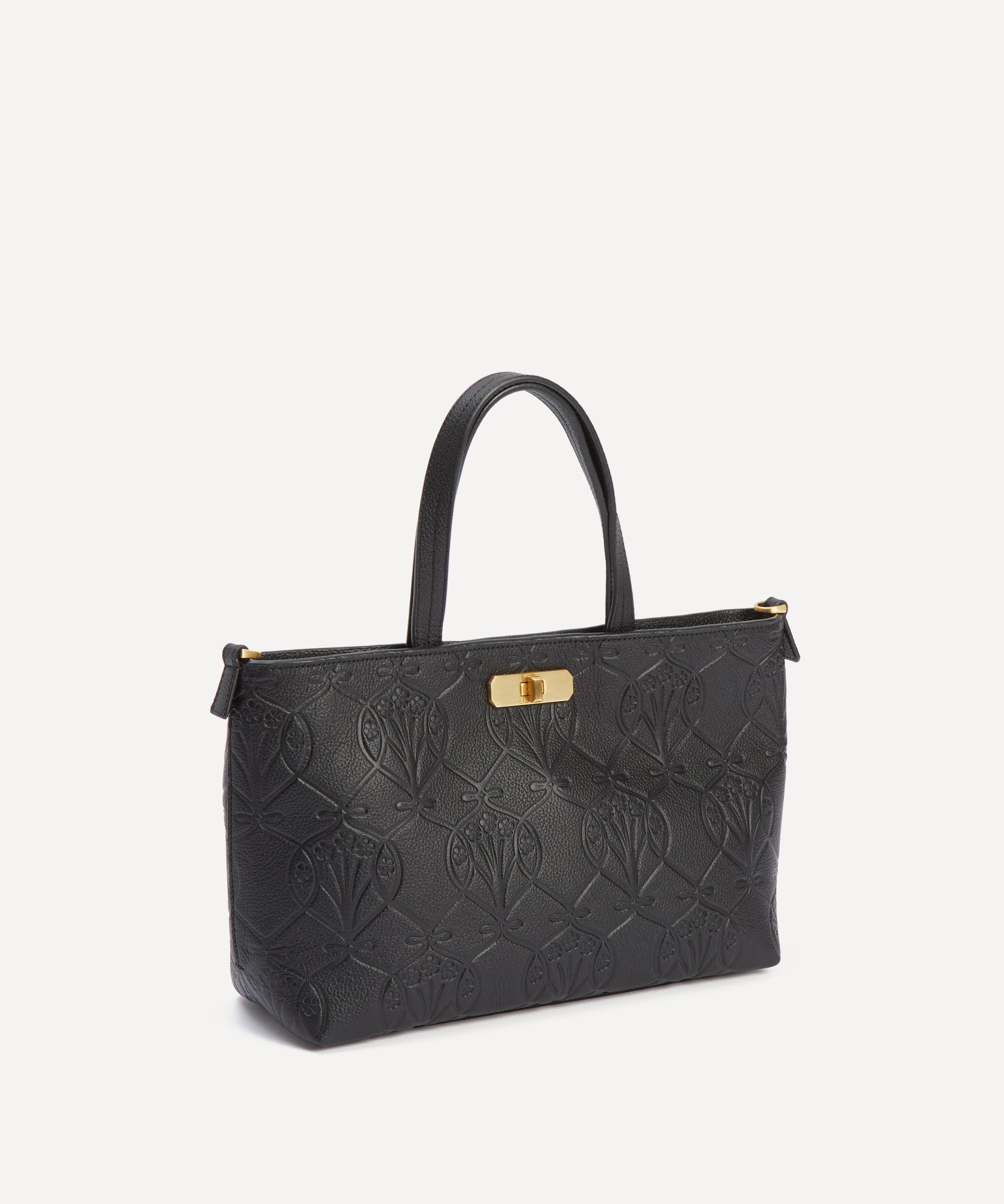 Made from beautiful, hardwearing leather embossed with our Iphis print, it features a refined silhouette to deliver a polished and clean look. Designed to complement both tailored and relaxed wardrobes, it transitions seamlessly from weekday to weekend. Inside, a spacious main compartment is secured by a branded turn-lock closure, inspired by the grandeur of Liberty’s Central Atrium. Complete with an adjustable strap for crossbody wear and two top handles to be worn over the shoulder or carried by hand, it's a luxury investment piece that can be styled with everything and designed to last season after season. Try pairing it with the coordinating Iphis Embossed Burlington Trifold Wallet for a matching look.