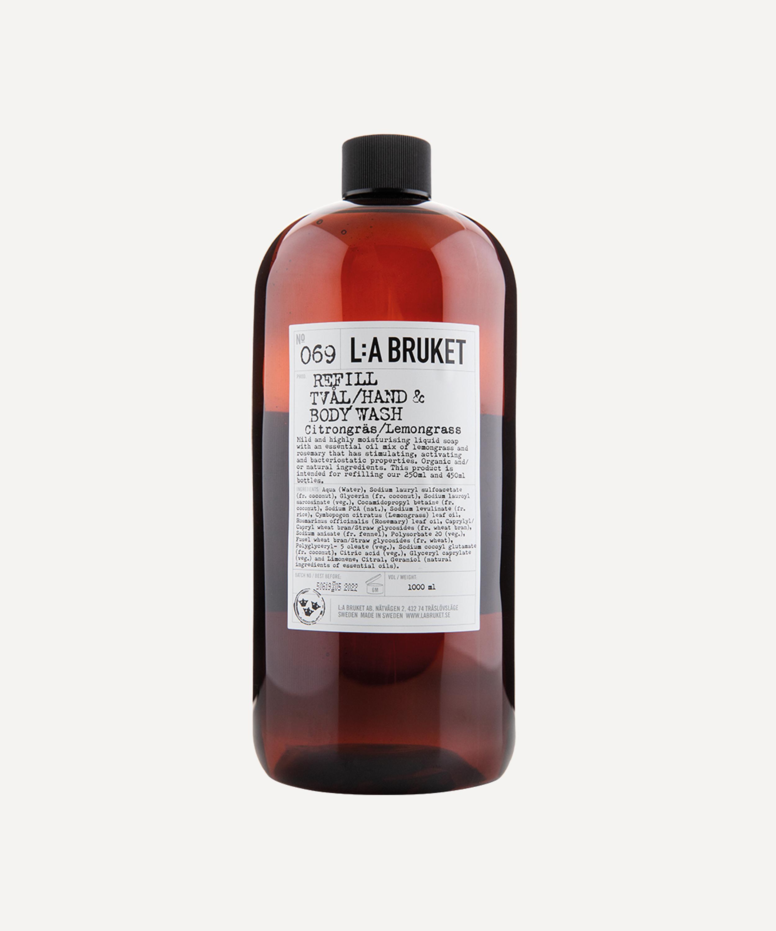 L:A Bruket's 069 Lemongrass Hand and Body Wash refill is designed to replenish your supply of the moisturising liquid soap, infused with a citrusy, herbal scent.