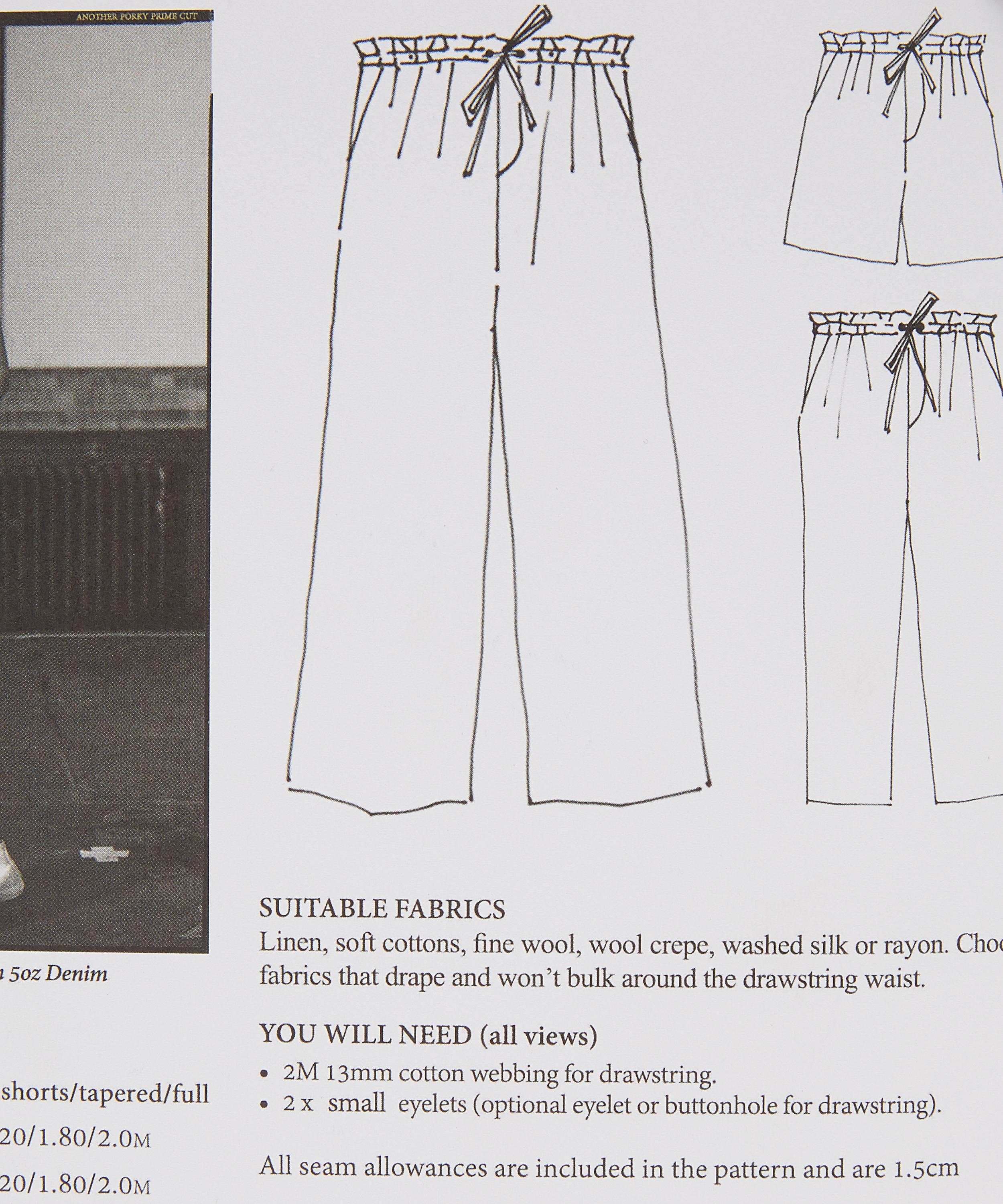 Create a bespoke garment to suit your style, with the 101 Trouser paper sewing pattern from Merchant & Mills – a gentle drawstring trouser with side pockets and a false fly, cut to sit right on the waist.