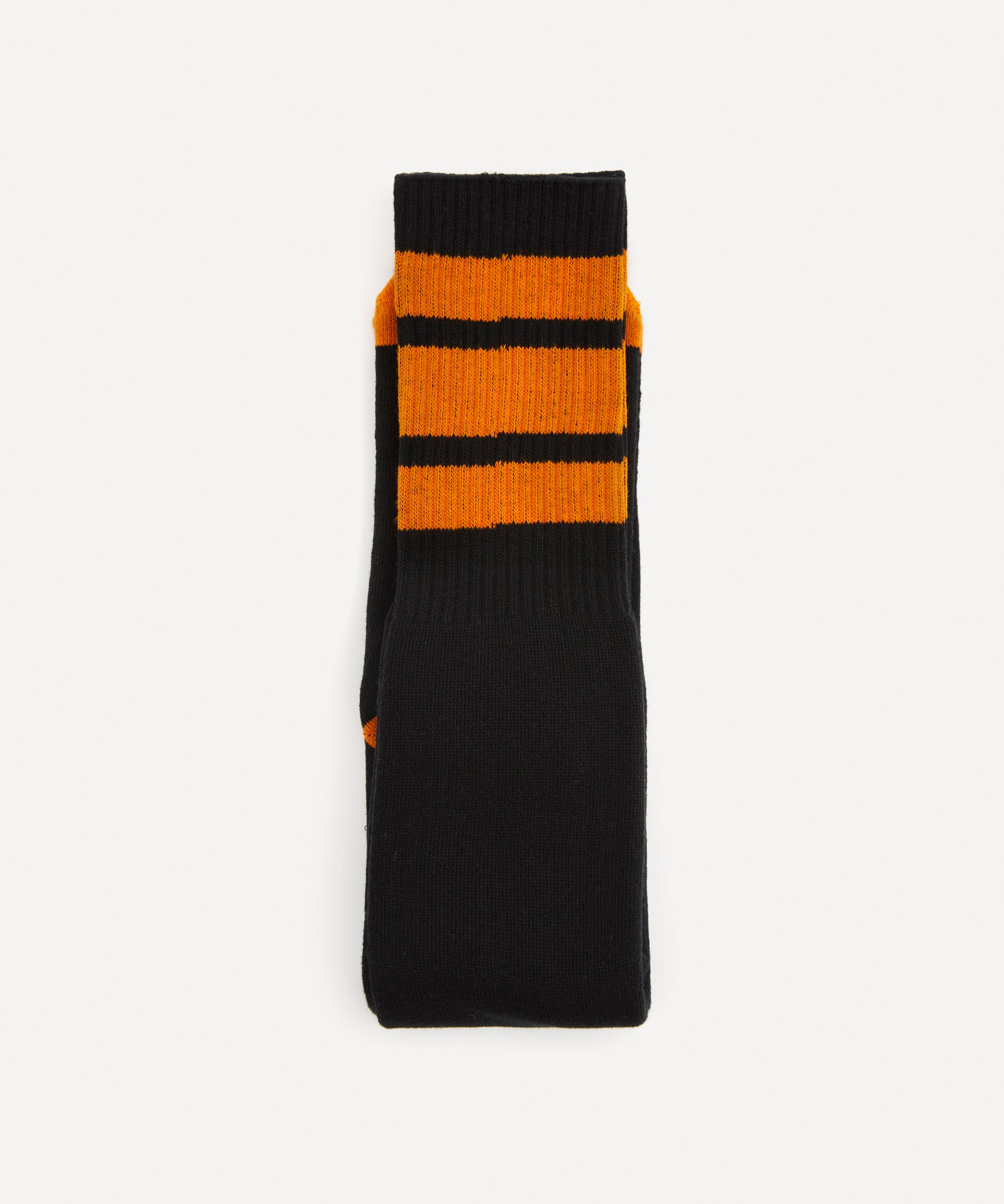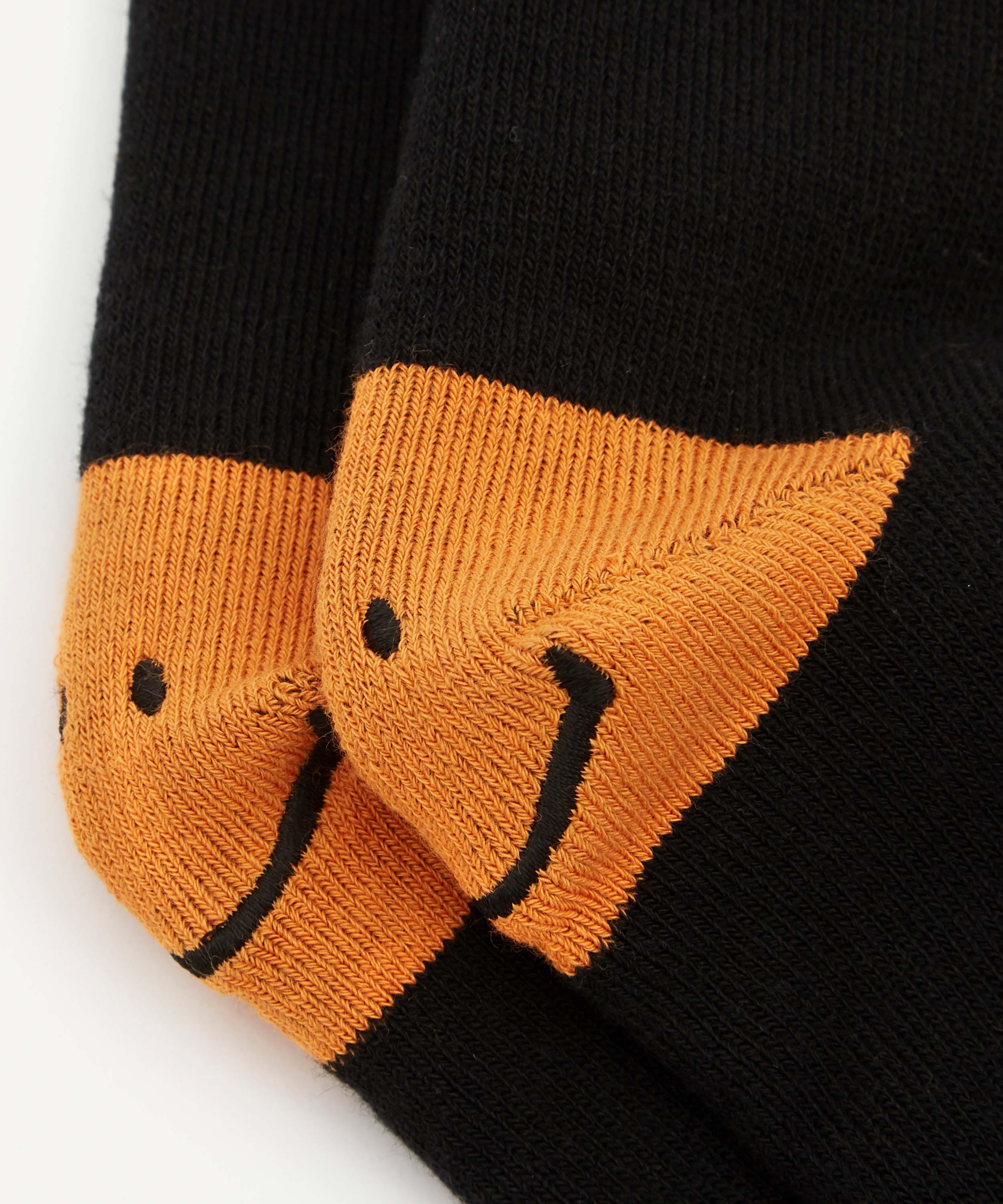 In soft cotton-blend and constructed from 144 yarns, these socks feature the label’s playful smile face motif at the heel, with a contrast toe and knitted ankle stripes. Slip them on beneath skate shoes and heave canvas trousers to brighten up your off-duty edit.
