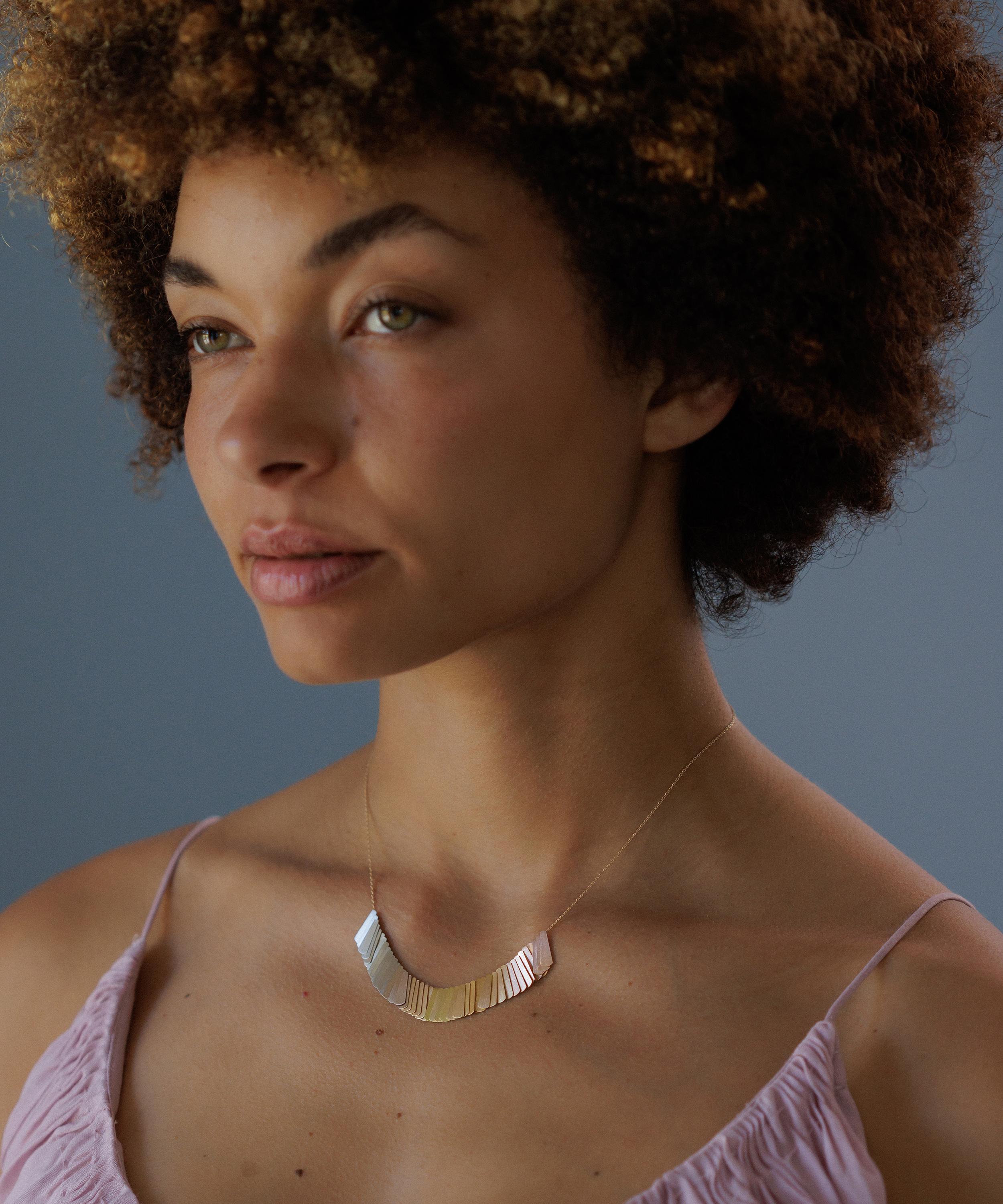 Showcasing the designer's artistic background, the Evening Light necklace by Sia Taylor is the perfect complement to any outfit, from off-duty weekend wear to glamorous evening ensembles.