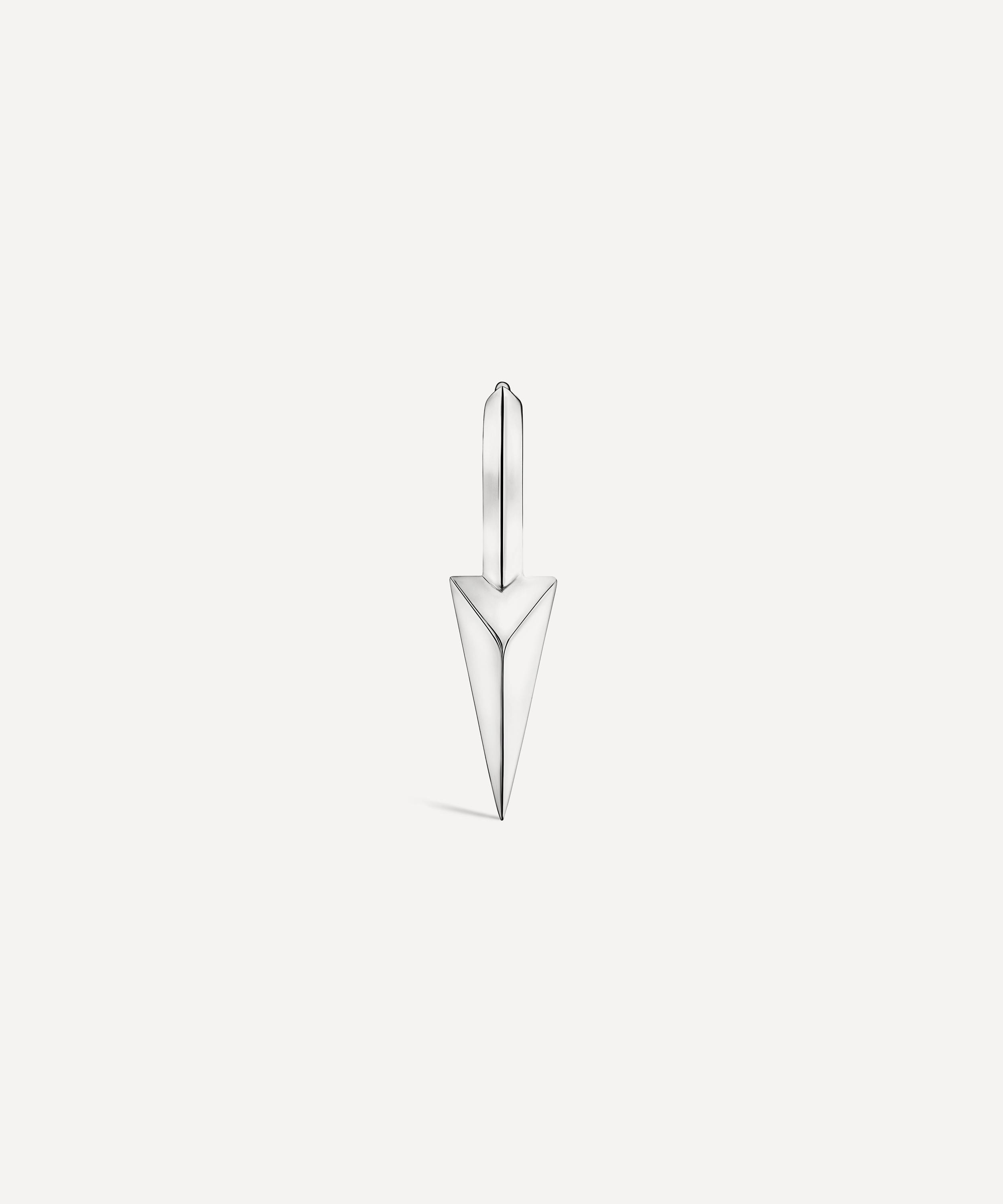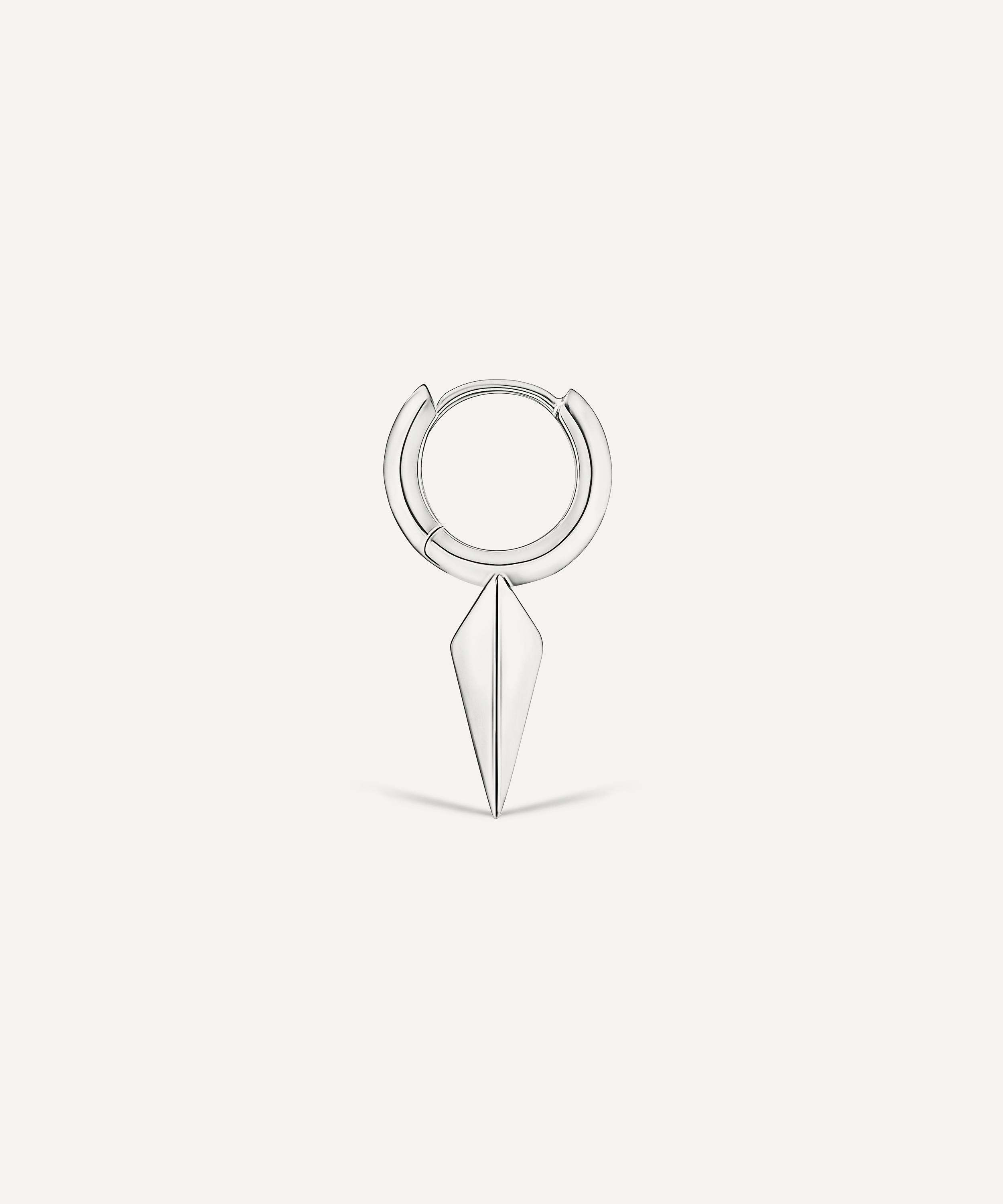 Available in multiple variations of high-polished 14 carat gold, this hoop earring will slot seamlessly into any ear curation and add a punk-inspired touch with its long, faceted spike design. Complete with a convenient clicker fastening, it styles beautifully in both helix and lobe piercings.