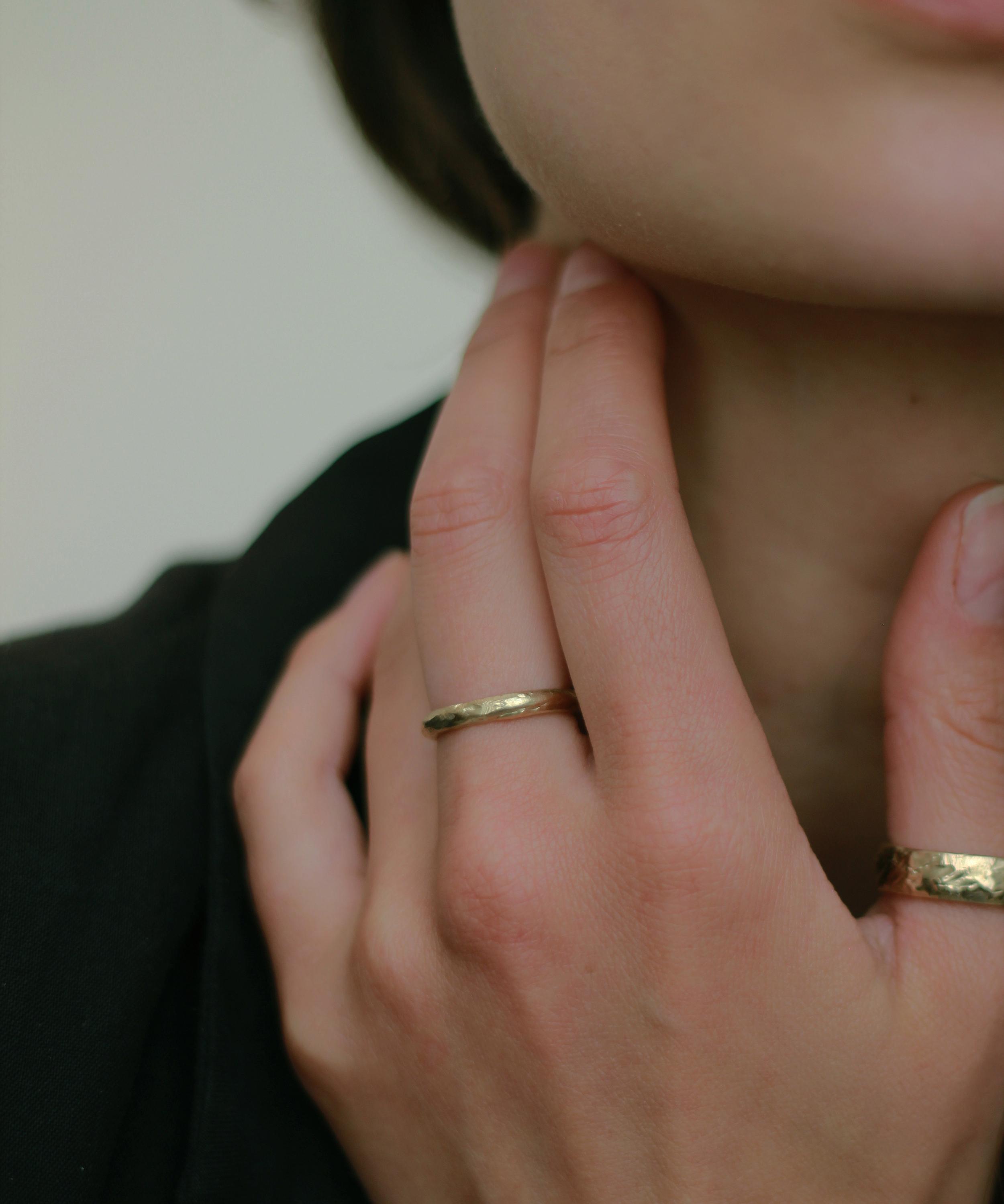 Make your special day complete and say “I do” with this unique wedding band ring from Ellis Mhairi Cameron. Inspired by medieval jewellery hoards found across Scotland, this 14ct gold ring features a softly distressed texture, as if it has been uncovered like buried treasure.