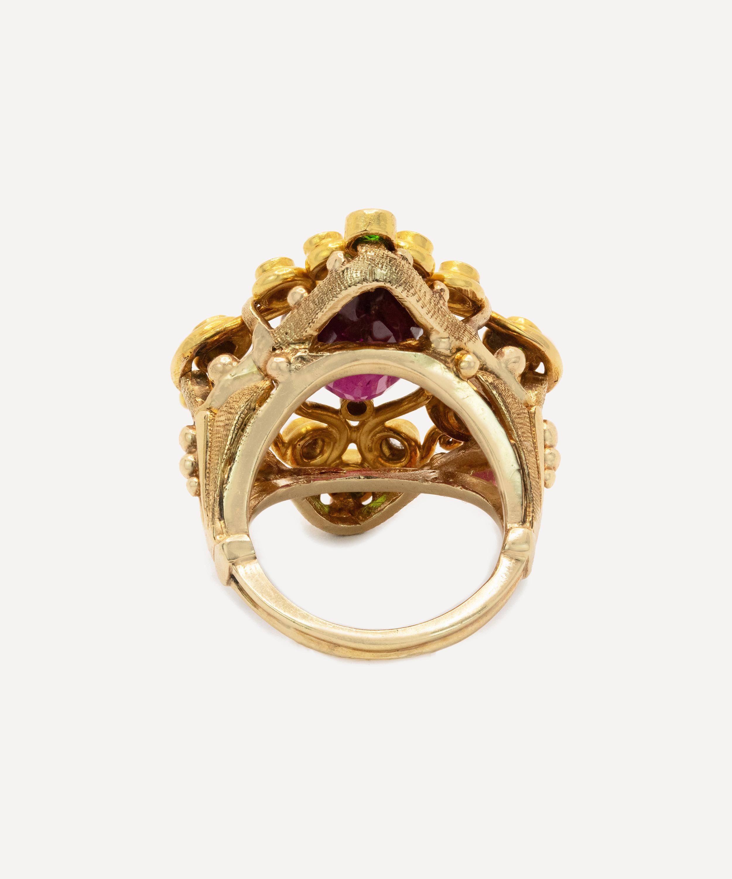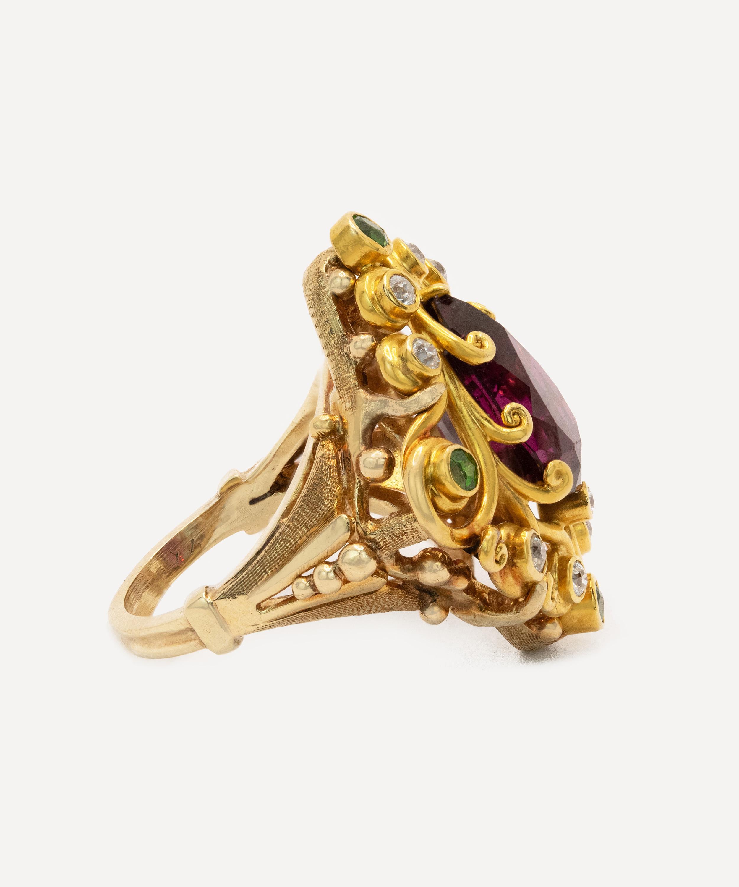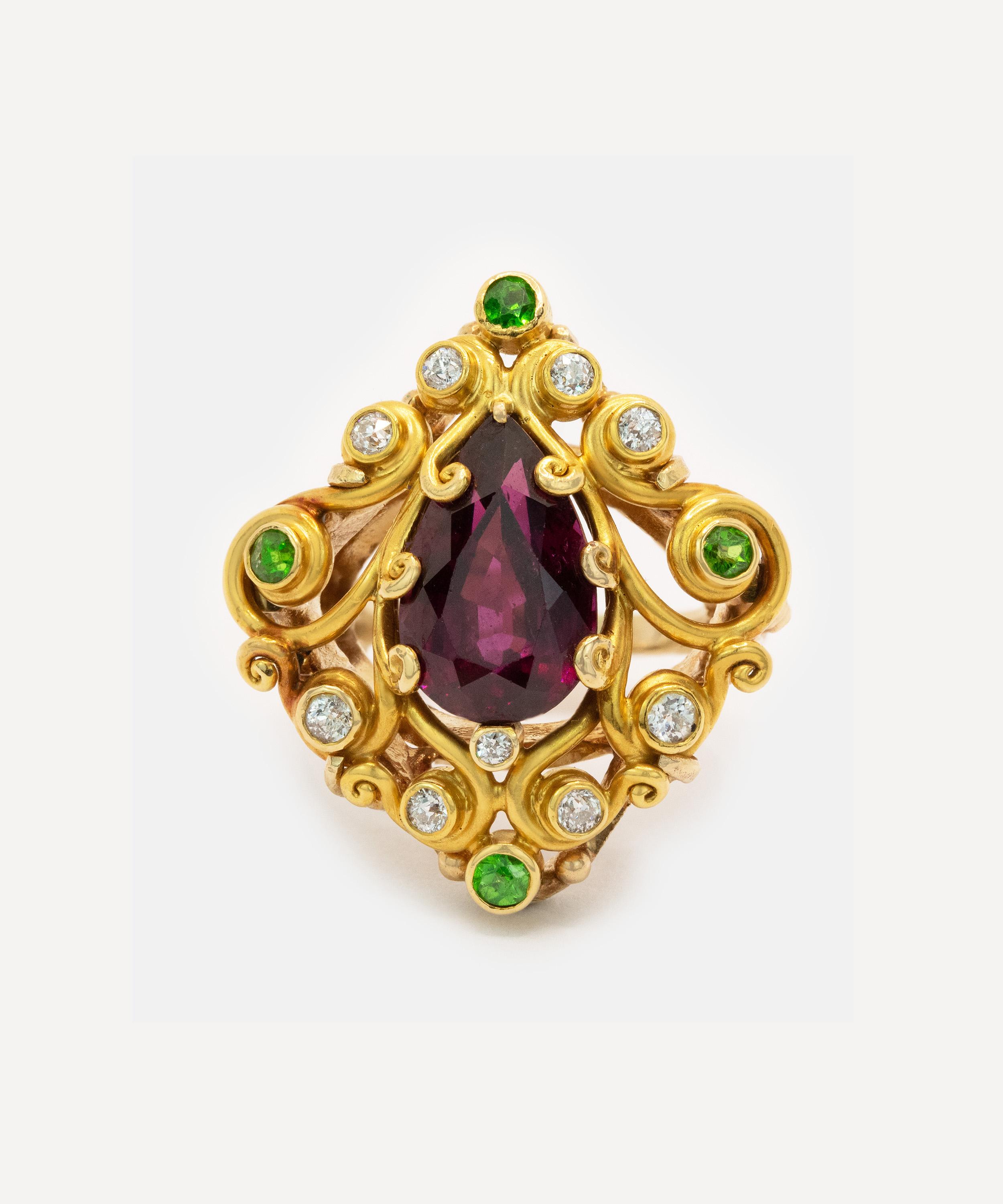 Tests 14ct Gold; Estimated 5.50ct Purple Garnet; Estimated 0.60ct Green Garnet; Estimated 0.30ct Diamond