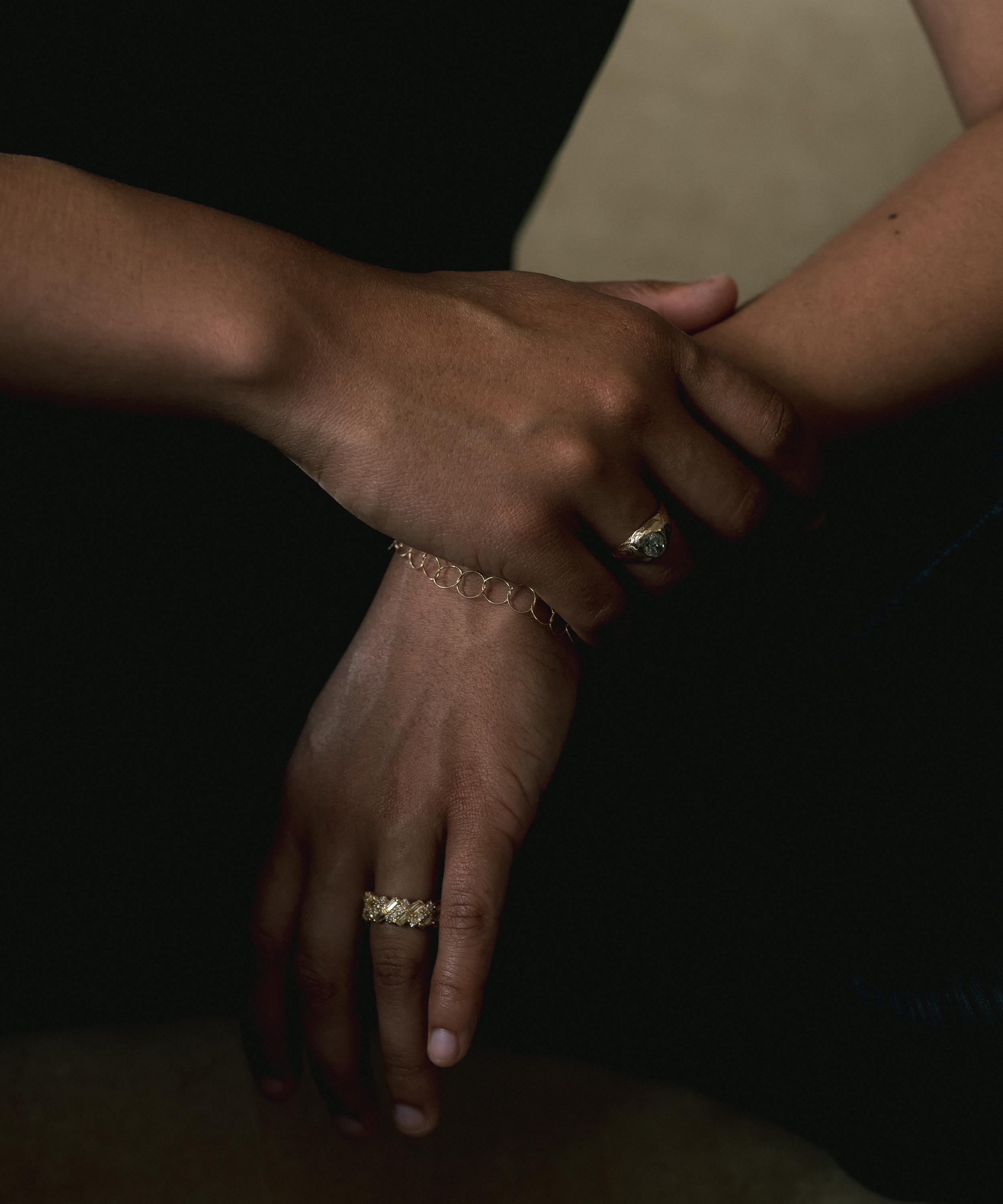 Commemorate a milestone or anniversary with the Armach Diamond Eternity Ring from Ellis Mhairi Cameron. Embodying a unique, antique aesthetic, inspired by medieval jewellery hoards found across Scotland, this 14ct gold ring is adorned with sparkling mix of round, brilliant cut white diamonds and baguette cut lemon diamonds, all set in a softly distressed band, as if it has been uncovered like buried treasure.