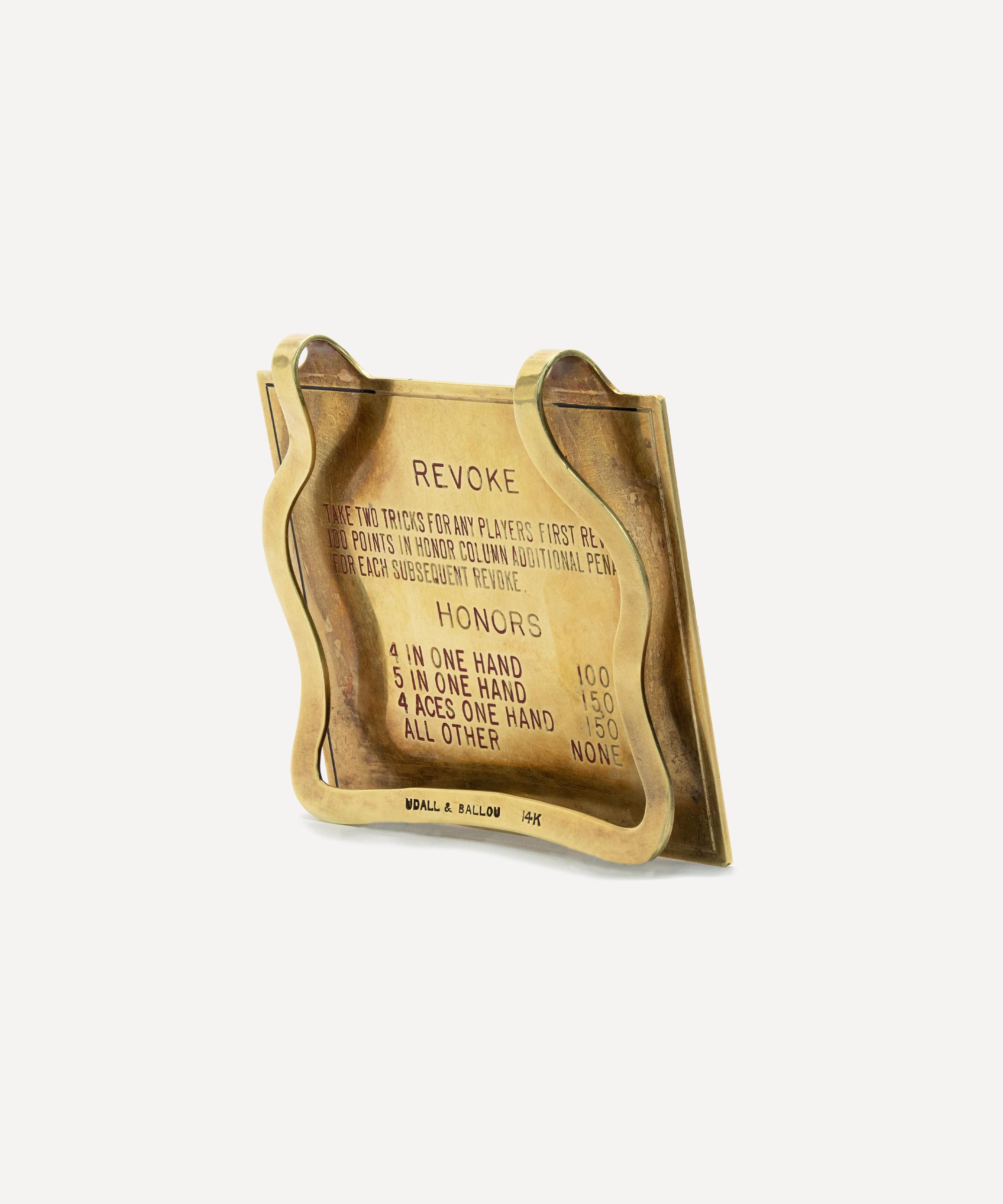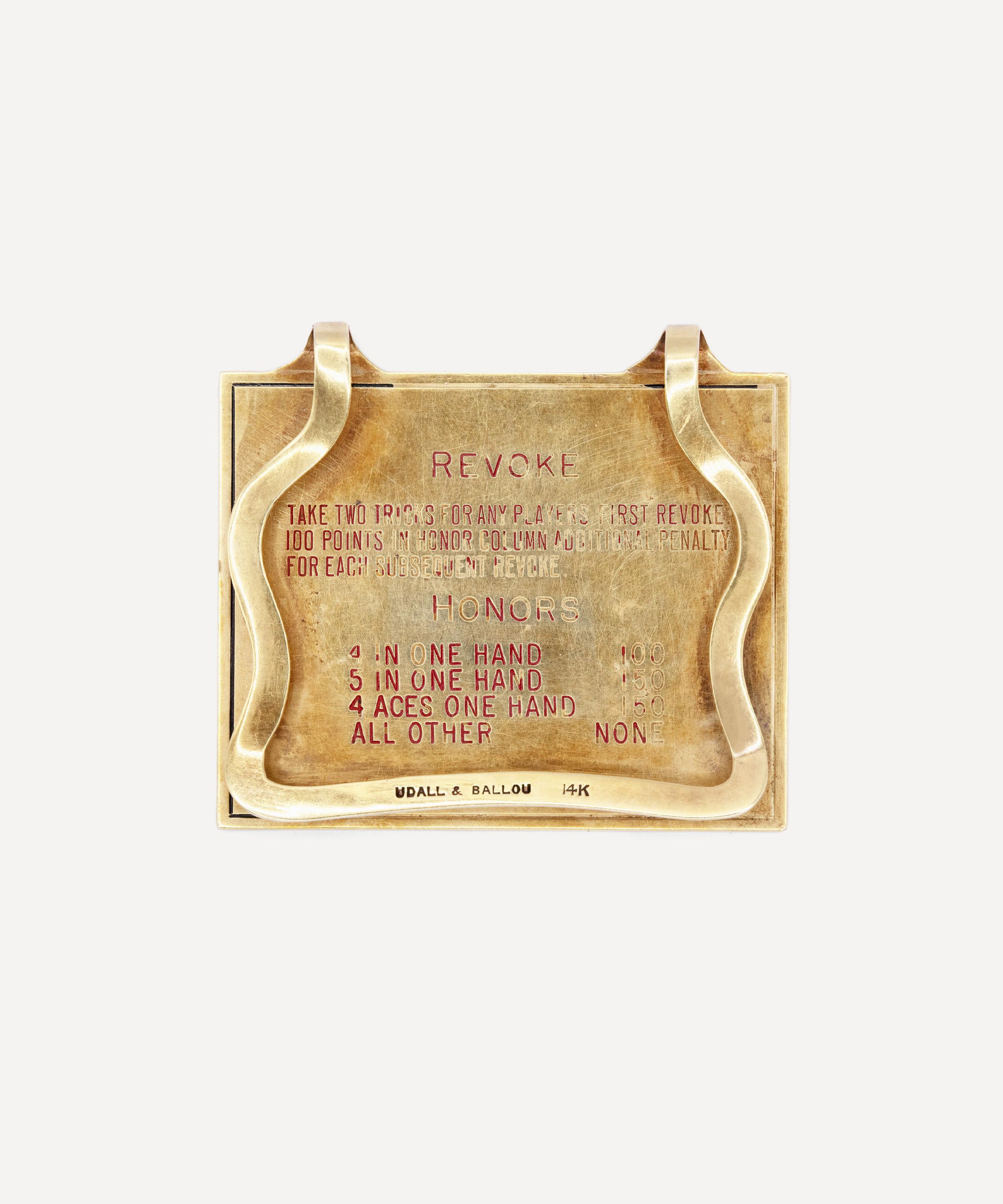 Invest in a piece from the past and express your unique style with this Art Deco money clip from antique purveyor Kojis. Crafted from solid 14ct gold, this distinctive piece features a polished clip with the rules of bridge printed in red and black enamel on both the front and back – giving it character and unique appeal with a touch of nostalgia, perfect for any collector.