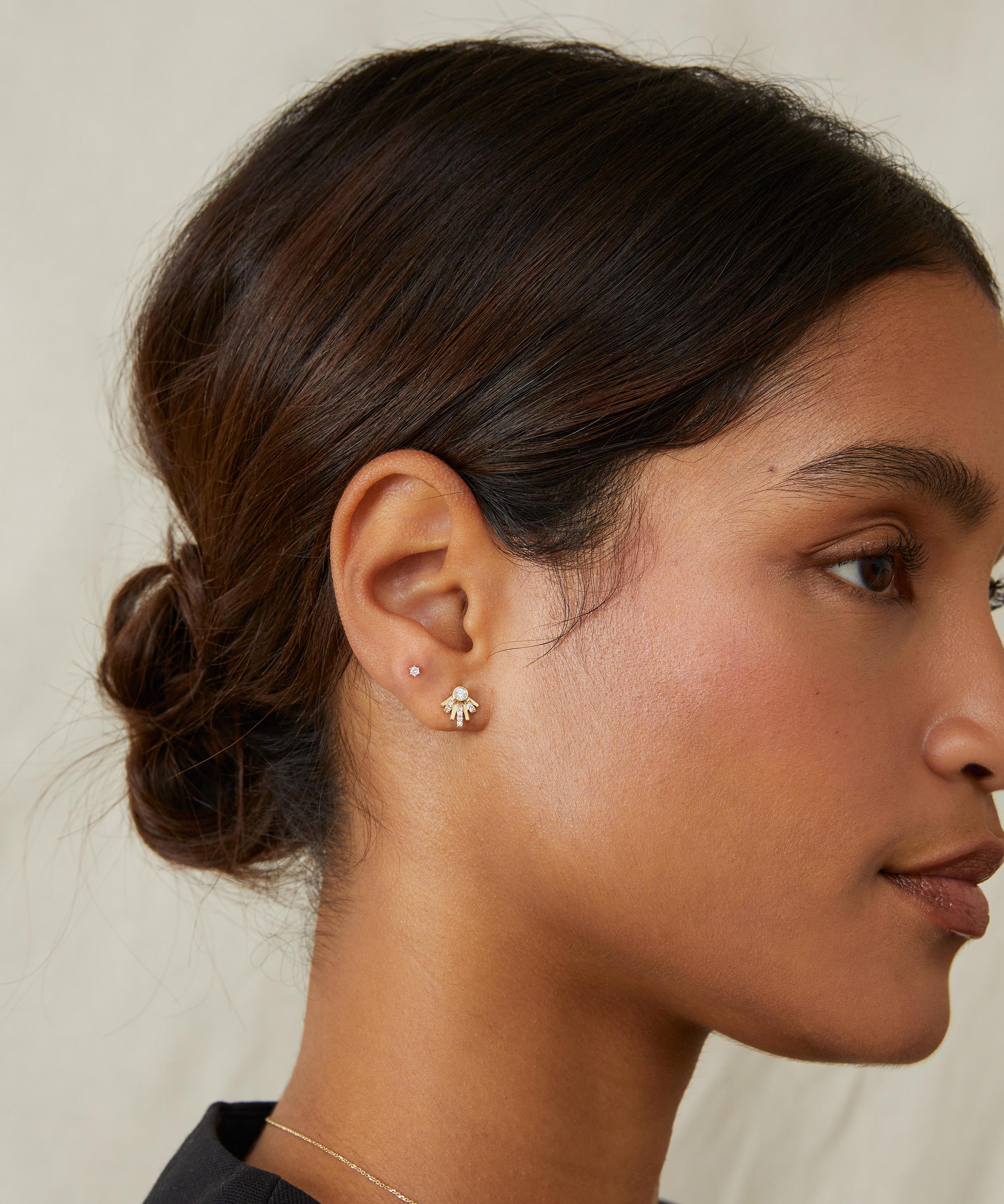 Add the perfect finishing touch to occasion wear with these statement-making Atomic stud earrings from Astley Clarke. Crafted from 14ct gold, each earring features half a starburst studded with lab-grown diamonds – exuding an ambient glow from every angle. Style solo, or team with the matching Atomic Diamond Pendant Necklace and Atomic Diamond Ring for a head-turning curation of jewels.