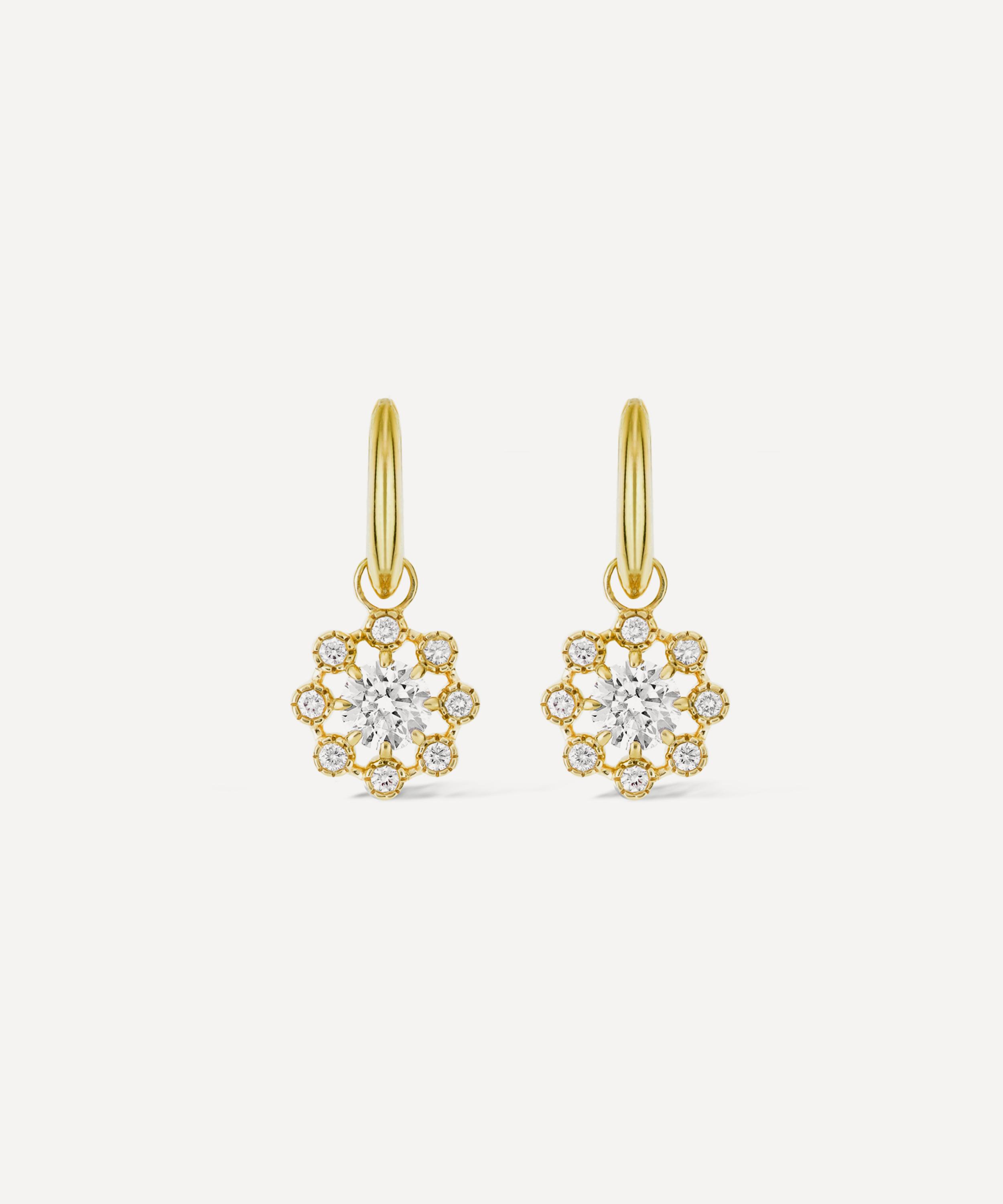 14ct Gold Celandine Diamond Drop Hoop Earrings