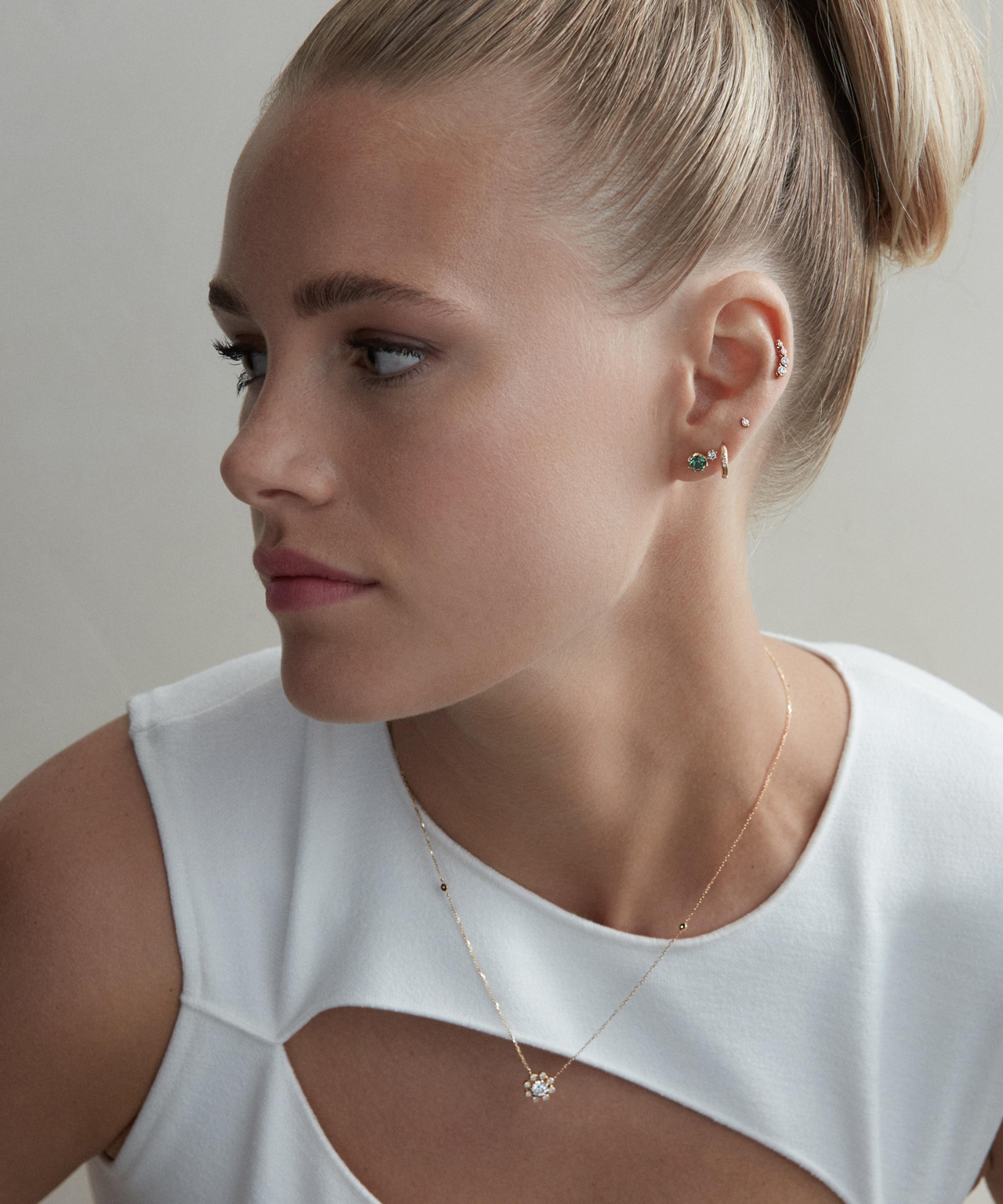 Heighten the impact of your jewellery line-up with Dinny Hall’s unique Celandine pendant necklace – inspired by the British flower meadow. Crafted from 14ct gold, it features a fine cable chain adorned with brilliant cut diamonds arranged in a beautiful flower design. Style it as a statement piece, team with additional necklaces, or wear it with the matching earrings from the Wildflower collection.