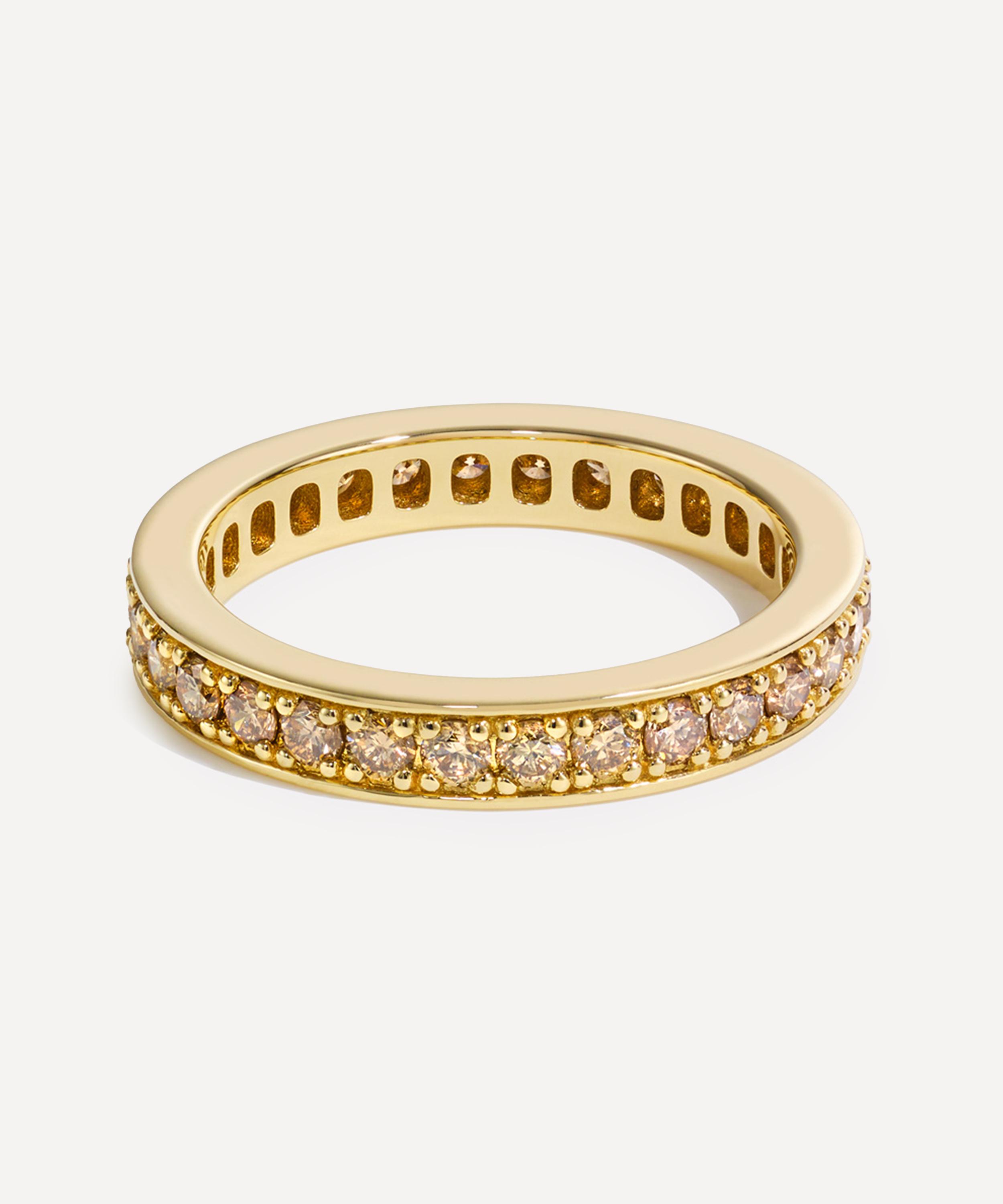 Indulge in the Chubby diamond ring from By Pariah and effortlessly infuse your curated outfits with refined luxury. Epitomising elevated elegance, it’s crafted from 14ct gold, featuring a wide silhouette lined with sparkling champagne diamonds. Style it as a solo piece, or stack it with other rings.