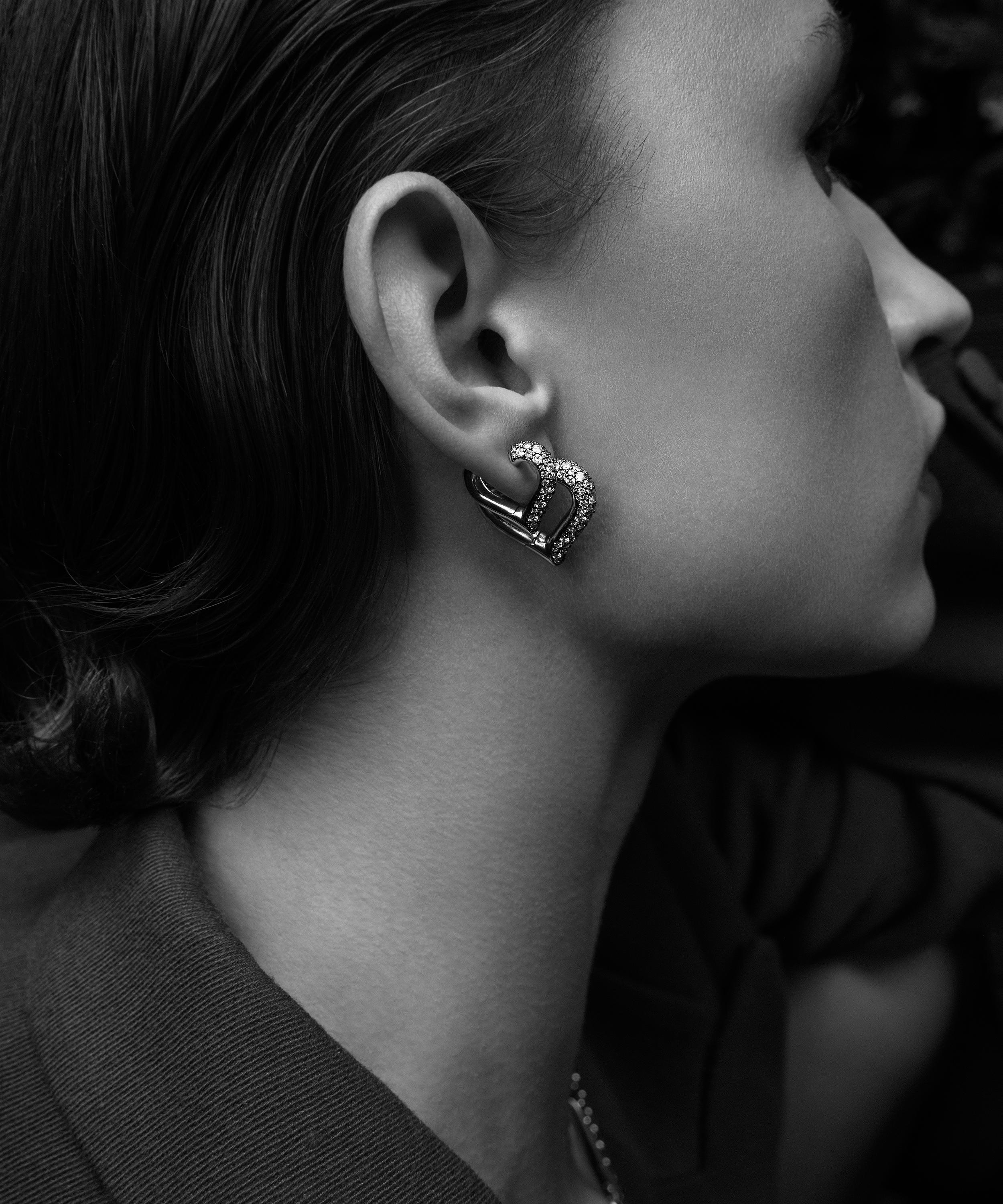 Crafted from 14ct gold, this pair feature a chubby heart-shaped design adorned with a Victorian set diamond pavé atop white rhodium. Referencing a vintage silhouette with a modern sentiment, they make for a versatile addition to any jewellery collection. Weather worn alone or layered, they will instantly draw attention to both casual and formal looks with a subtle allure.