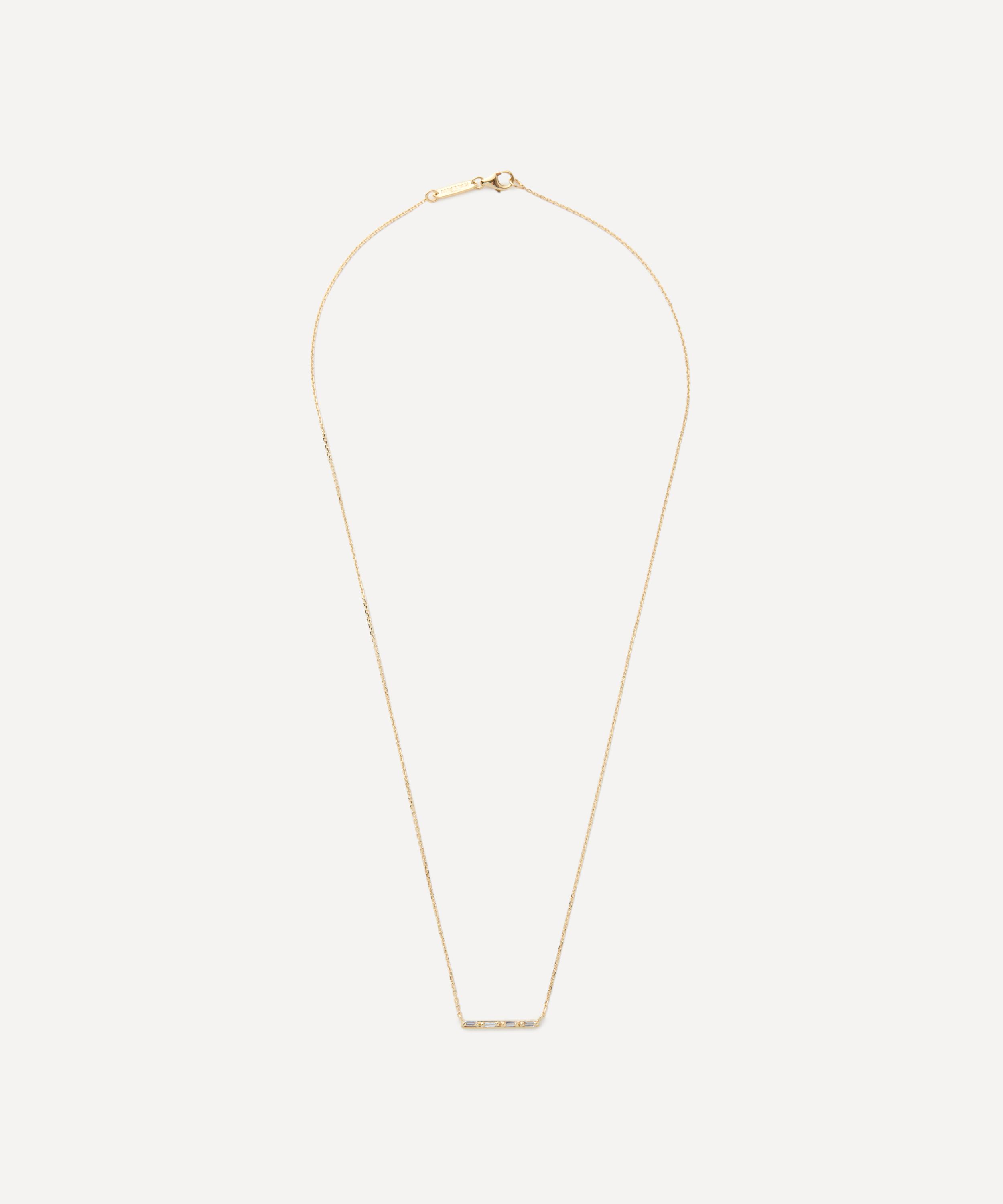 Add subtle sparkle to everyday looks with the diamond bar pendant necklace from Suzanne Kalan. Exemplifying the designer's contemporary approach to traditional fine jewellery design, it features a fine cable chain crafted from 14ct gold, adorned with a bar pendant composed of glittering, baguette cut diamonds. Style it solo, or mix and match with the designer's other gemstone encrusted pieces for an unforgettable cocktail hour curation.