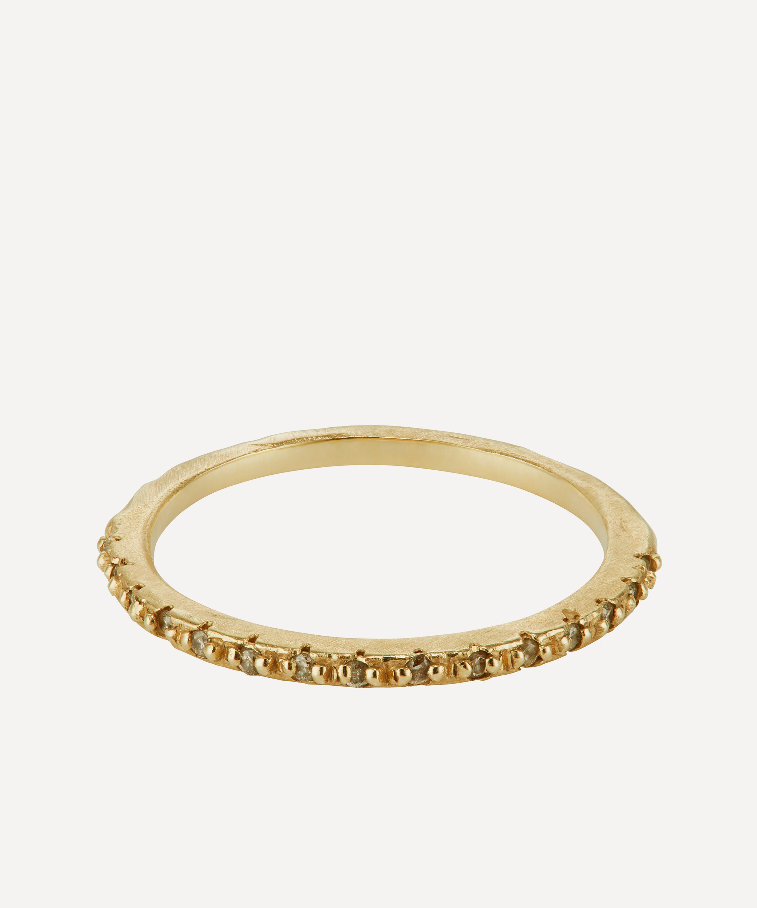Commemorate a milestone or anniversary with the diamond half eternity ring from Ellis Mhairi Cameron. Inspired by medieval jewellery hoards found across Scotland, this 14ct gold ring is adorned with sparkling white diamonds and features a softly distressed texture, as if it has been uncovered like buried treasure.