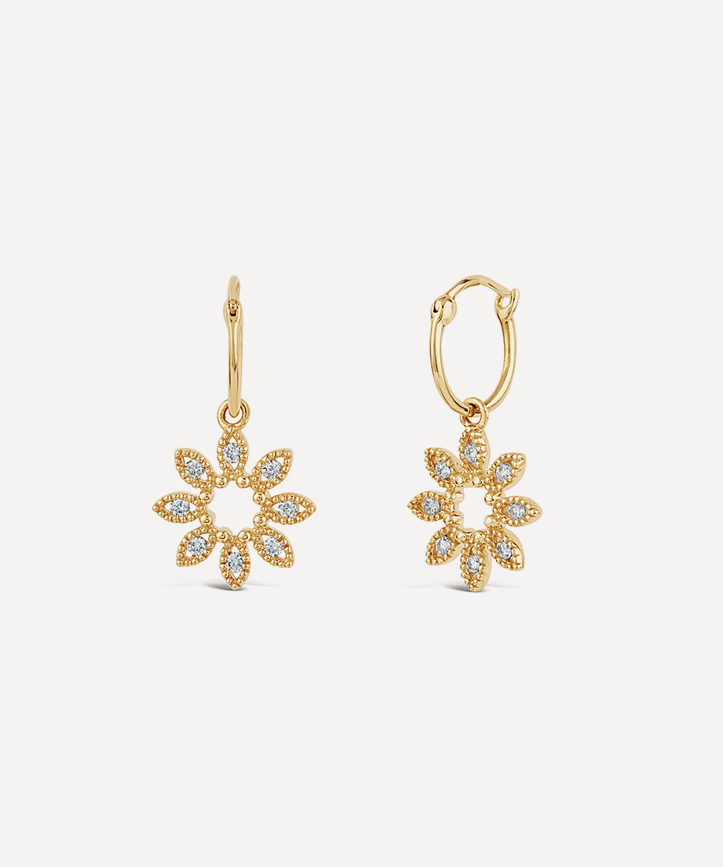 Dinny Hall 14ct Gold Diamond Jasmine Flower Drop Hoop Earrings