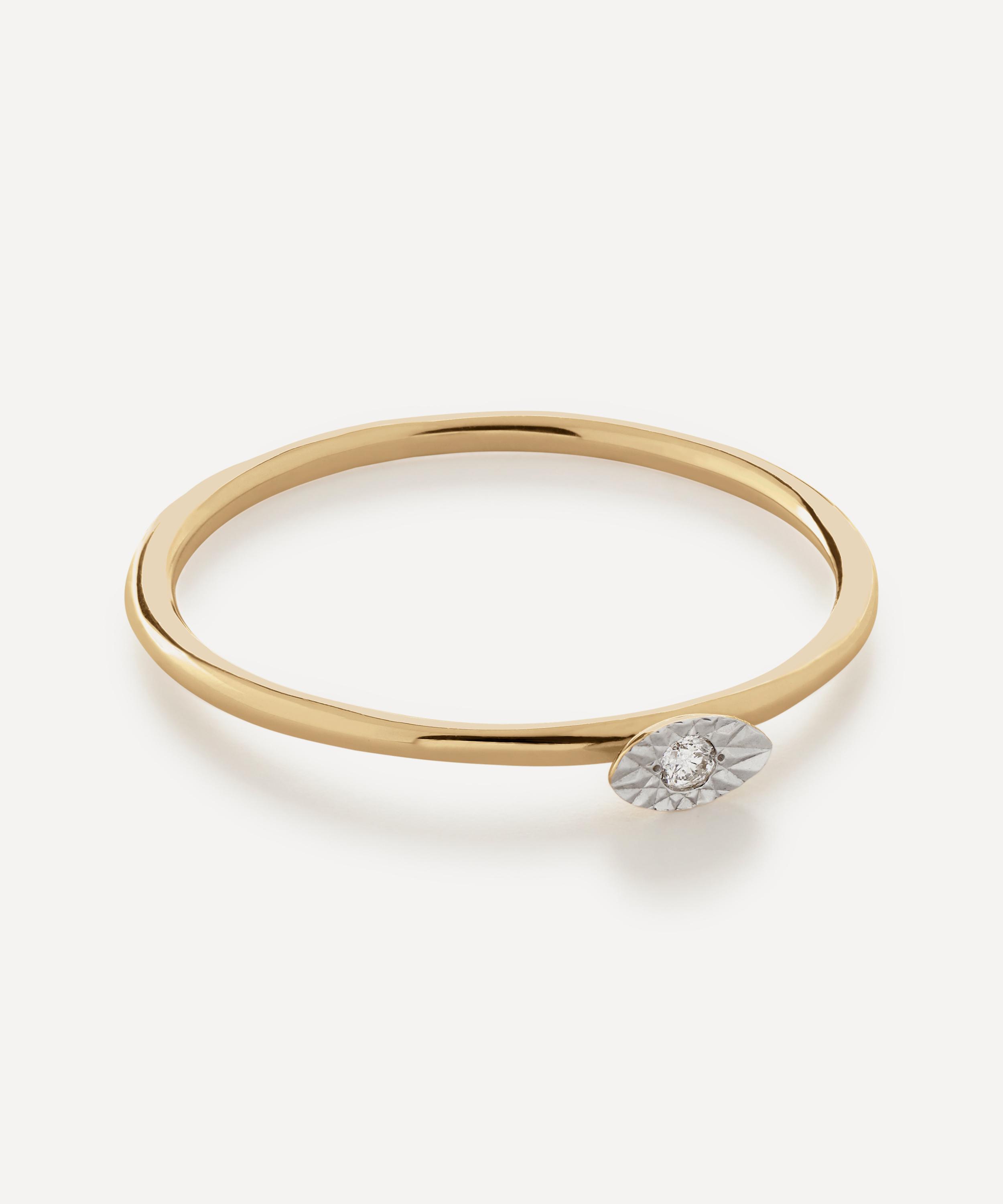 Inspired by 18th century jewellery, this elegant stacking ring features a 14ct solid gold band that’s accentuated by a marquise cut centre diamond. Ideal for layering, stack it with other gold bands for a sparkling contrast.