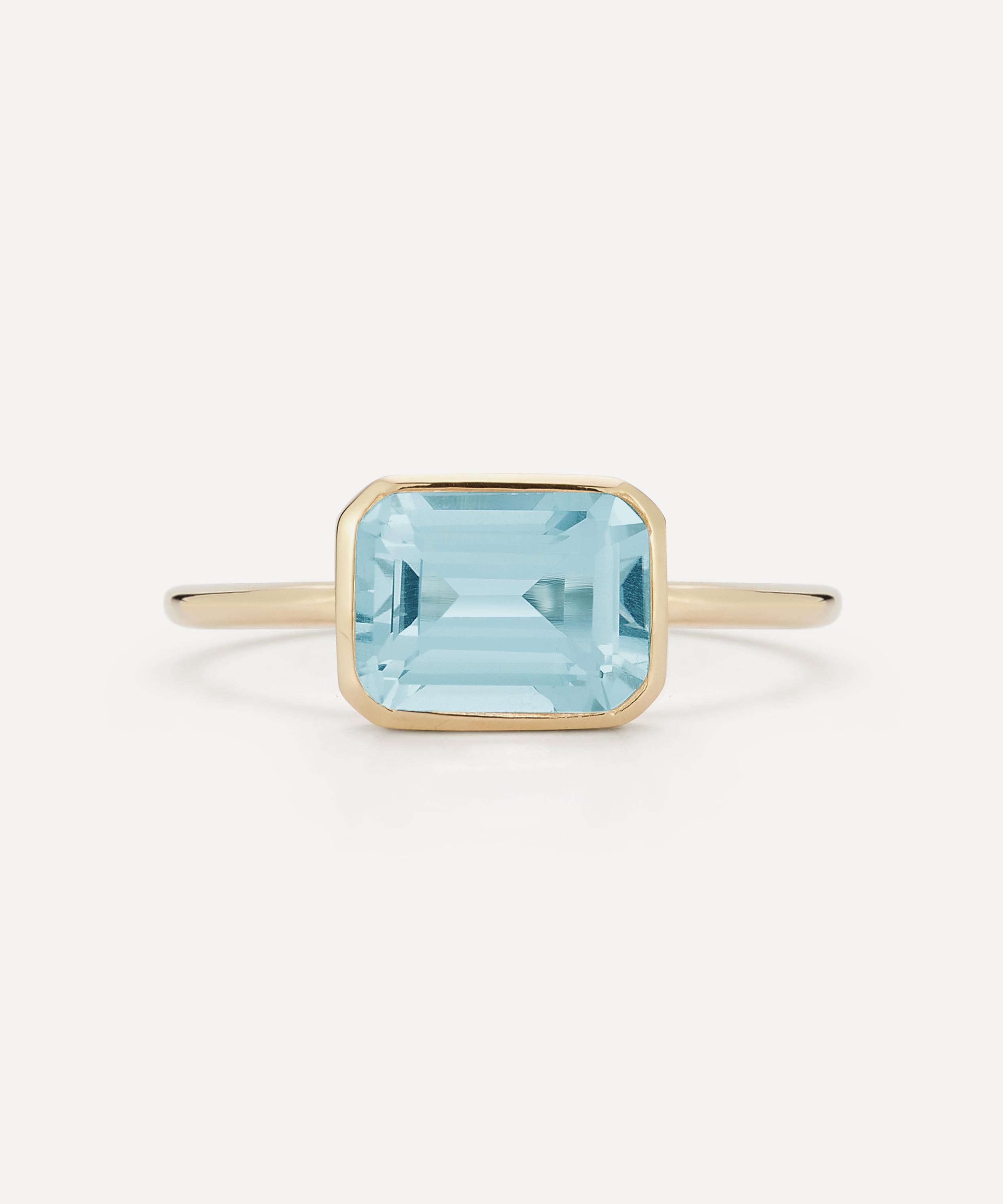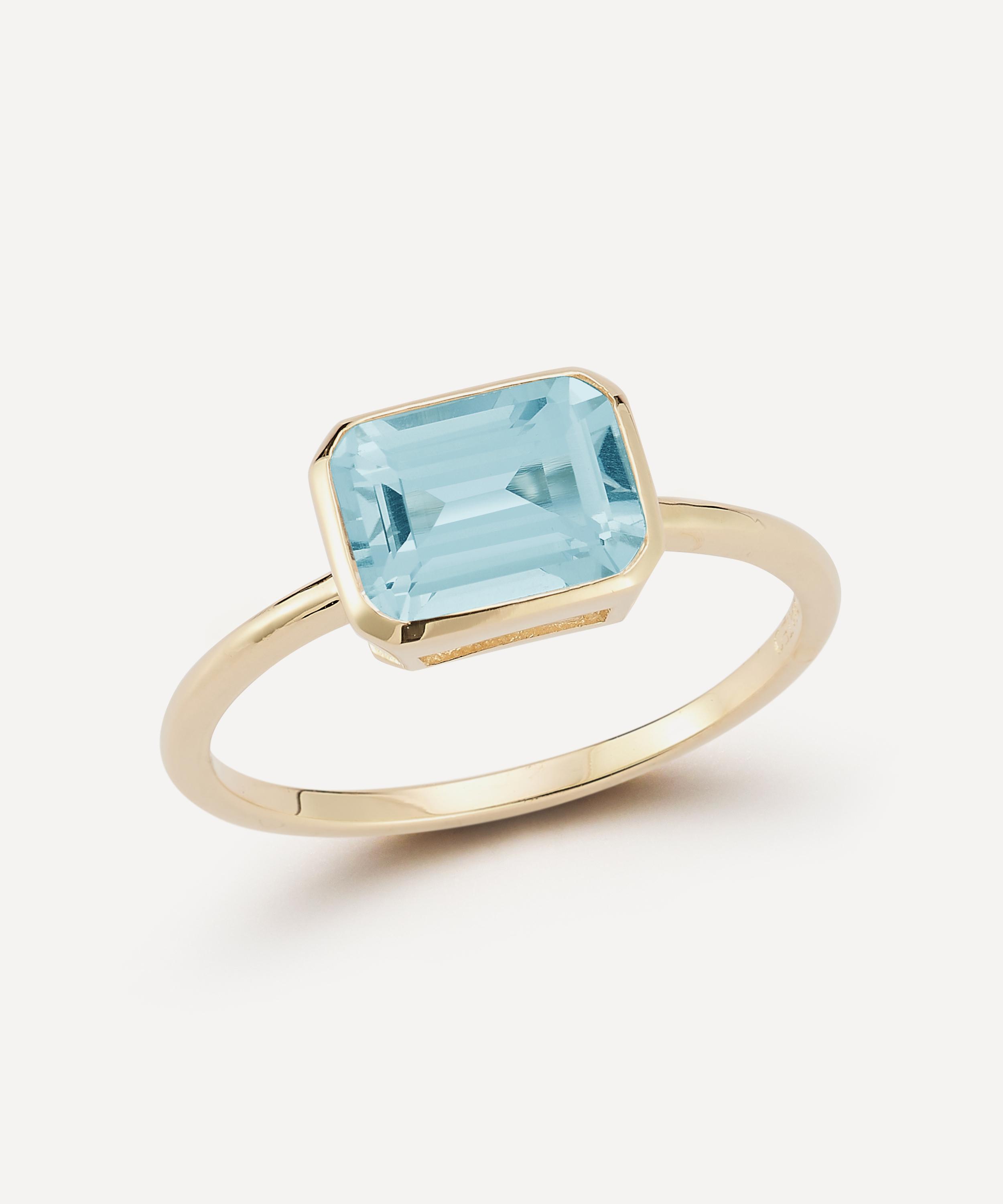 Elevate your ensemble with this sophisticated gemstone ring from Mateo. Crafted from 14ct gold, it features a slim, polished band adorned with a captivating, emerald-cut blue topaz set within a polished bezel setting. Adding an eye-catching element to your line-up, its minimal design makes it perfect for everyday wear, while its refined pop of colour ensures it can shine bright on any occasion. Whether stacked with other rings or worn alone, it boasts a refined addition to any jewellery collection.