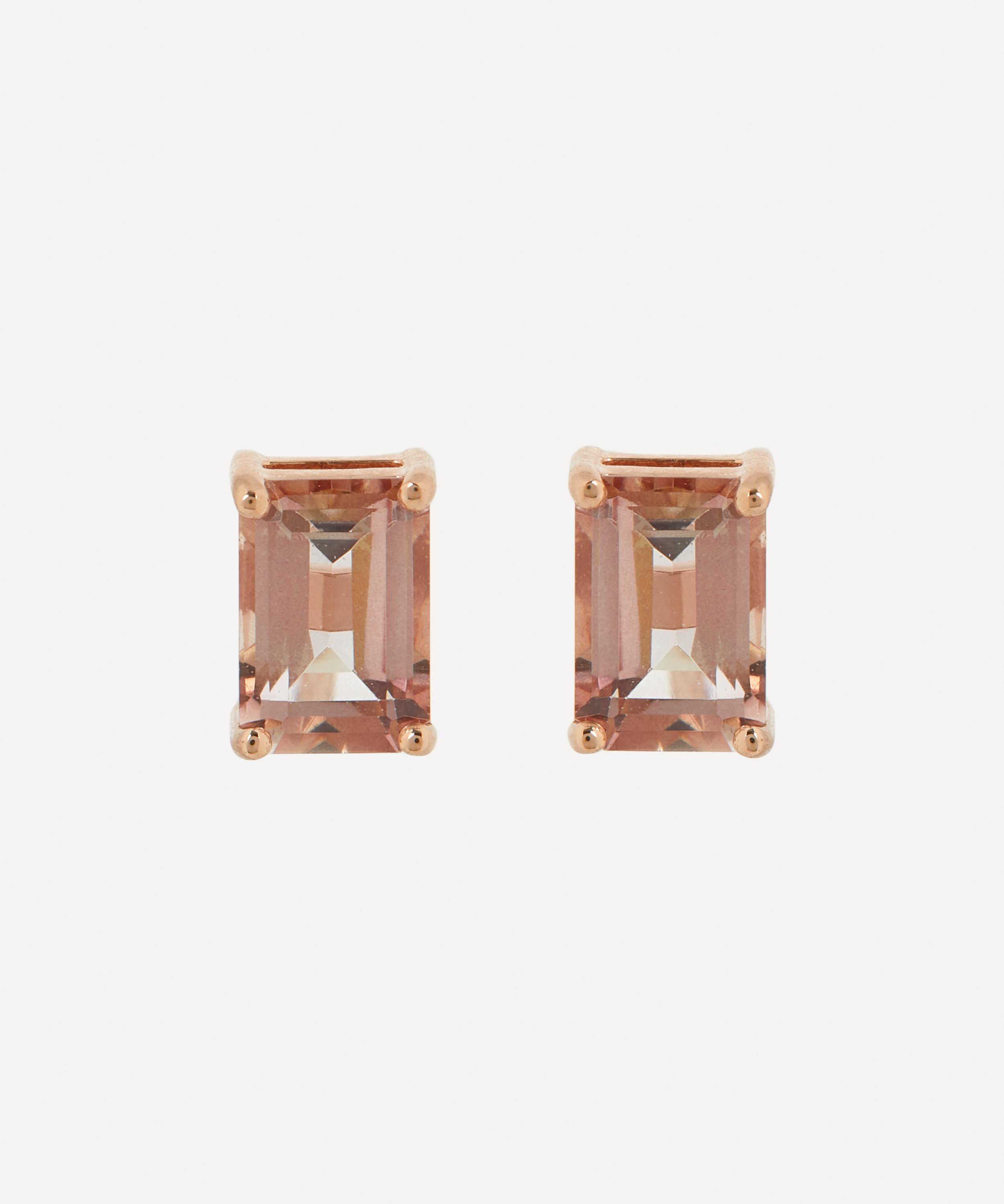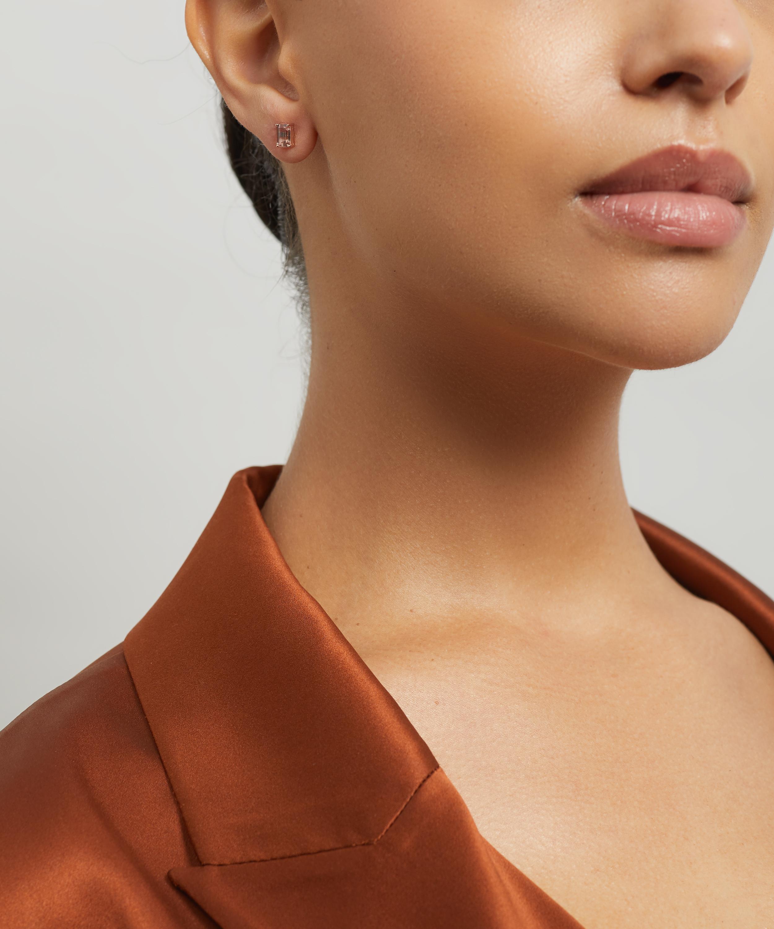 Crafted from solid 14ct rose gold, each of these earrings features an emerald cut pink morganite topaz with a classic screw back fastening. Style them solo for a pop of colour day-to-day, or mix and match with the designer’s other glittering gemstone studs and drops for a dazzling cocktail hour curation.