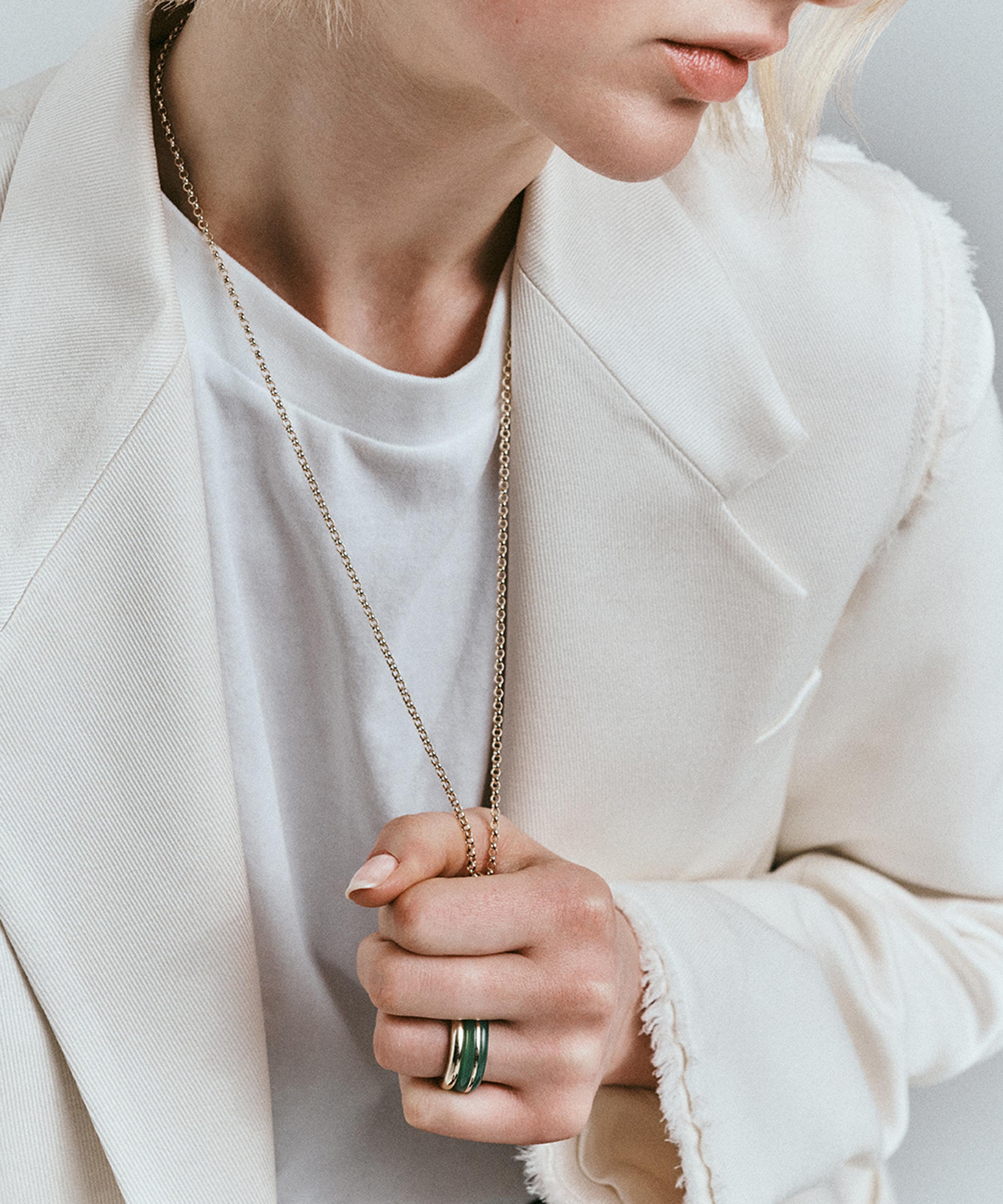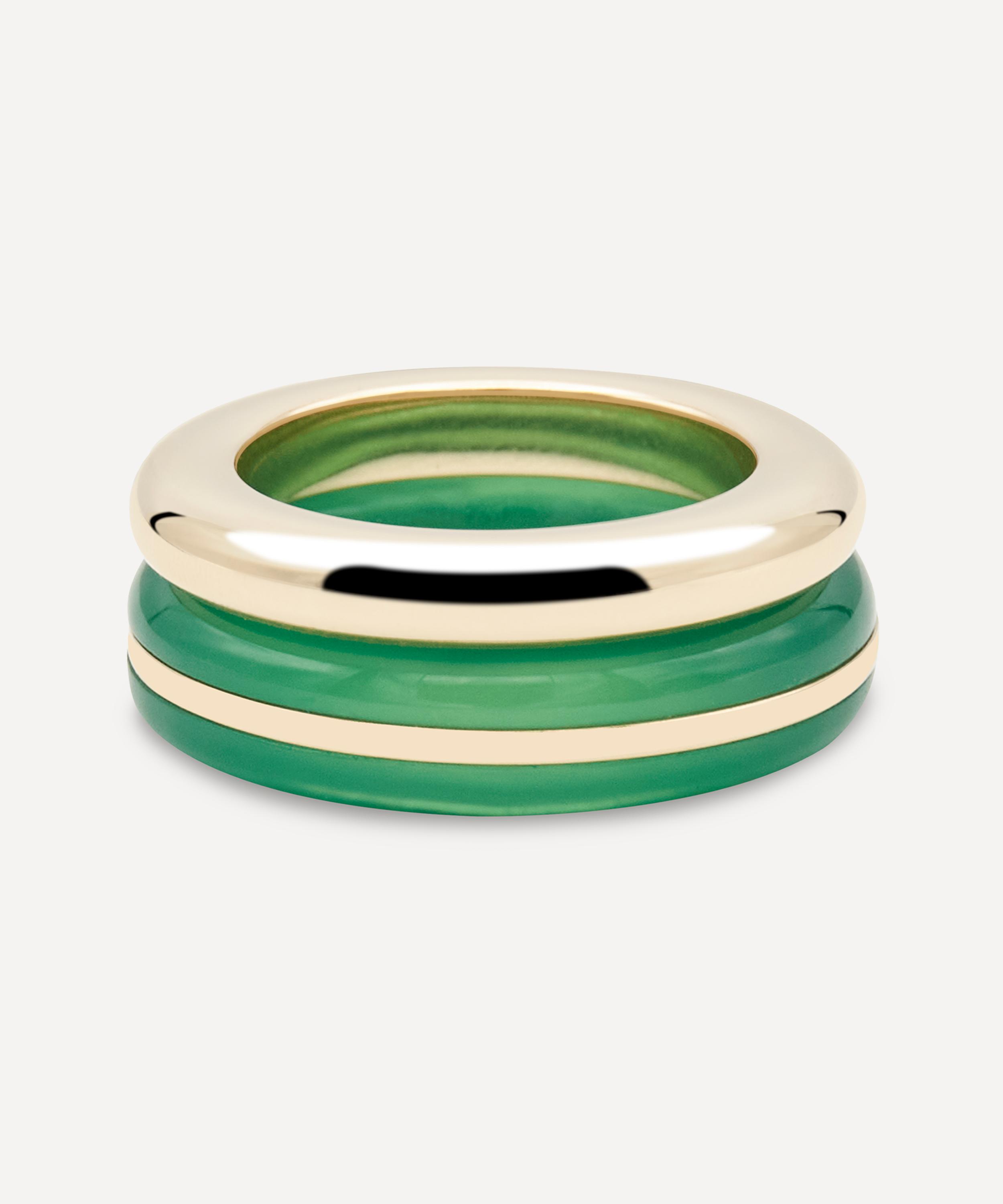 Drawing on the Pariah parts of the Caribbean as inspiration, By Pariah shines a spotlight on the natural beauty of raw, untouched materials. Crafted from hand-carved green calcedony, it’s adorned with a diamond set, 14ct gold filament cutting across the centre. Exemplifying the brand's seasonless approach to jewellery, try stacking several Essential rings together to curate your own organic colour palette.