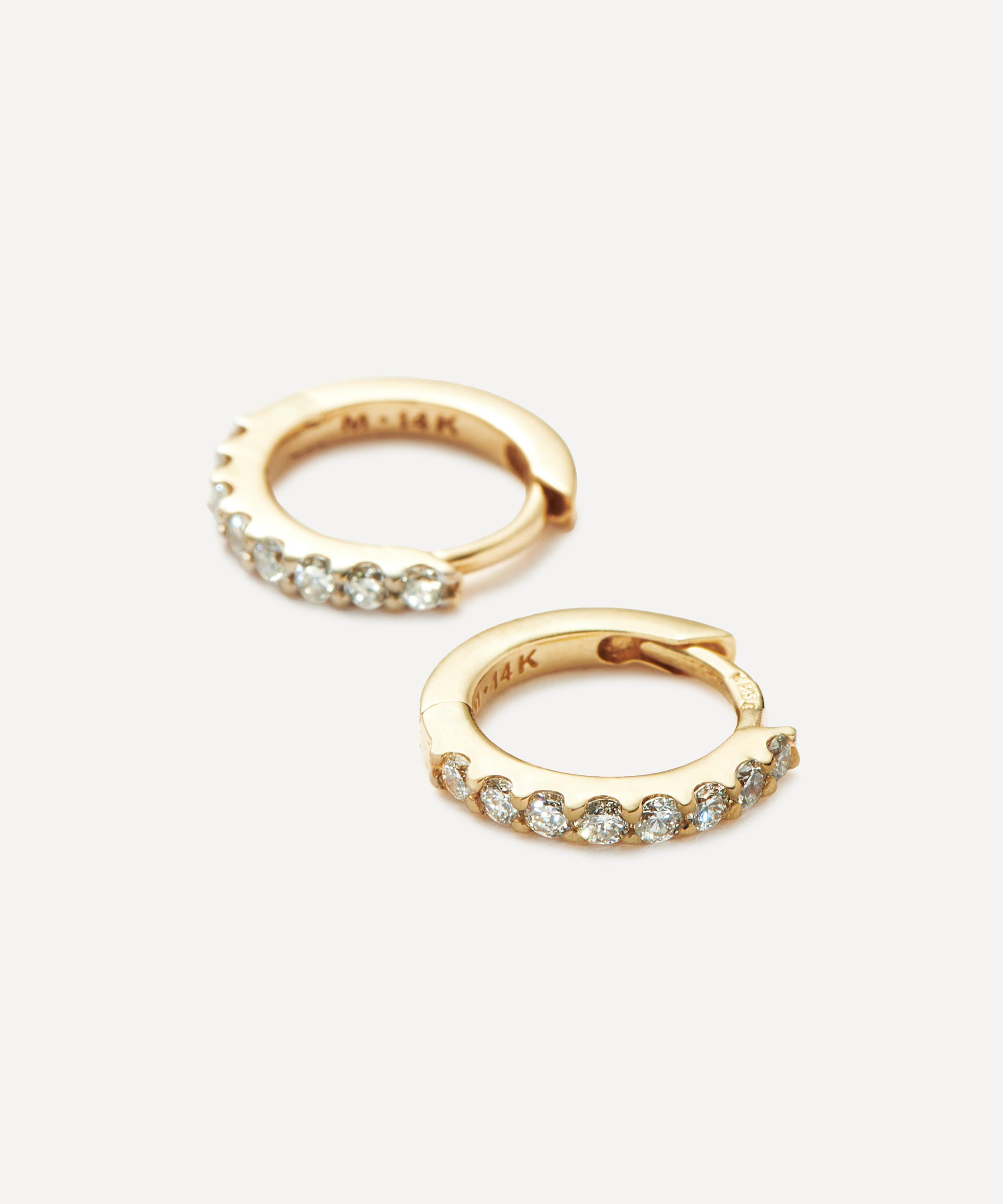 Make every day dressing feel effortless with these subtly elevating huggie hoop earrings from Missoma. Handcrafted from solid 14ct gold, this pair feature a sleek, lightweight silhouette lined with sparkling round cut diamonds. Perfect for any kind of ear stack curation, style them with other studs and hoops, or wear solo for a minimal look.