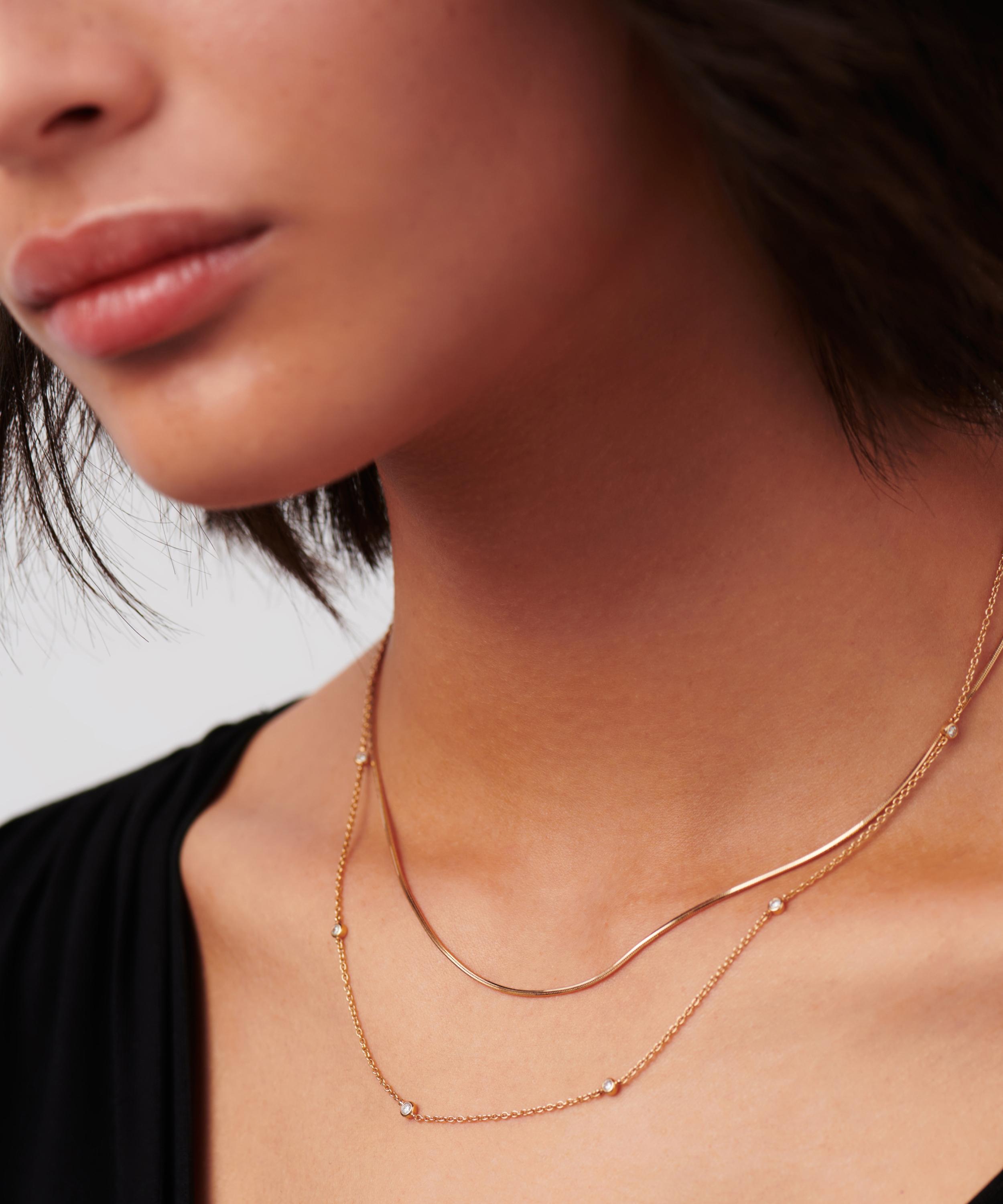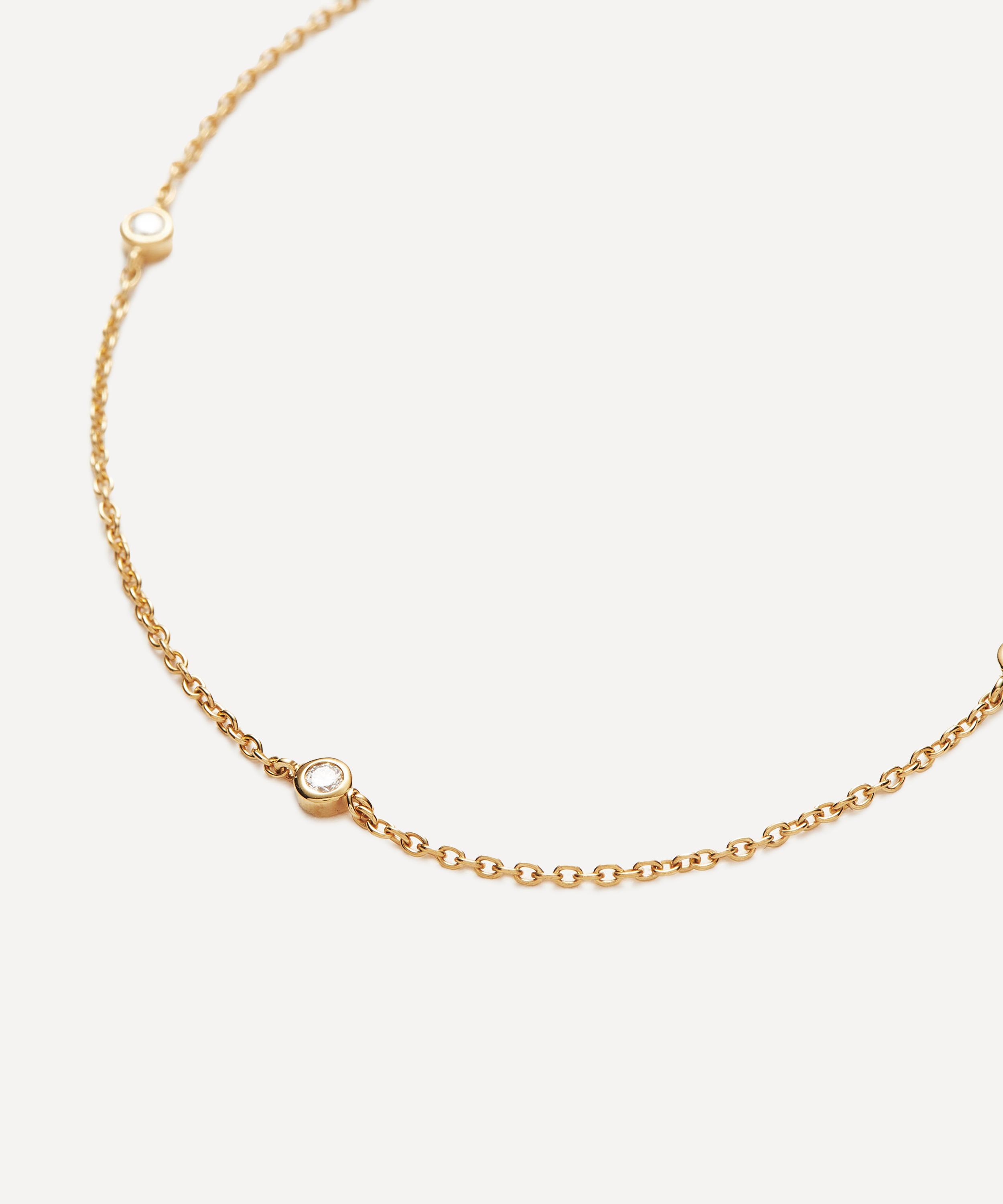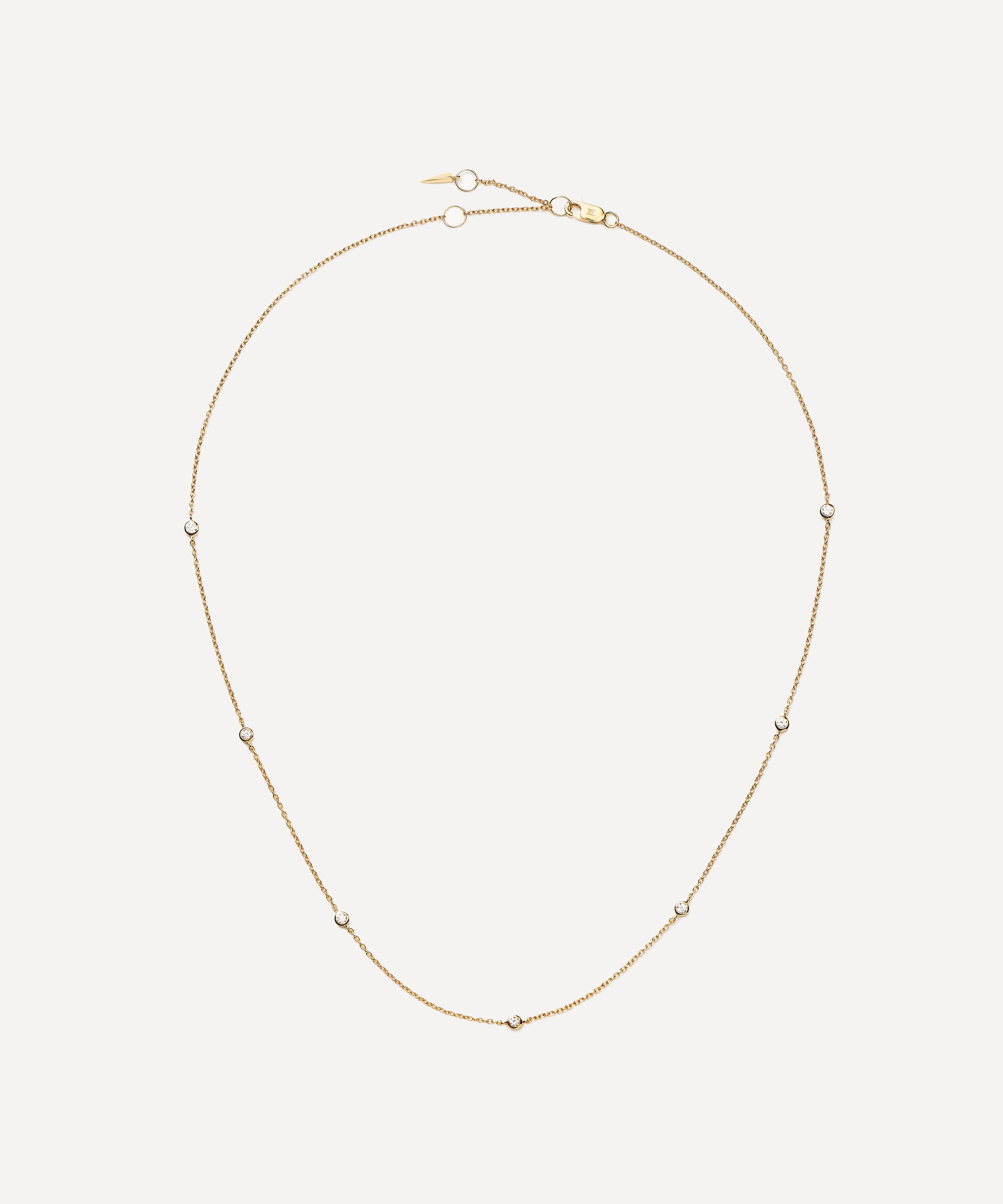 Make every day dressing feel effortless with this subtly elevating diamond necklace from Missoma. Handcrafted from solid 14ct gold, it features a delicate trace chain adorned with seven round cut diamonds, elegantly floating on the neckline. Perfect for any kind of stack curation, style it with other gold necklaces, or wear solo for a minimal look.