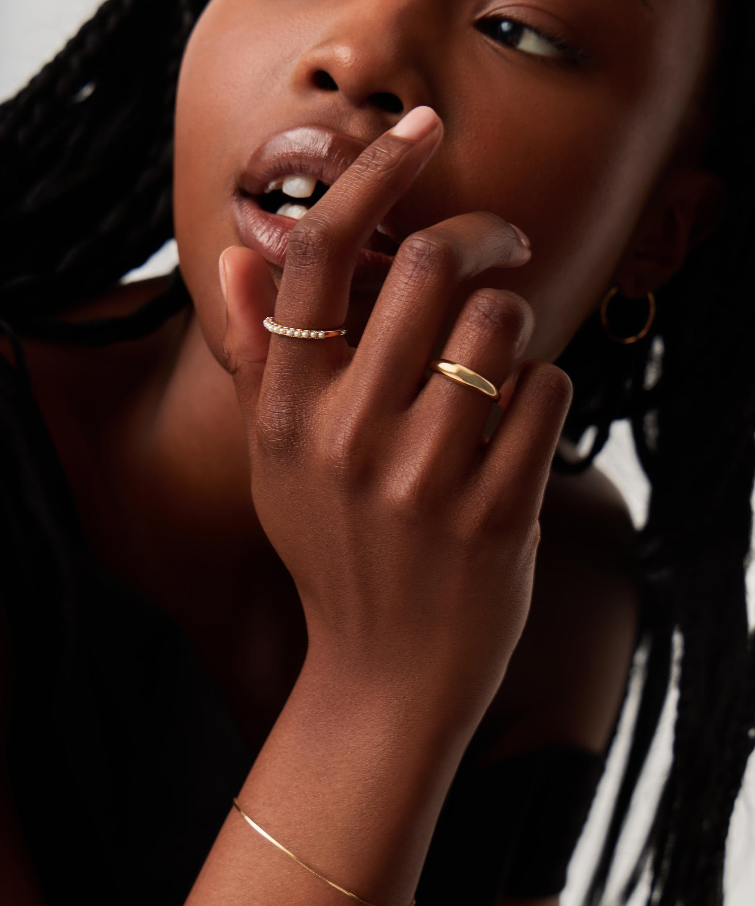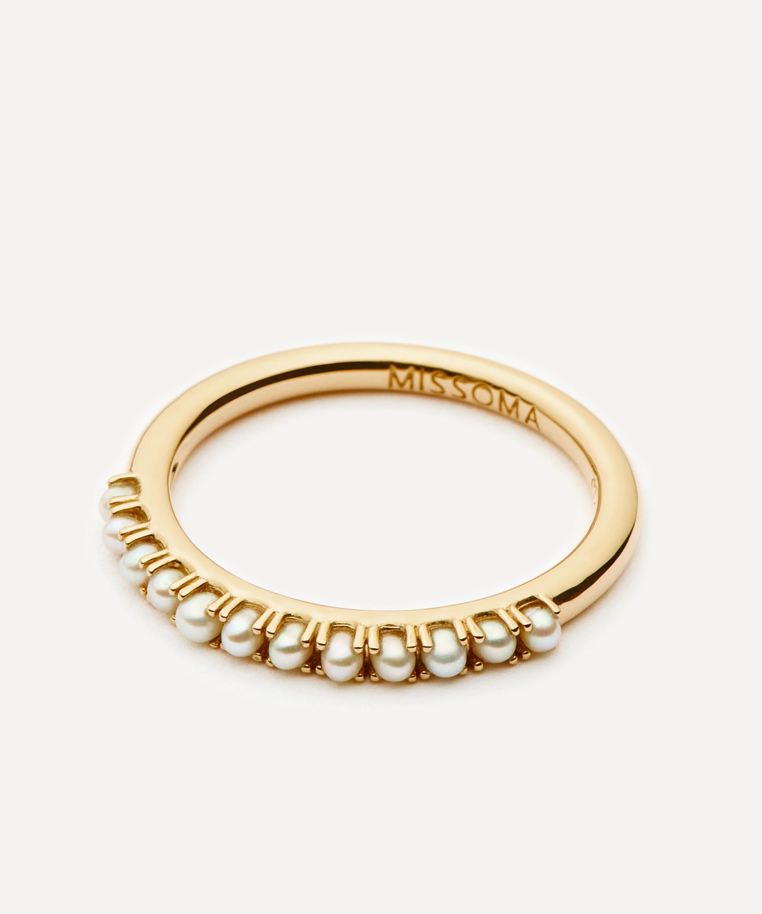 Make every day dressing feel effortless with this subtly elevating half eternity ring from Missoma. Crafted from solid 14ct gold, it features a slim, polished band embellished with opulent freshwater pearls, perfect for any kind of ring stack curation. Style it with other rings or wear solo for a minimal look.