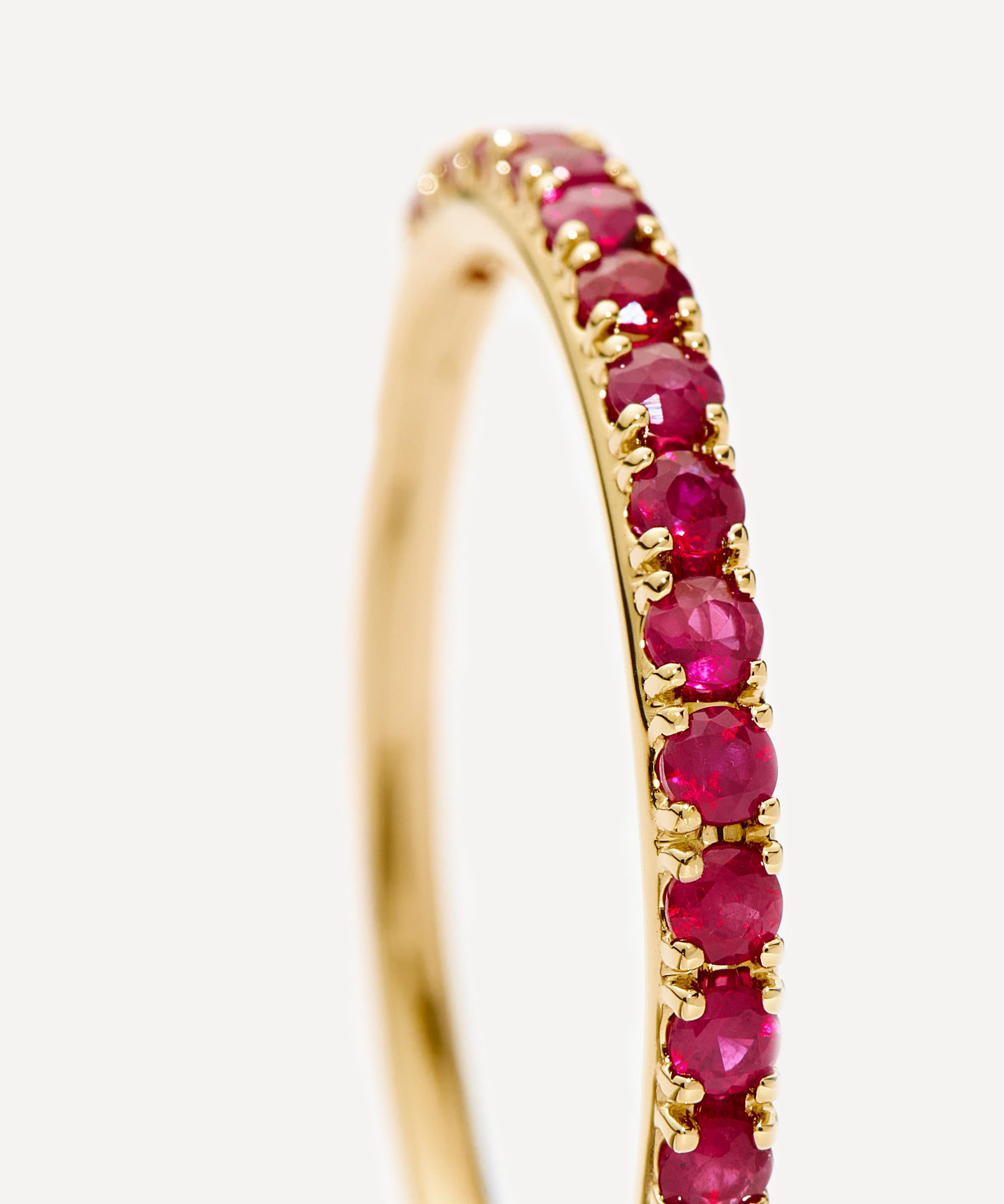 Make every day dressing feel effortless with this subtly elevating half eternity ring from Missoma. Crafted from solid 14ct gold, it features a slim, polished band embellished with vibrant rubies, perfect for any kind of ring stack curation. Style it with other rings or wear solo for a minimal look.