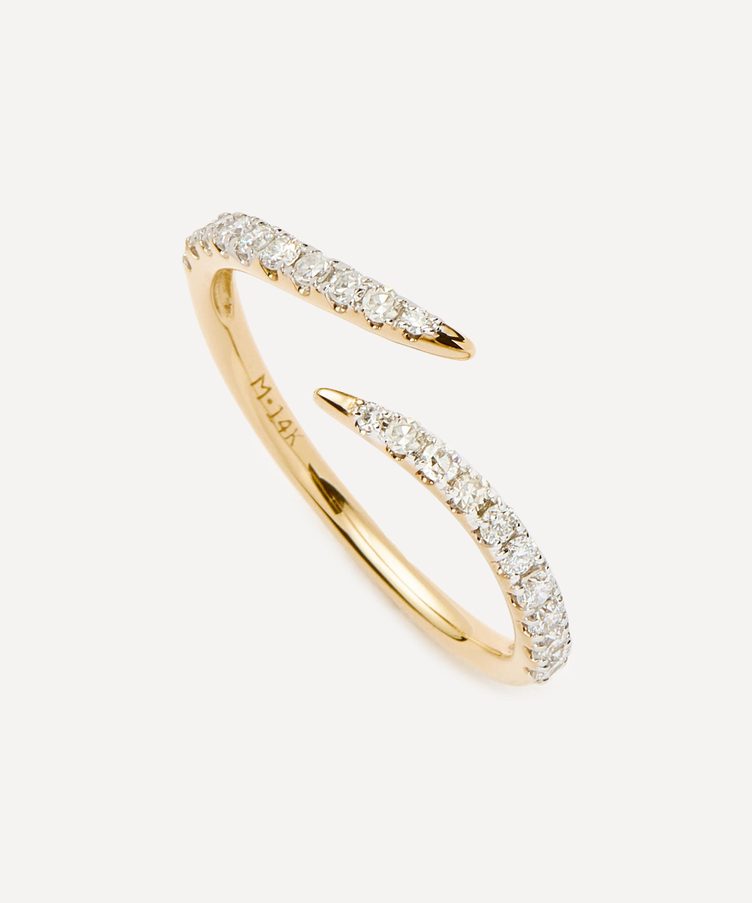 Make every day dressing feel effortless with this subtly elevating diamond ring from Missoma. Crafted from solid 14ct gold, it features an open, claw-inspired design decorated with sparkling diamonds. Perfect for any kind of ring stack curation, style it with other gold rings, or wear solo for a minimal look.