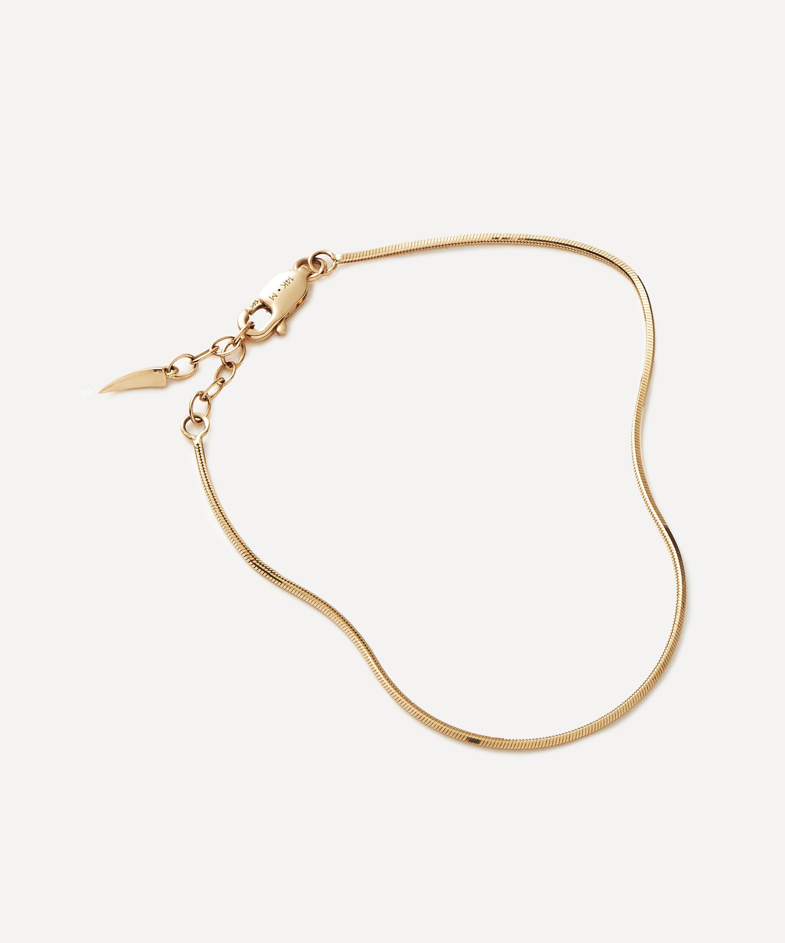 Make every day dressing feel effortless with this subtly elevating chain bracelet from Missoma. Crafted from solid 14ct gold, it features a classic snake chain in a square silhouette, perfect for any kind of wrist stack curation. Style it with other gold bracelets or wear solo for a minimal look.