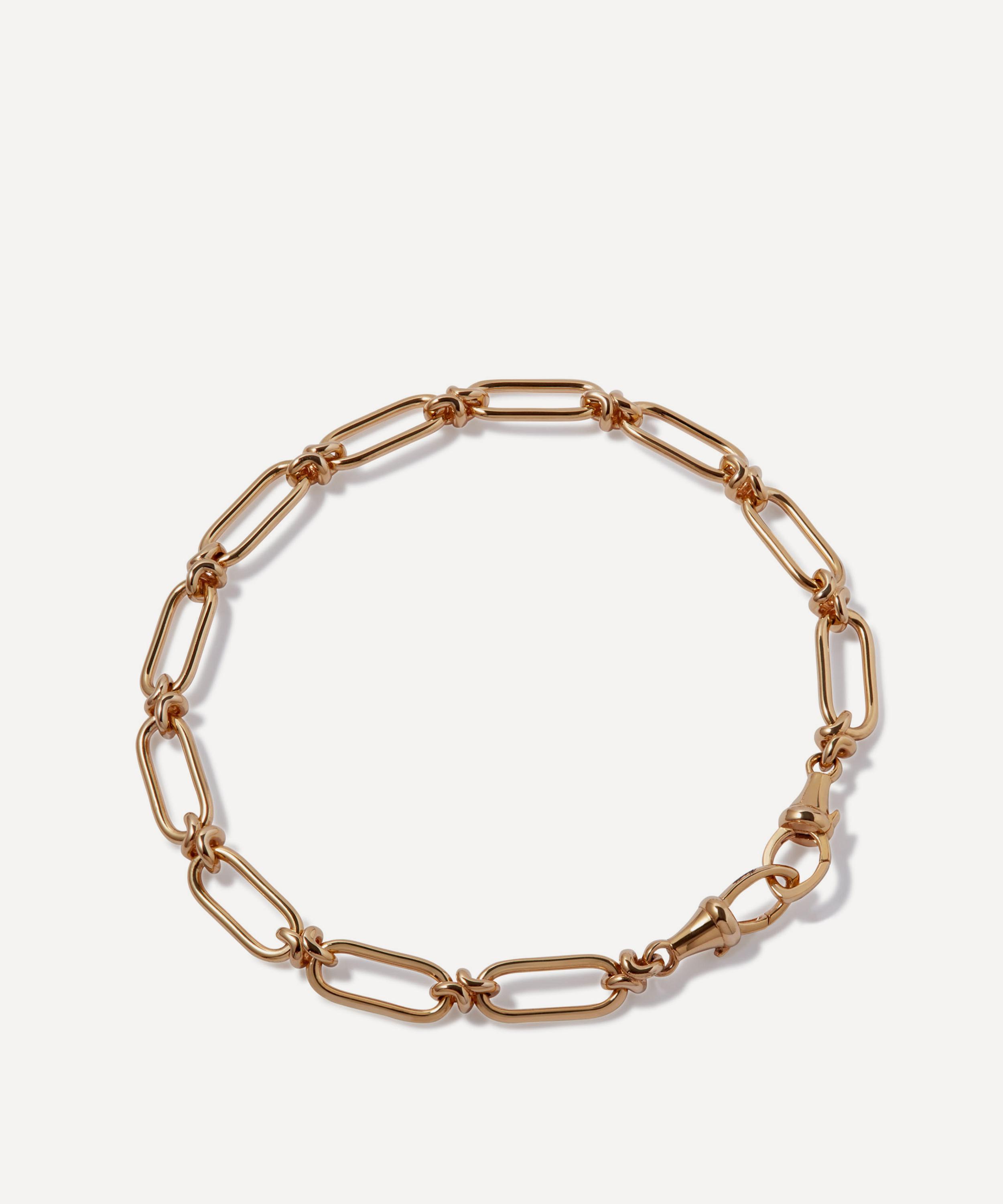 Crafted in Arezzo, Italy from 14ct gold, this necklace features bold, slightly chunky links connected by unique knuckle joints in a high-polished finish. Complete with two horseshoe clasps at the ends, stack it with additional bracelets, or link it with other chains from the collection for buildable, endless styling.