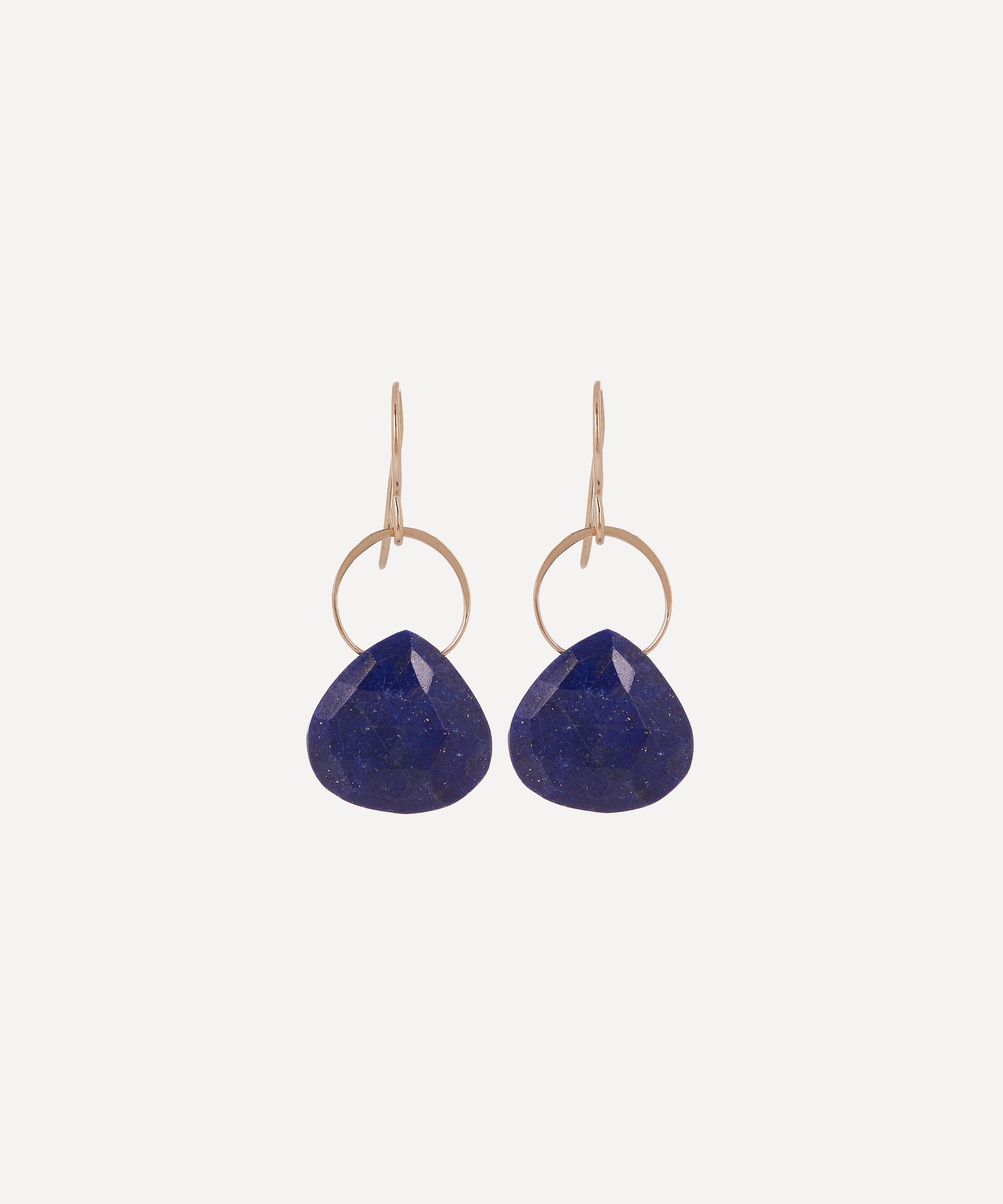 Boasting a unique staple, these drop earrings are from Melissa Joy Manning are perfect for a dash of colour. Crafted from 14ct gold, each earring features a small, front-facing hoop with a faceted lapis lazuli dangling freely from the base. Team them with a lively assortment of gemstone studs and drops for a colourful curation of modern heirloom jewellery.