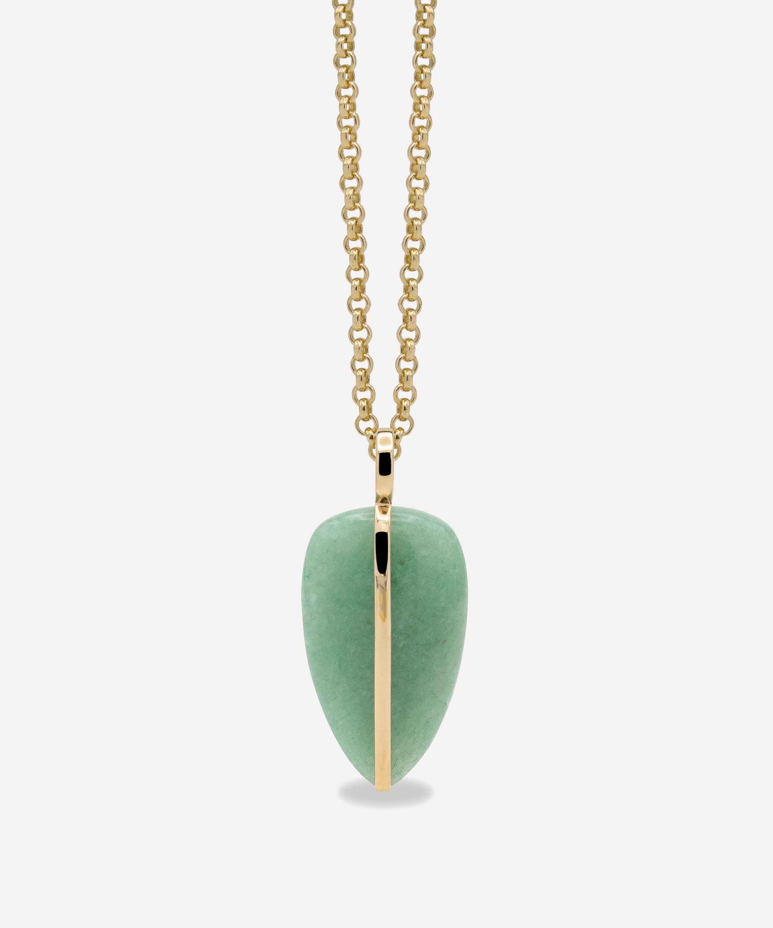 By Pariah shines a spotlight on the natural beauty of raw, untouched materials with the Small Diamond Pebble pendant. Crafted from 14ct gold, it features a hand-carved aventurine adorned with a gold filament cutting across the centre. Use it to embellish one of the brand’s belcher chains for an elevated finish.