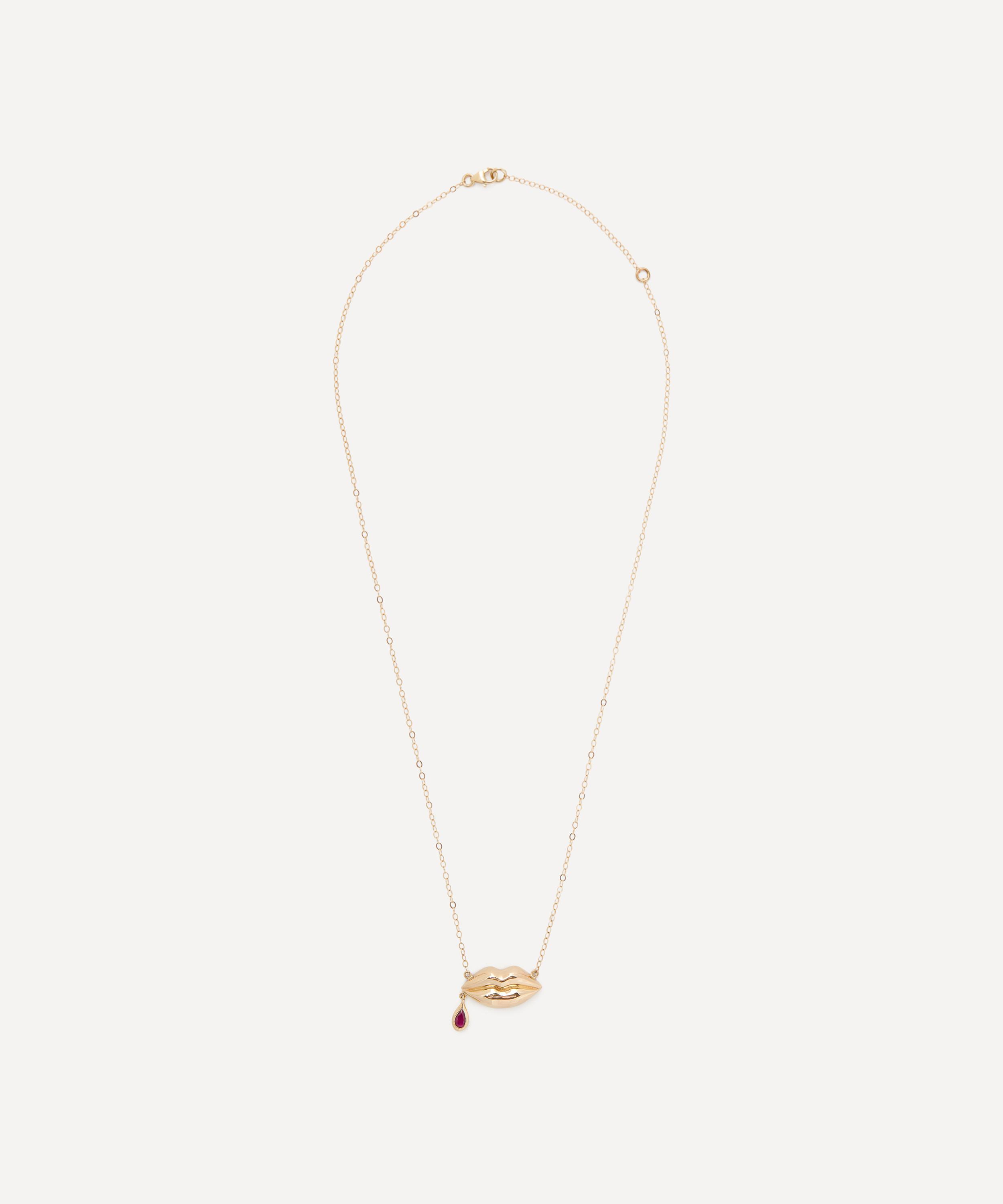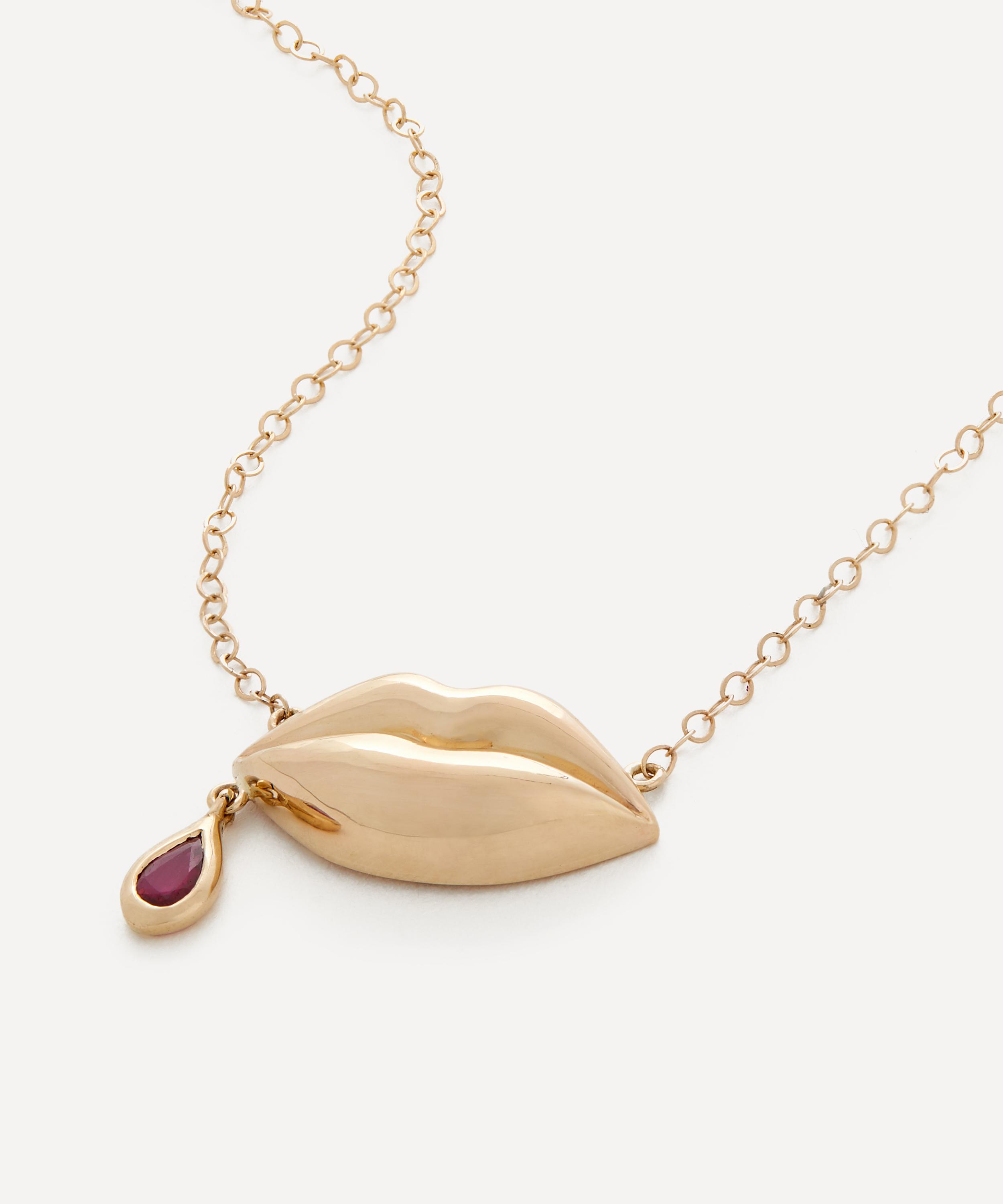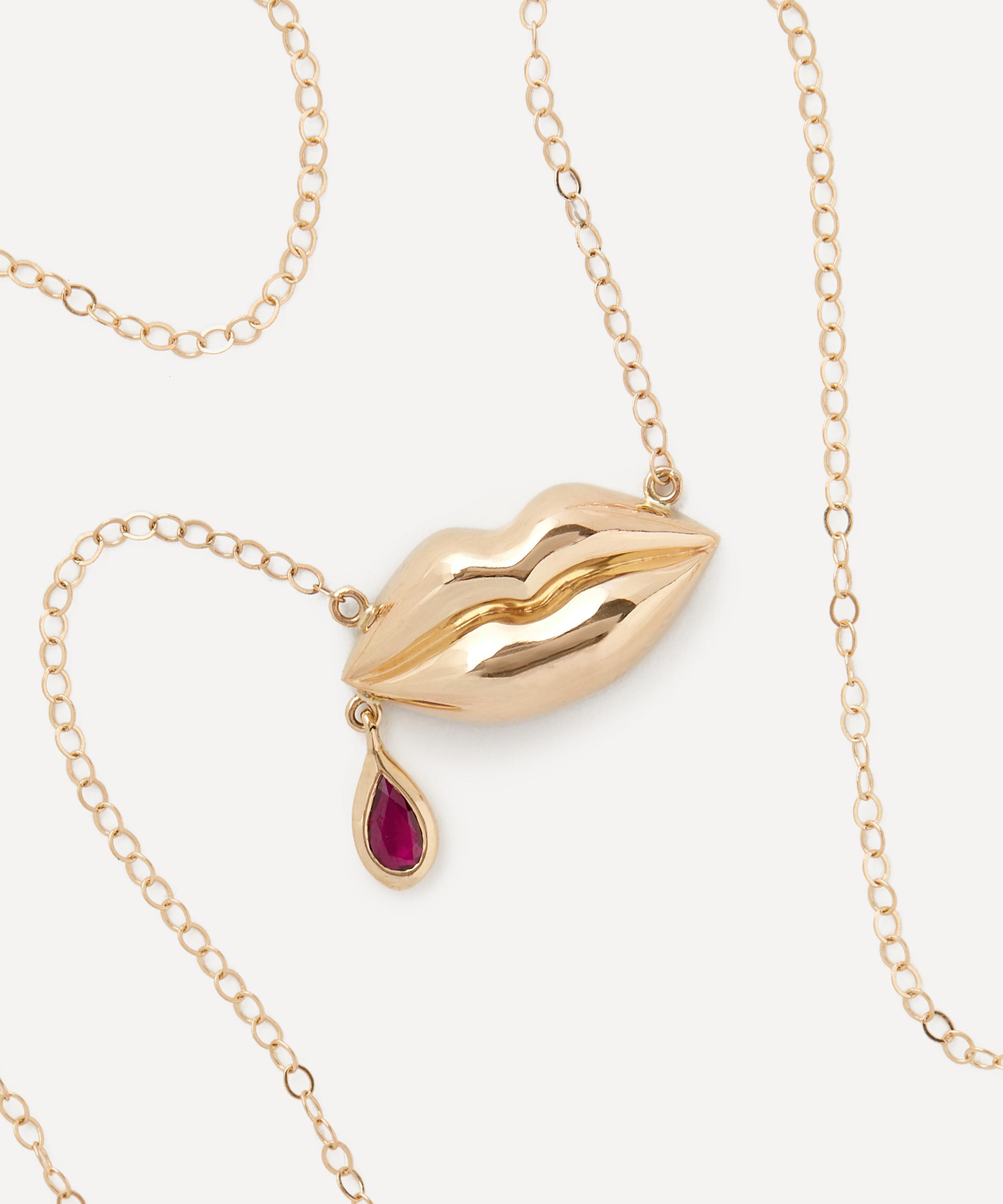 The Last Kiss pendant necklace from Rachel Quinn perfectly captures the romantic surrealist narratives that run throughout the brand. Crafted from 14ct gold, it features a delicate link chain and a pair of polished lips, adorned with a ruby droplet dripping from the corner – a nod to a kiss goodbye. Try styling it with a pair of the designer's whimsically creative earrings for a dreamy curation of wearable works of art.