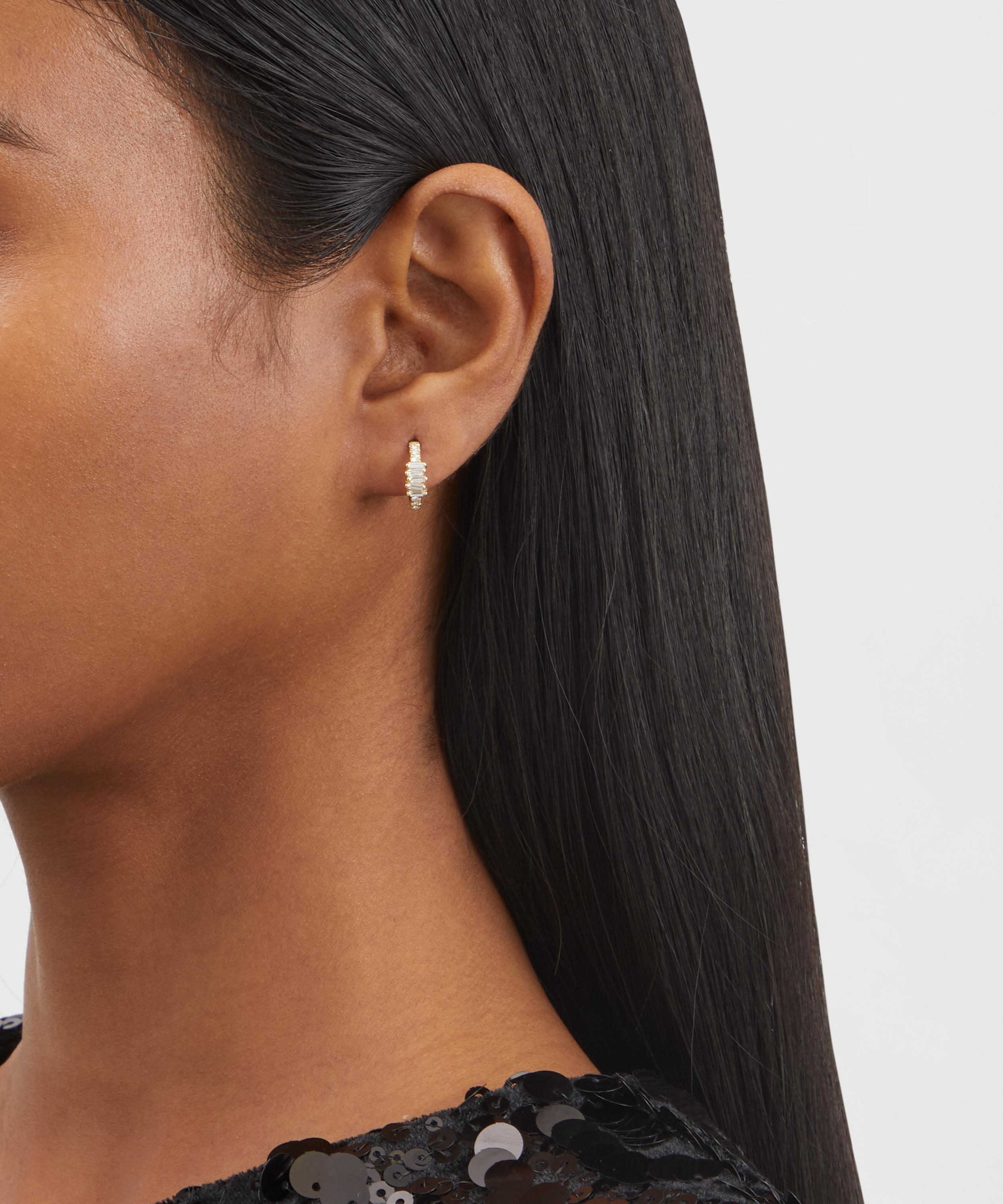 Add subtle sparkle to everyday looks with these hoop earrings from Suzanne Kalan. Exemplifying the designer's contemporary approach to traditional fine jewellery design, each earring is crafted from 14ct gold, featuring a half hoop embellished with a mix of round and baguette cut diamonds. Style them solo, or mix and match with the designer's other gemstone encrusted pieces for an unforgettable cocktail hour curation.