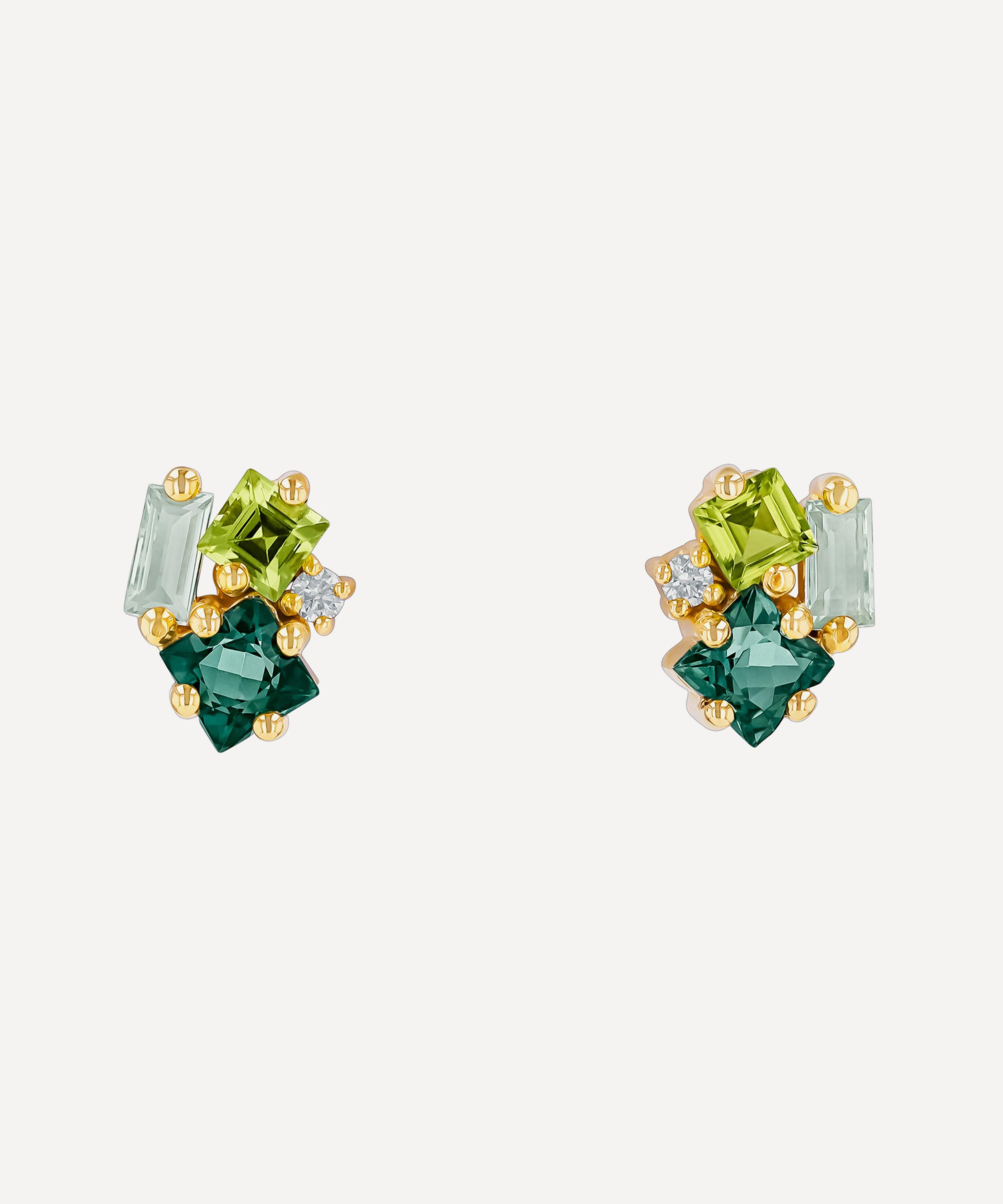 14ct Gold Nadima Green Mix Cluster Stud Earrings