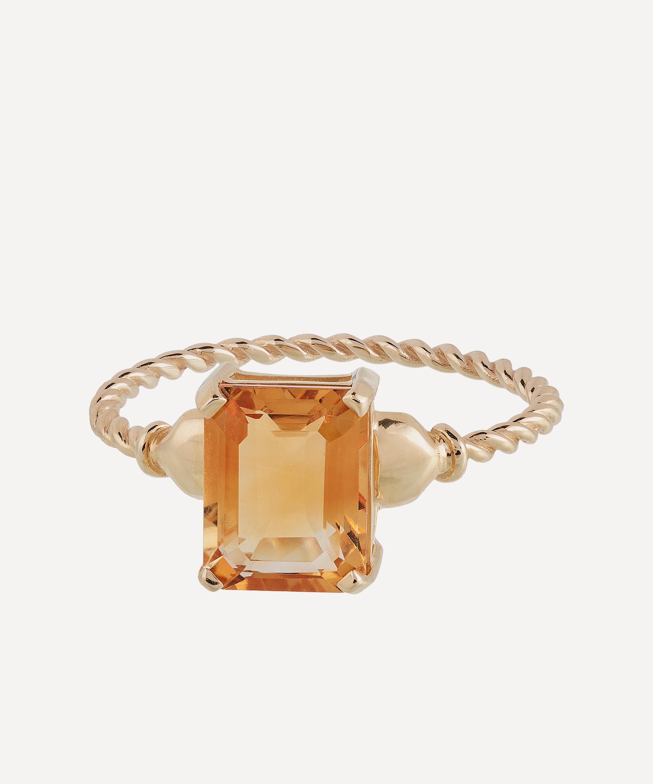 Handcrafted from 14 carat gold, this elegant piece features a thin twisted band to further highlight the glittering square-cut citrine gemstone that adorns the front – style it solo, stack with other rings or team it with your favourite jewels for an elevated curation.