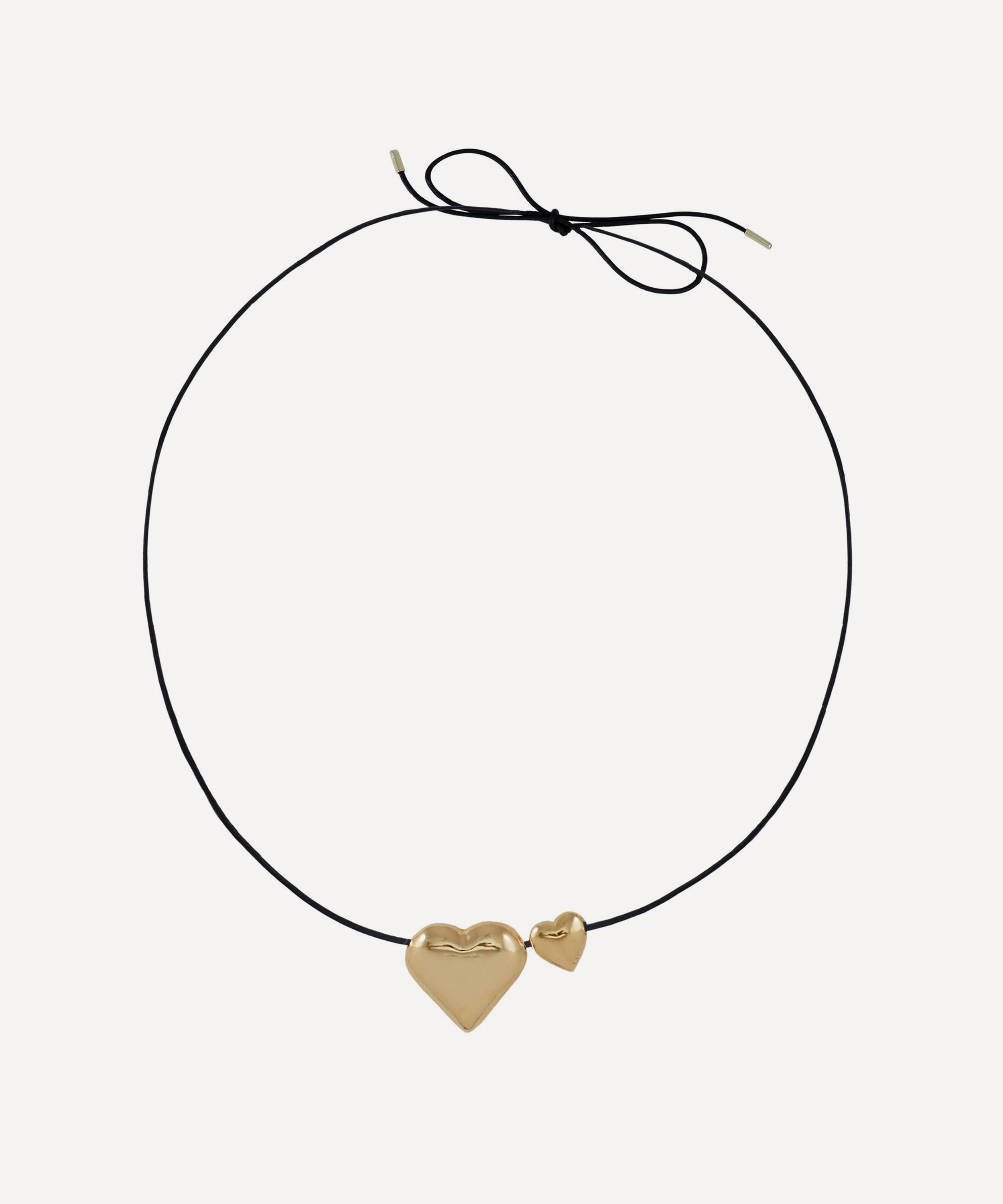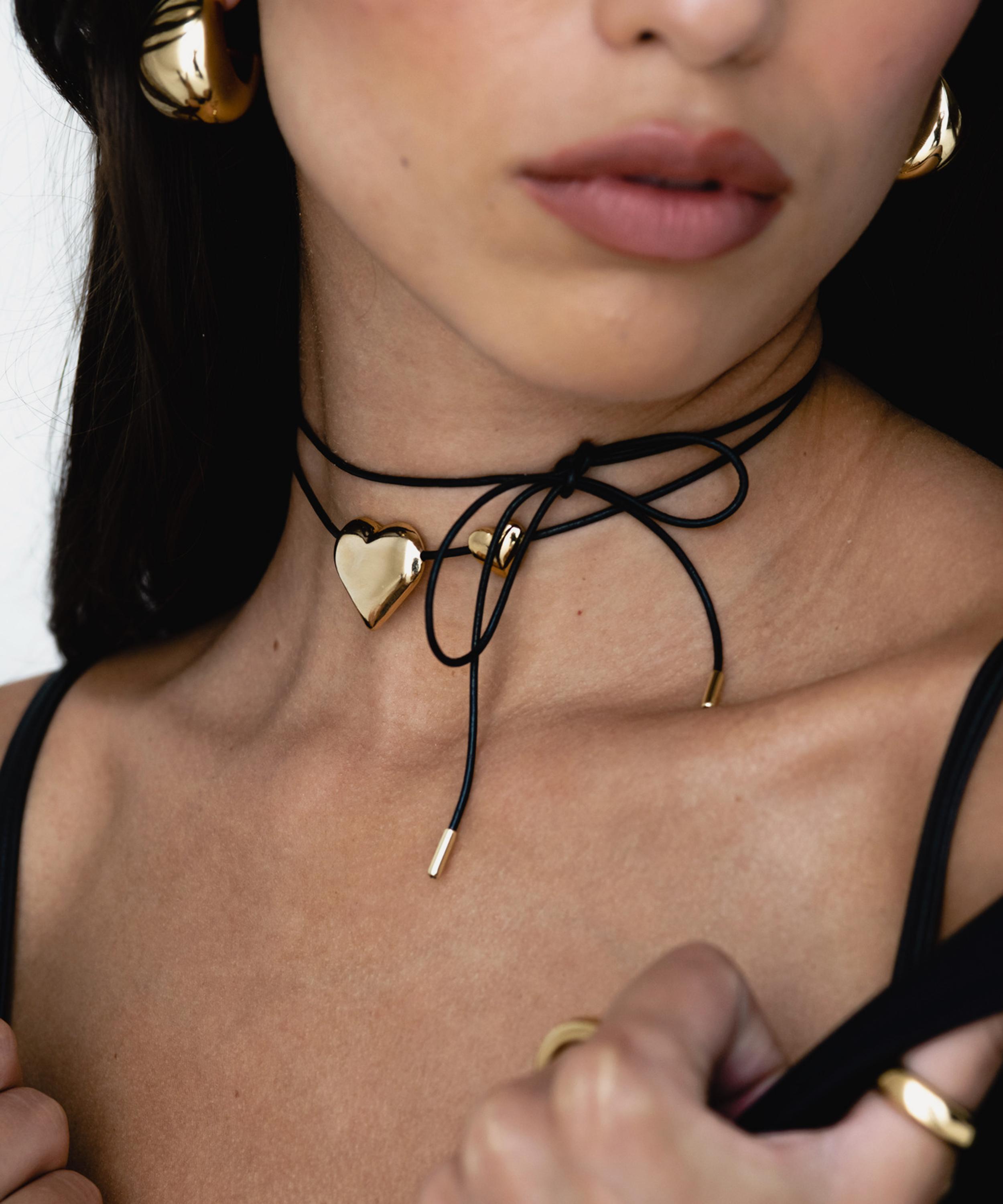 Echoing the early 2000s, the Amor Cord necklace from Martha Calvo lends a subdued Y2K aesthetic to elevate your look. Featuring a long black leather cord that can be worn long or tied close to the neck, it’s complete with two puffed hearts, one larger and one smaller, in a 14ct gold-plating. Style it solo with a pair of chunky hoops, or incorporate it into a layered curation.