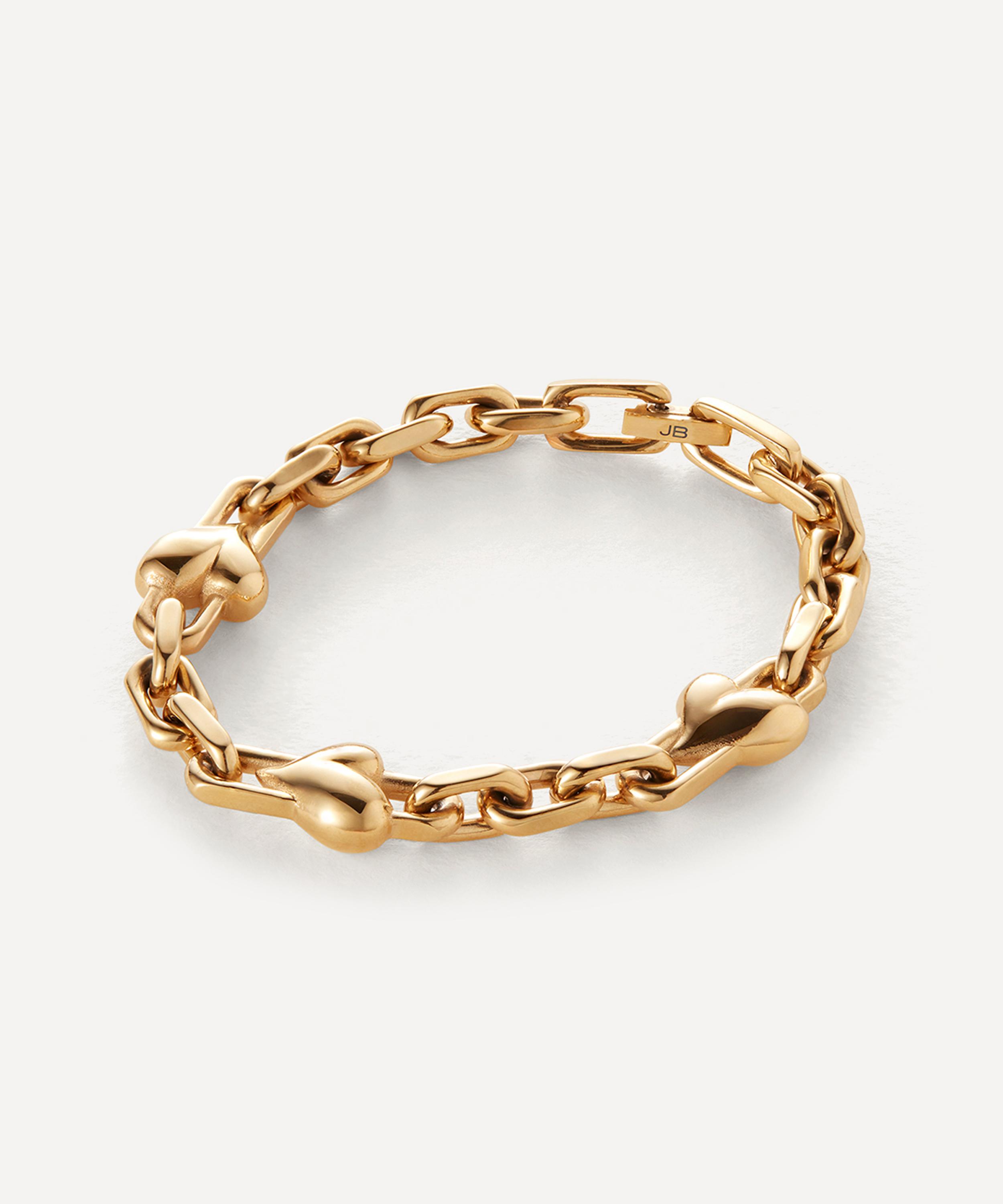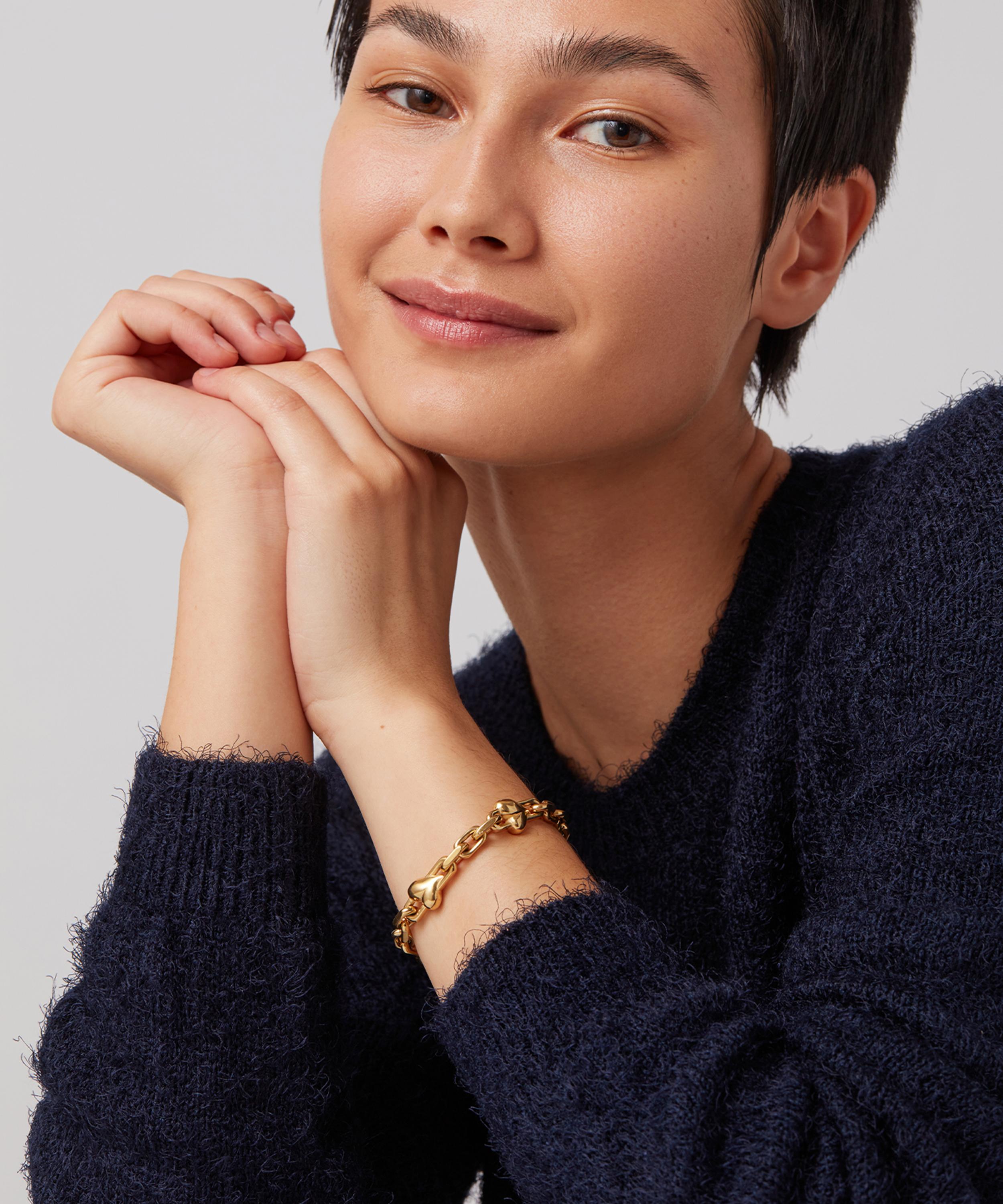 Celebrate the power of good style and the art of getting dressed with the Art Heart chain bracelet from JENNY BIRD. Fashioned into crisp, faceted links in 14ct gold-plated steel, the design is punctuated by voluminous hearts and a large S-clasp fastening to the front for an unconventional feel. Fashionable and ultra-versatile, it can be worn as a statement-making solo piece or layered with other bracelets to create a trend-led stack - try teaming it with the matching Art Heart Chain Necklace for a co-ordinating look.