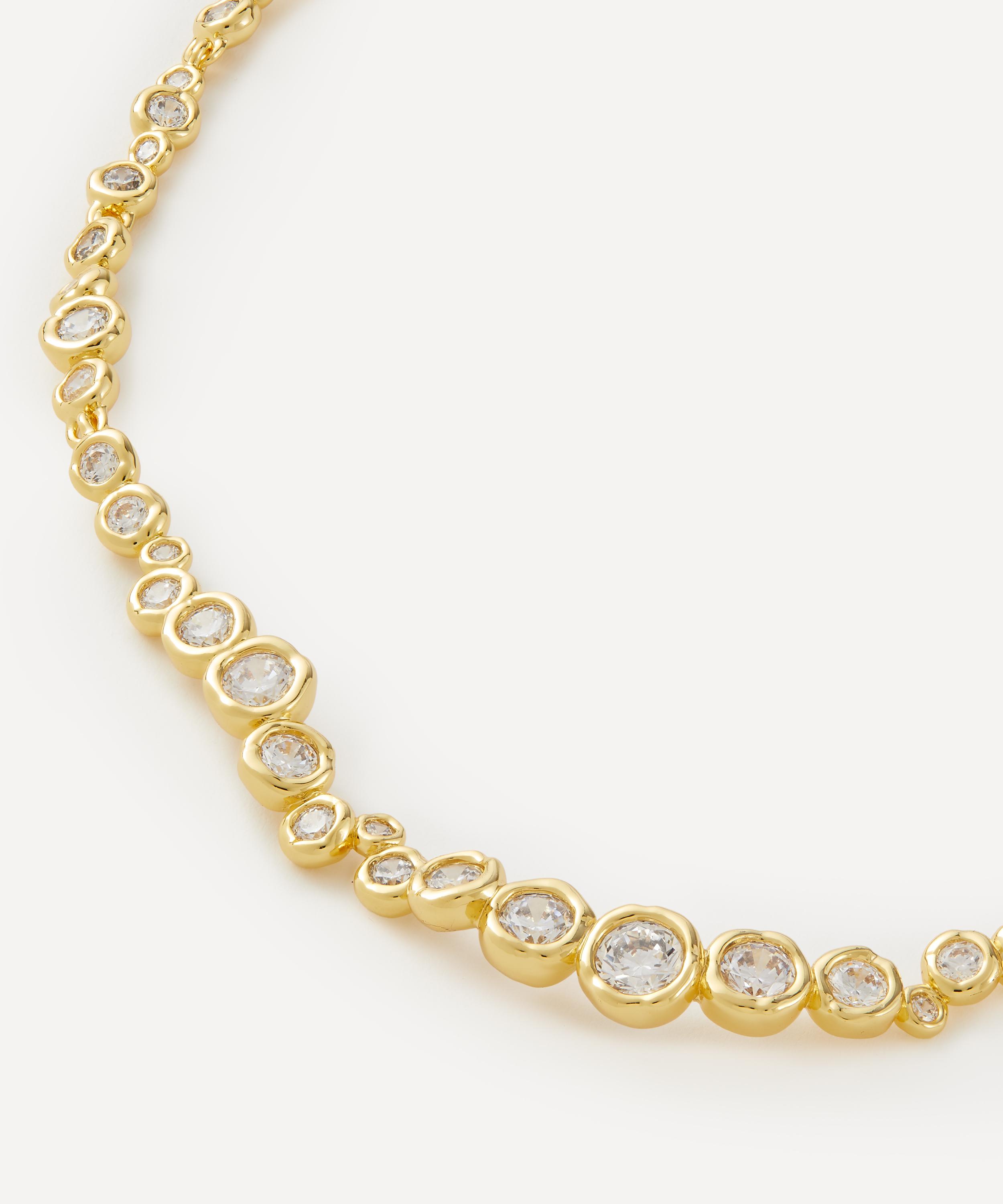 Turn heads with this statement-making riviera necklace from acclaimed jewellery designer Alexis Bittar. Crafted from 14ct gold-plated brass, it features mesmerising cubic zirconia crystals in molten bezel settings, staggered around the necklace in a slightly graduating design. Exuding classic, vintage elegance, it will look stunning as a standalone piece, or layered with additional necklaces.