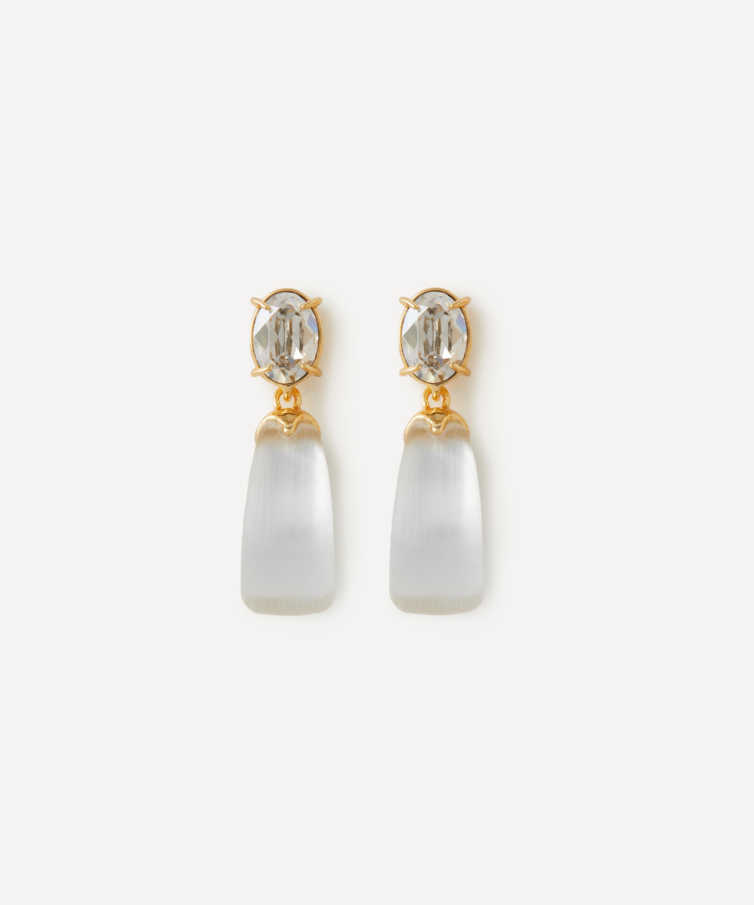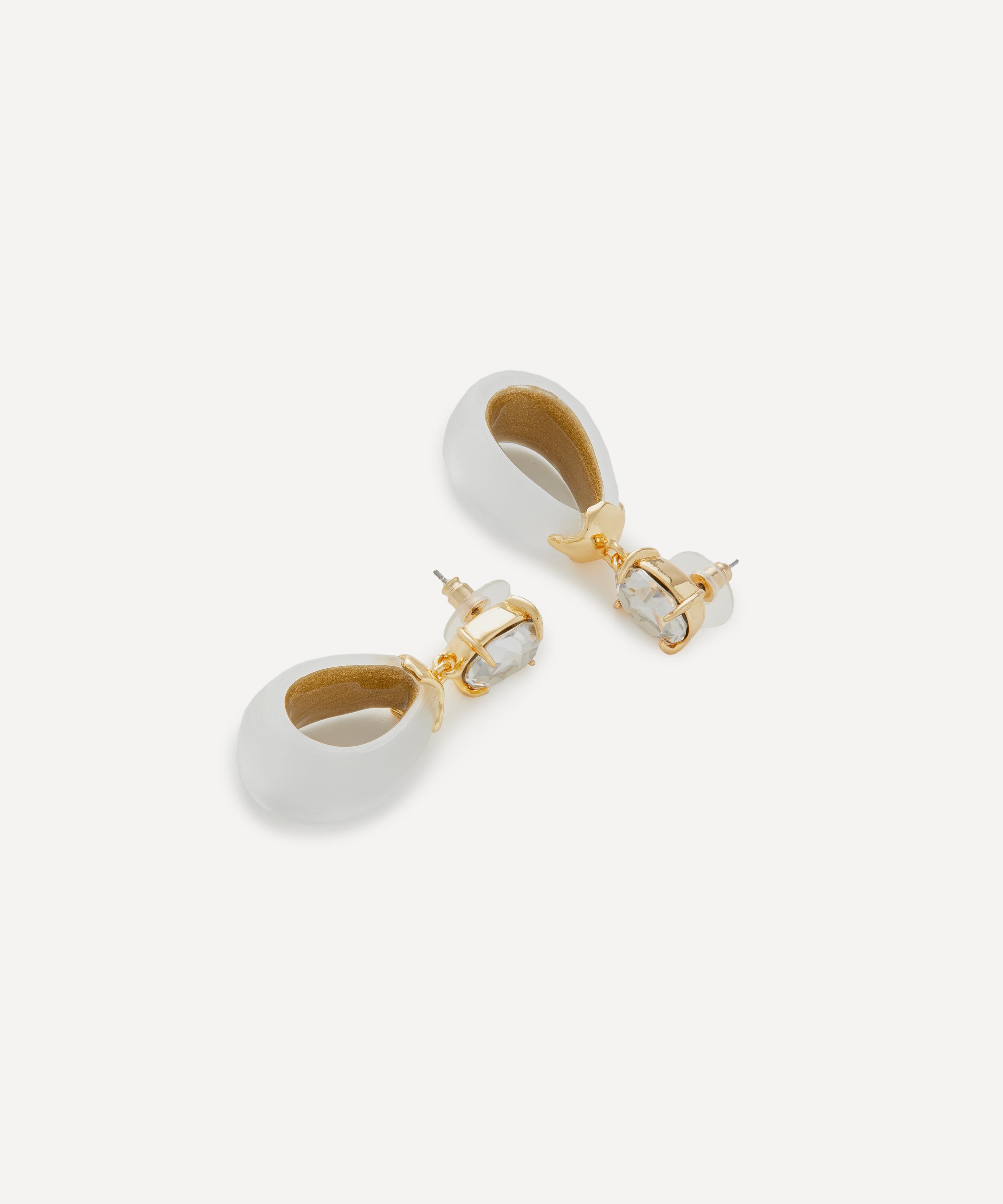 Give your line-up a statement look with these stand-out drop earrings from Alexis Bittar. Crafted from 14ct gold-plated, each earring features a sparkling crystal top, accented by a hand-carved Lucite hoop drop in a lustrous silver hue.