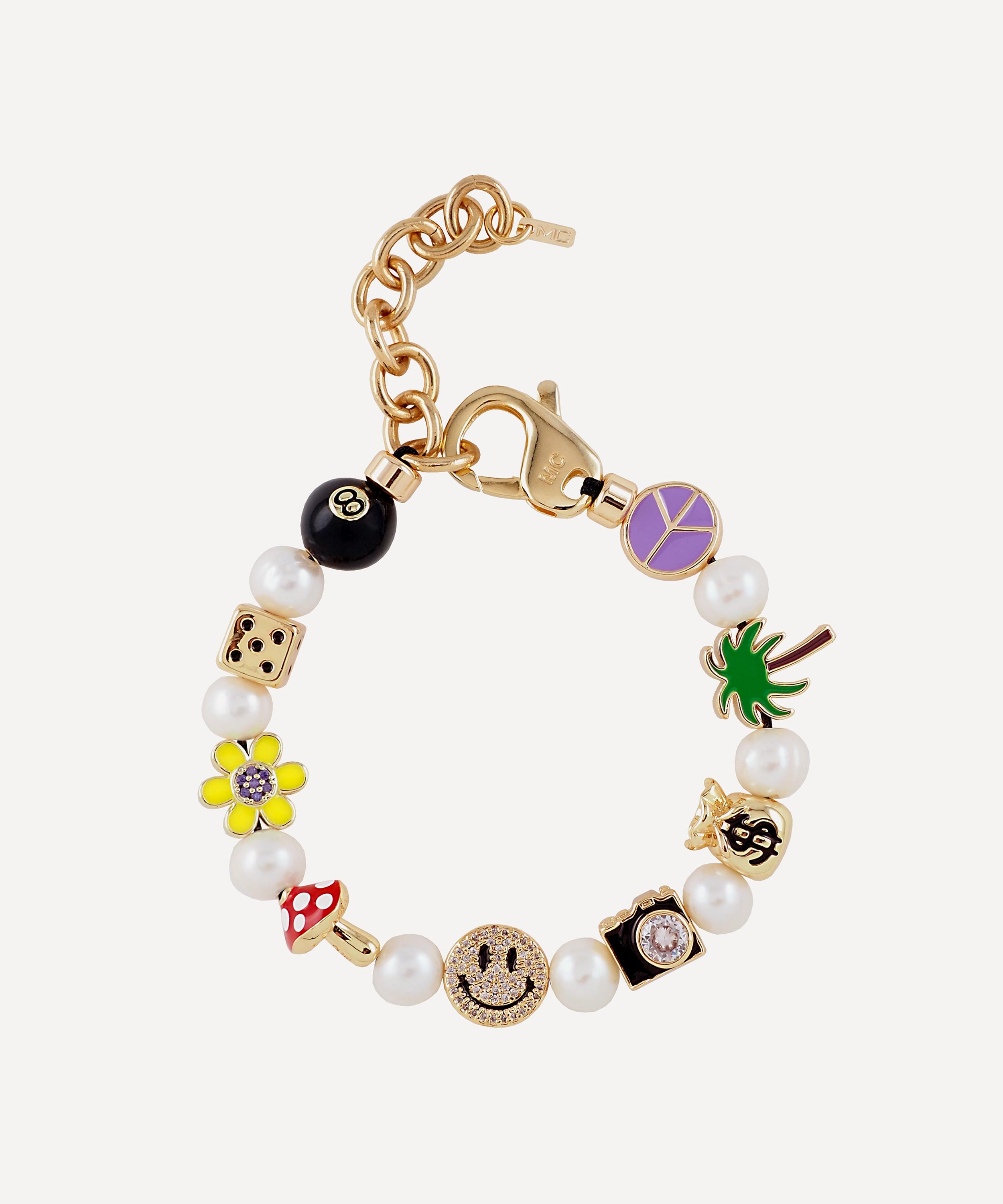 Martha Calvo 14ct Gold-Plated Famous Enamel Charms and Pearl Bracelet