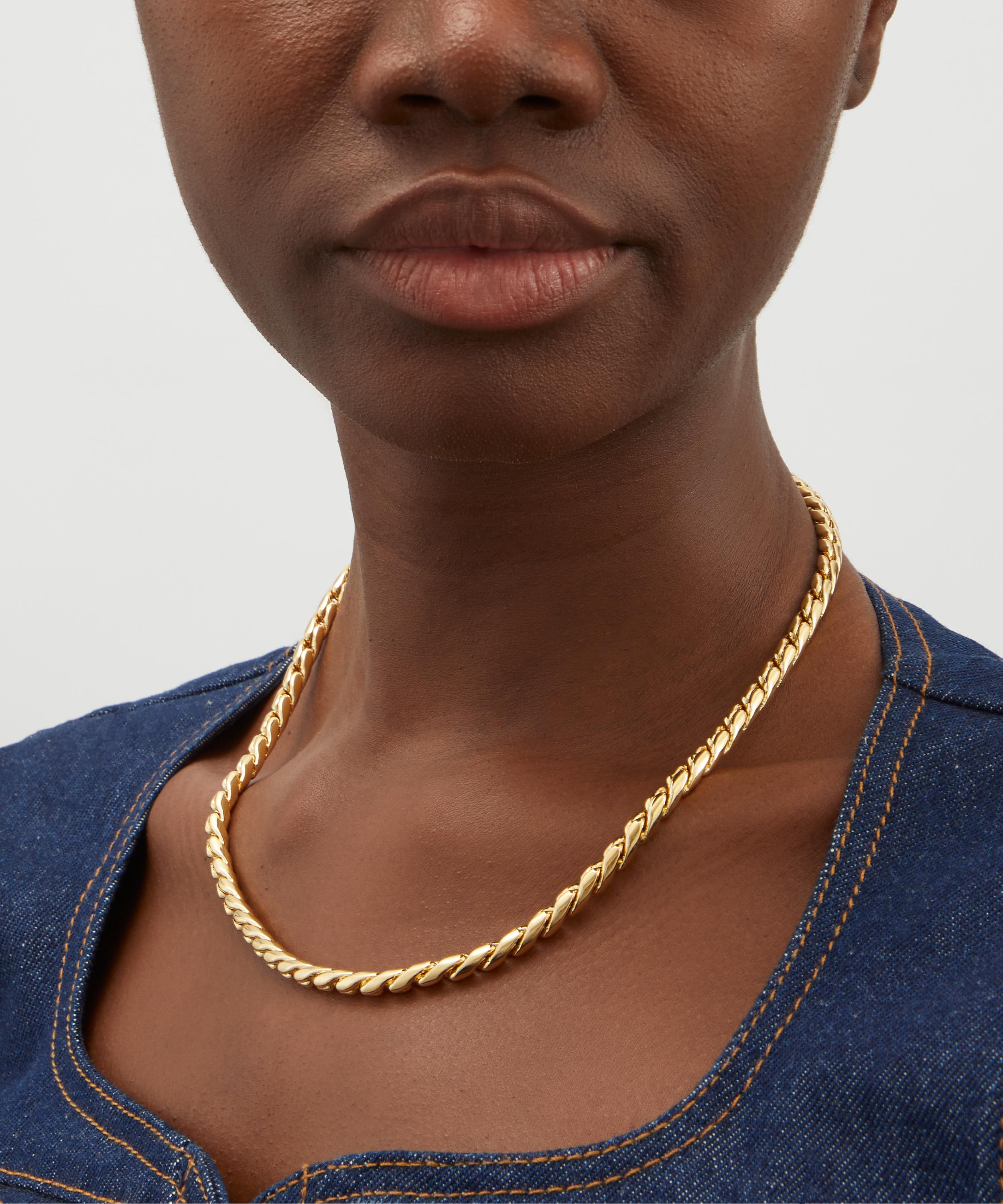 Add a fun statement and round off your outfit with the Hudson chain necklace from Martha Calvo. Crafted from 14ct gold-plated brass, it features a twisted chain of interlocking links in a polished finish. Wear it solo, stack it with your favourite necklaces, or try pairing it with one or two of the brand’s beaded styles.