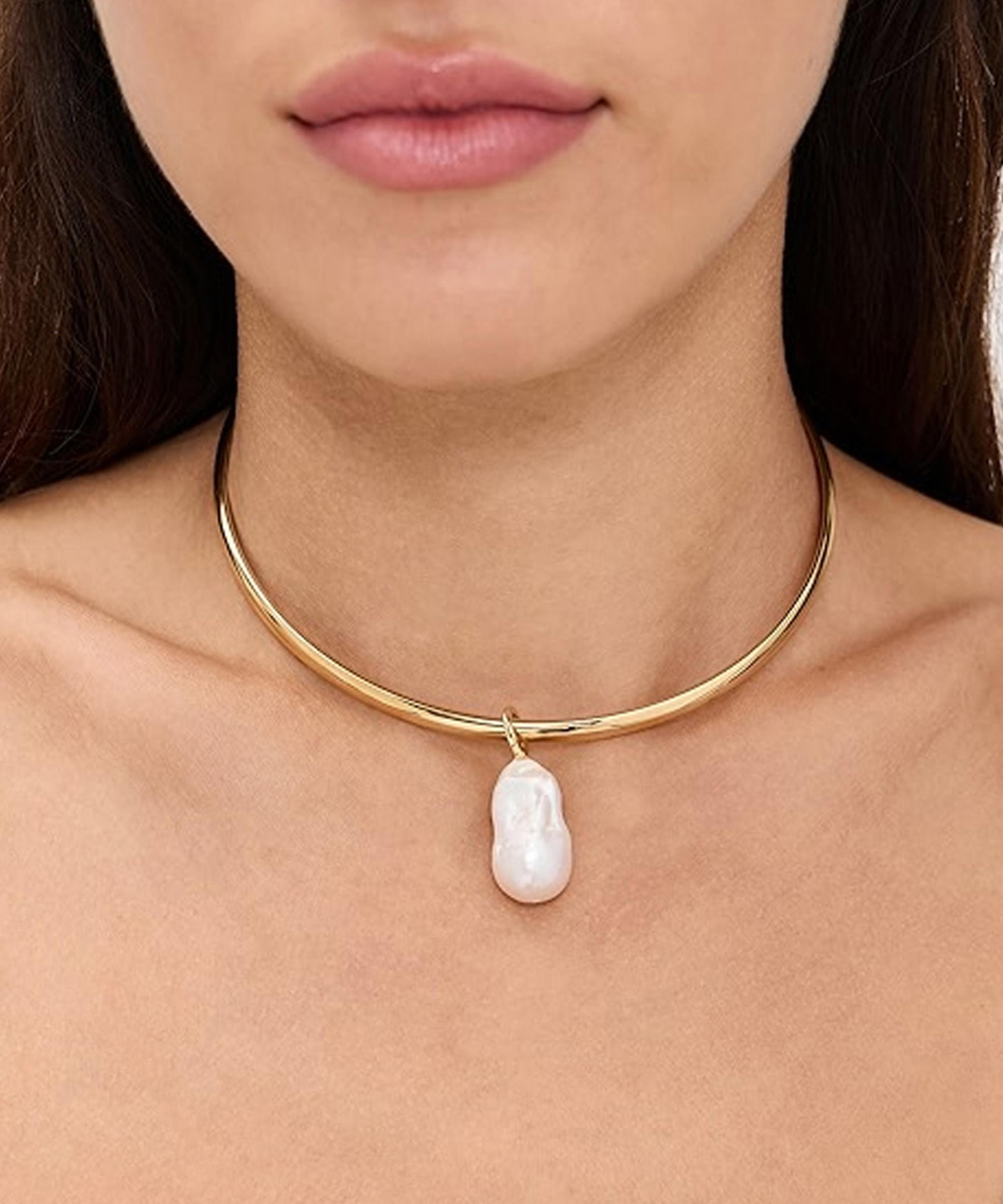 Melding minimalist elegance with a distinctly modern appeal, SHASHI’s Jones Cuff Necklace will effortlessly refine your look. Crafted from 14ct gold-plated brass, it features a sleek, polished cuff accented by an opulent freshwater pearl drop. Perfect for both everyday wear and special occasions, it can be styled on its own for a subtle yet impactful statement or be incorporated into a curated necklace stack.