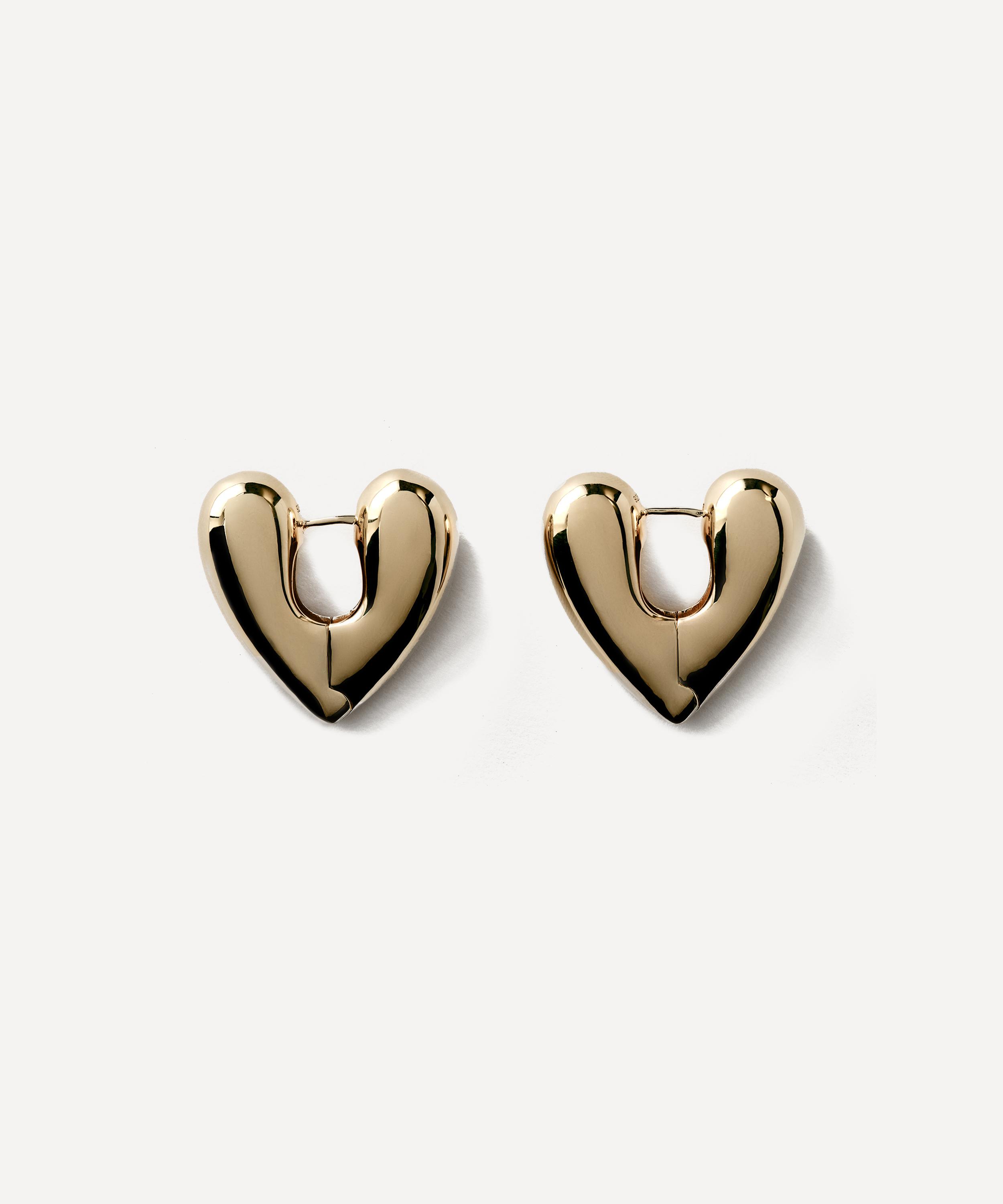 Offering a sculptural, minimal design, each hoop is uniquely crafted from polished 14ct gold-plated silver into a chunky, heart-shaped silhouette. Wear them on their own for a subtle statement, or partner them with a selection of studs and hoops for a curated ear stack.