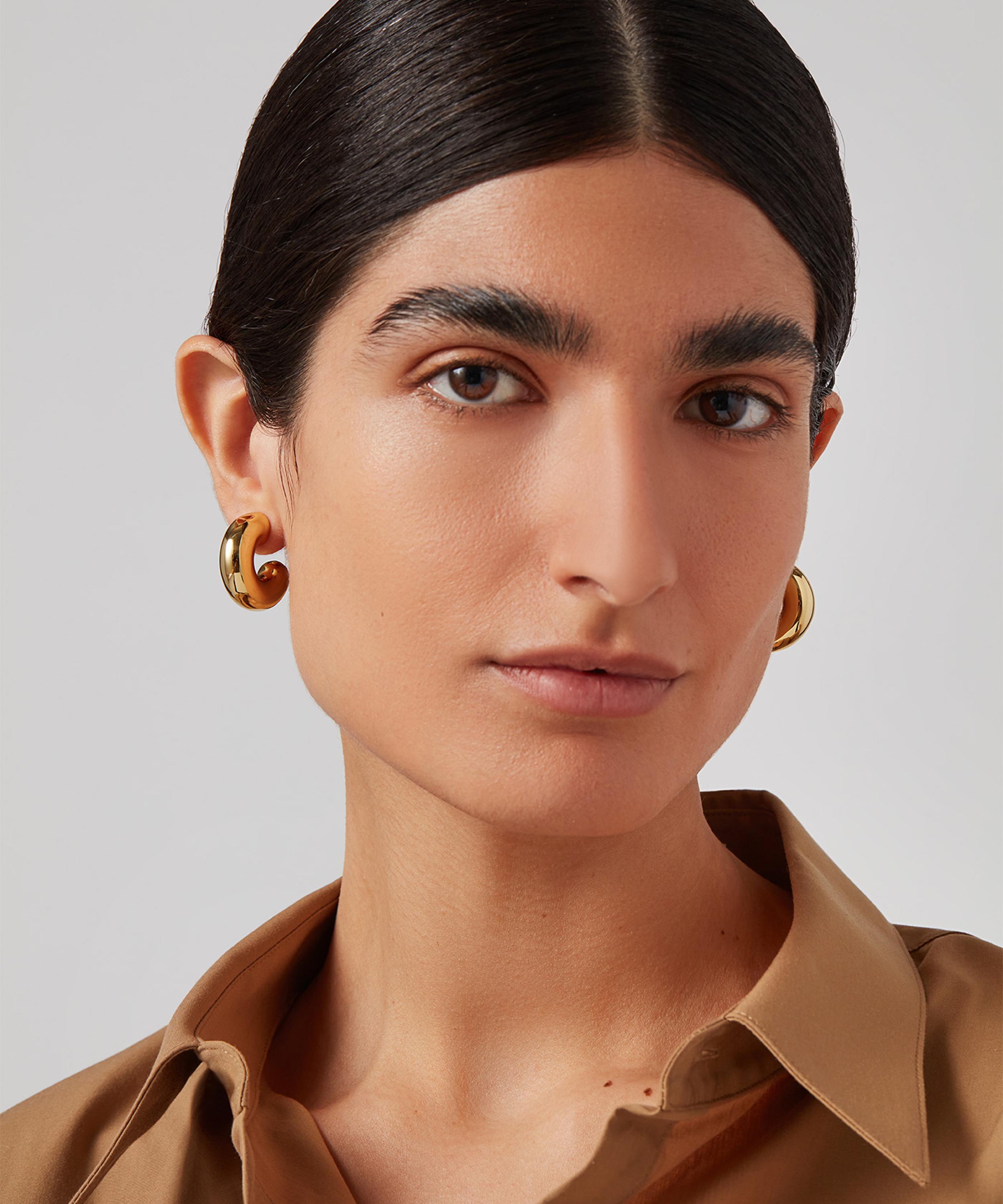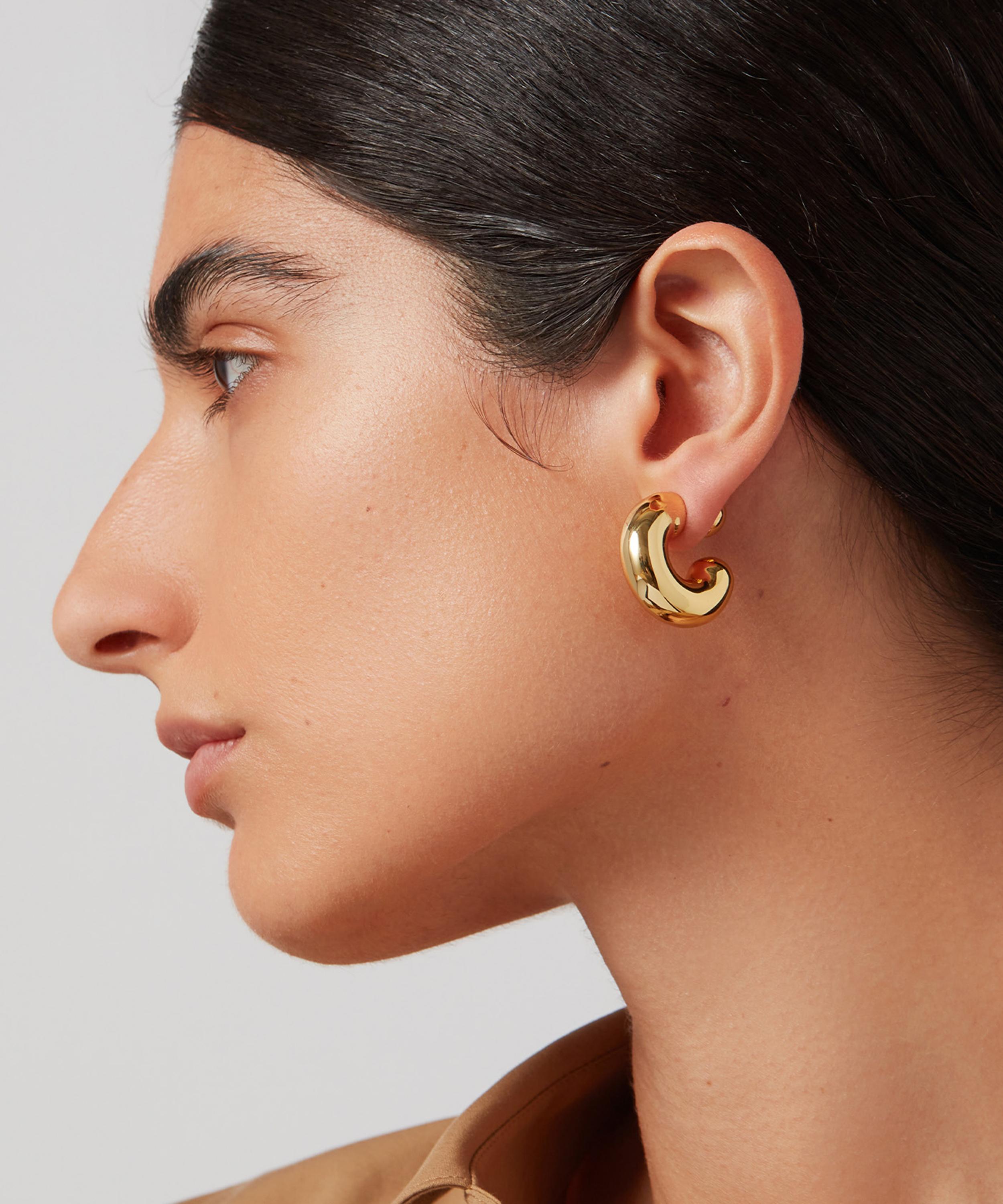 Celebrate the power of good style and the art of getting dressed with the Tome hoop earrings from JENNY BIRD. Fashioned into a tubular, chubby silhouette in gold-plated brass, the design is complete with a classic post backing. Fashionable and ultra-versatile, they can be worn solo or layered with other earrings to create a trend-led stack.