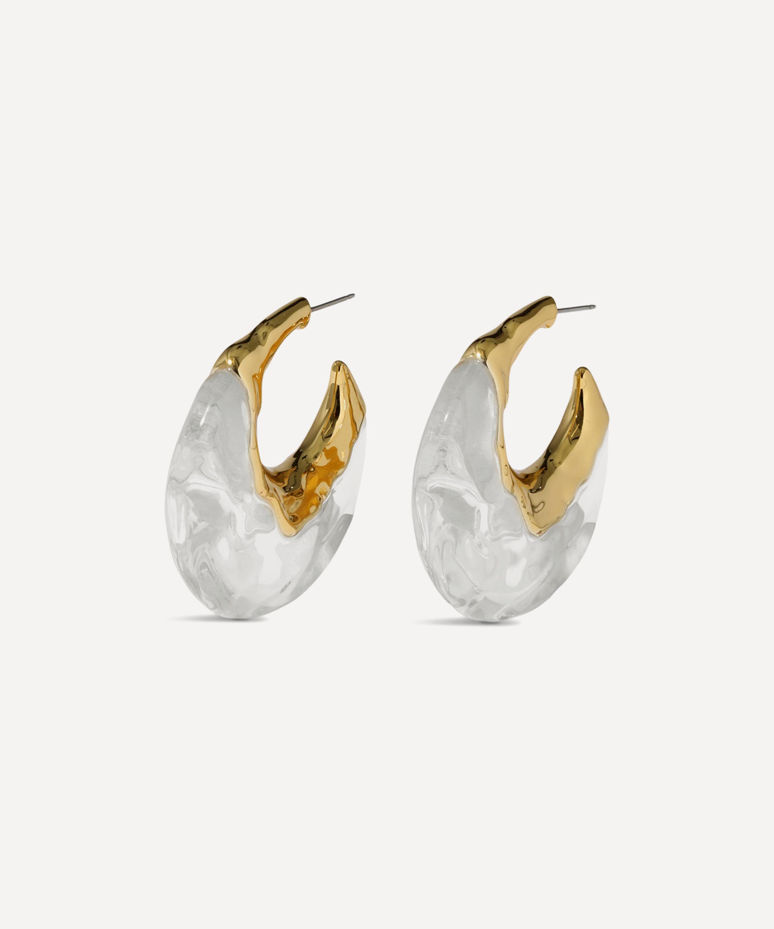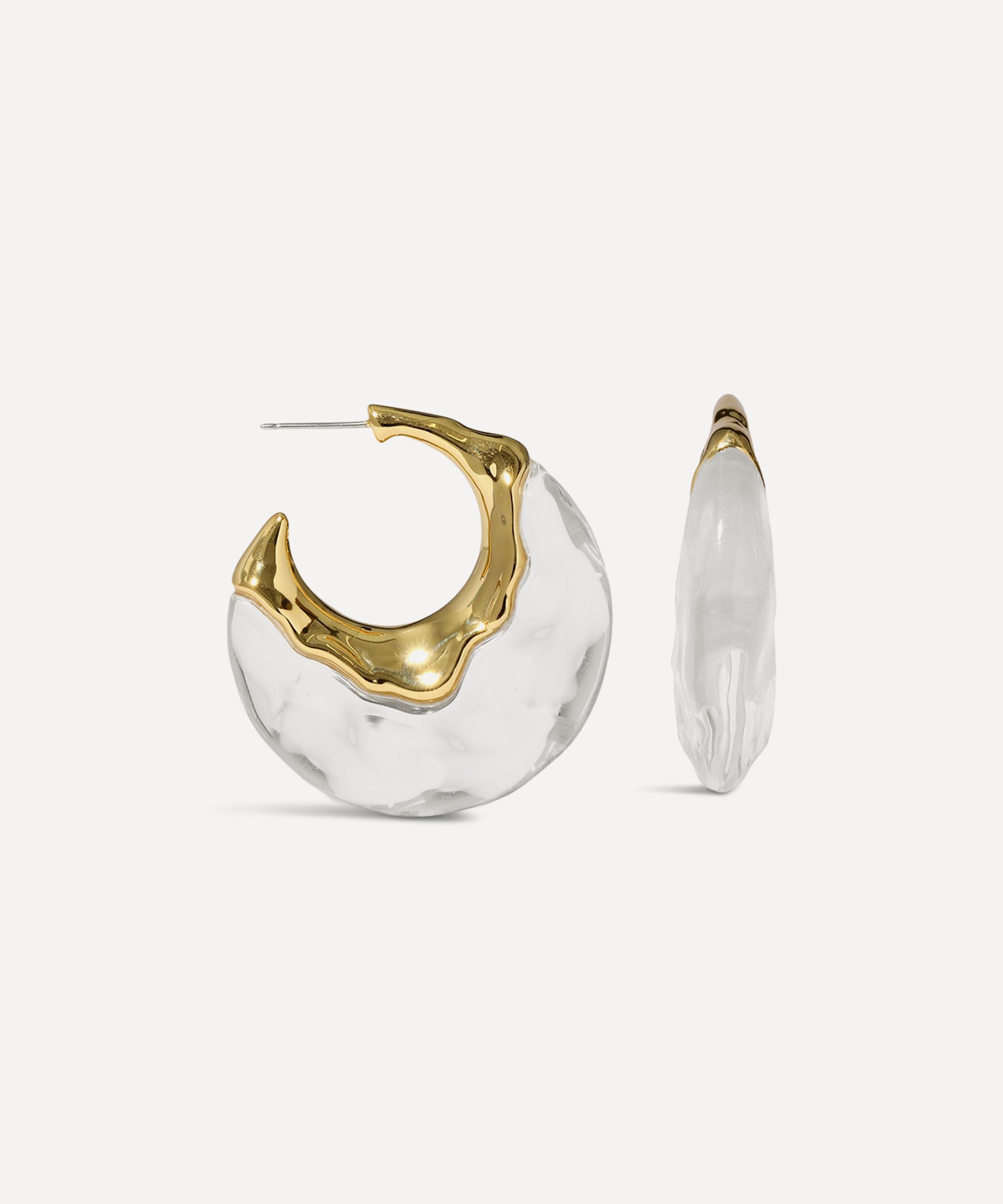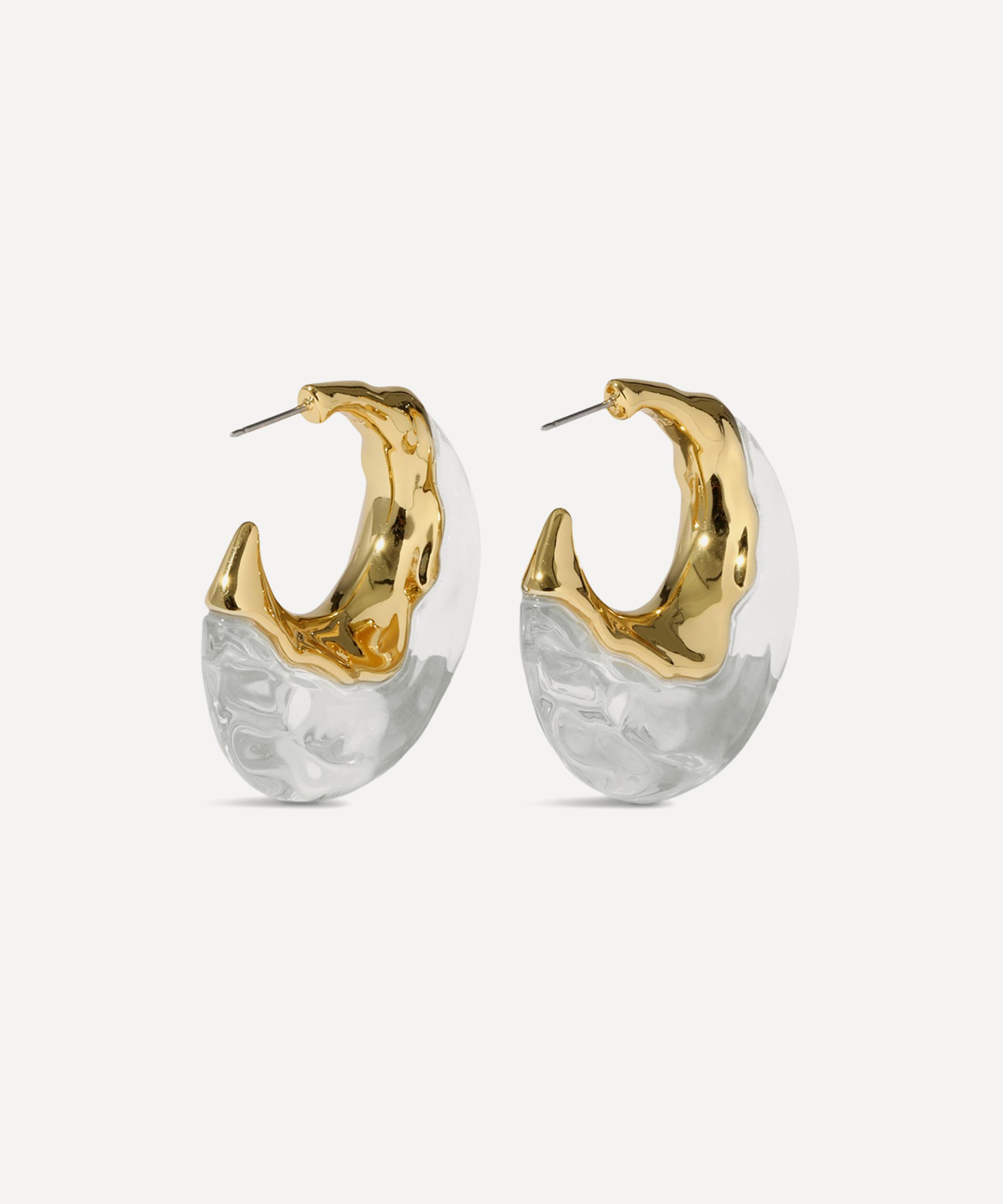 Turn heads with these statement-making hoop earrings from acclaimed jewellery designer Alexis Bittar. Featuring the brand’s signature Lucite design, each hoop is made up of radiant, hand-sculpted Lucite, accentuated by fluid, molten metalwork in 14ct gold-plated brass.