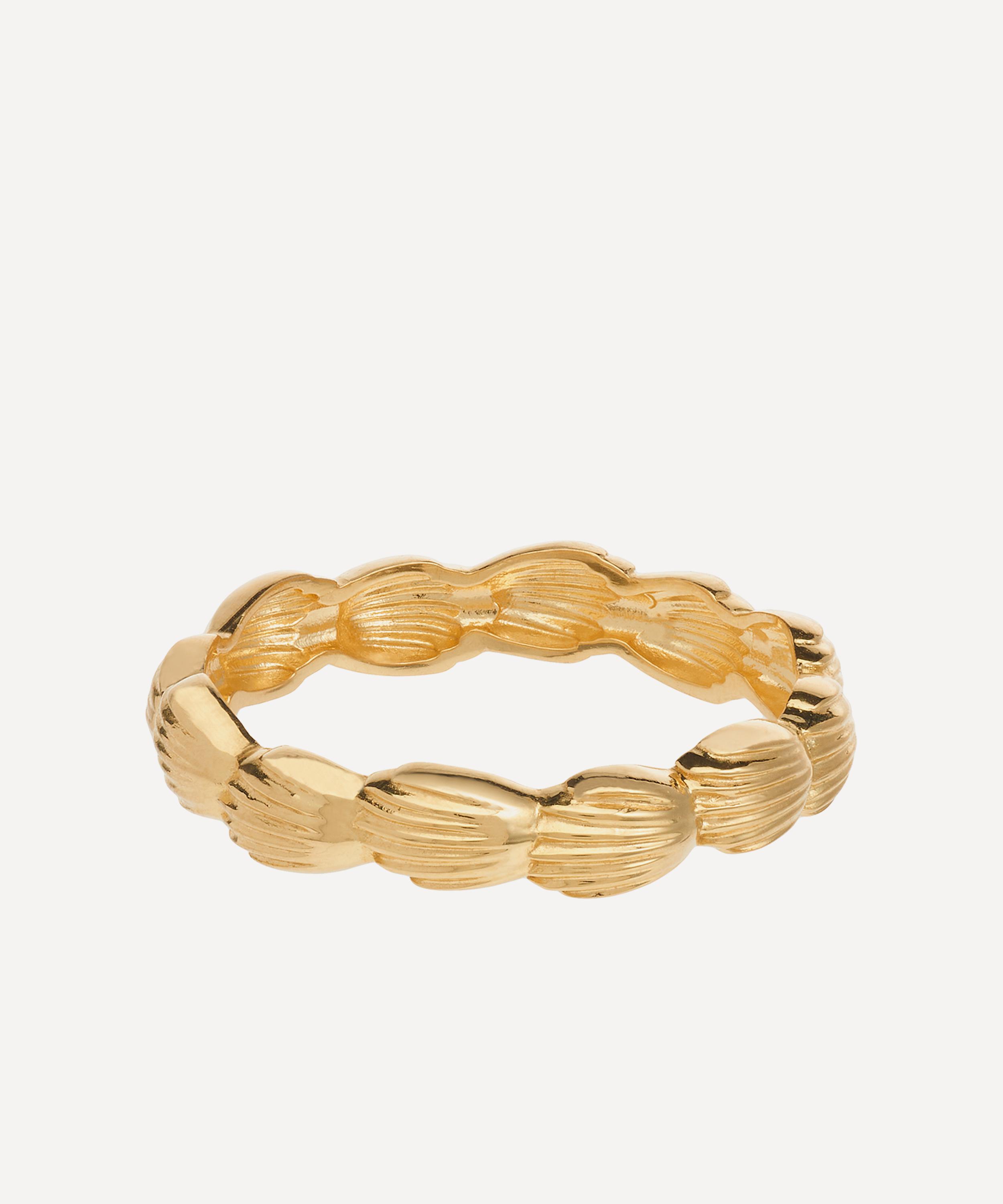 Crafted from 14ct gold-plated silver, this piece features a wide band, made up of a row of the iconic French sweet – style it solo, stack with other rings or team it with the co-ordinating Madeleine hoop earrings for a delectable curation.