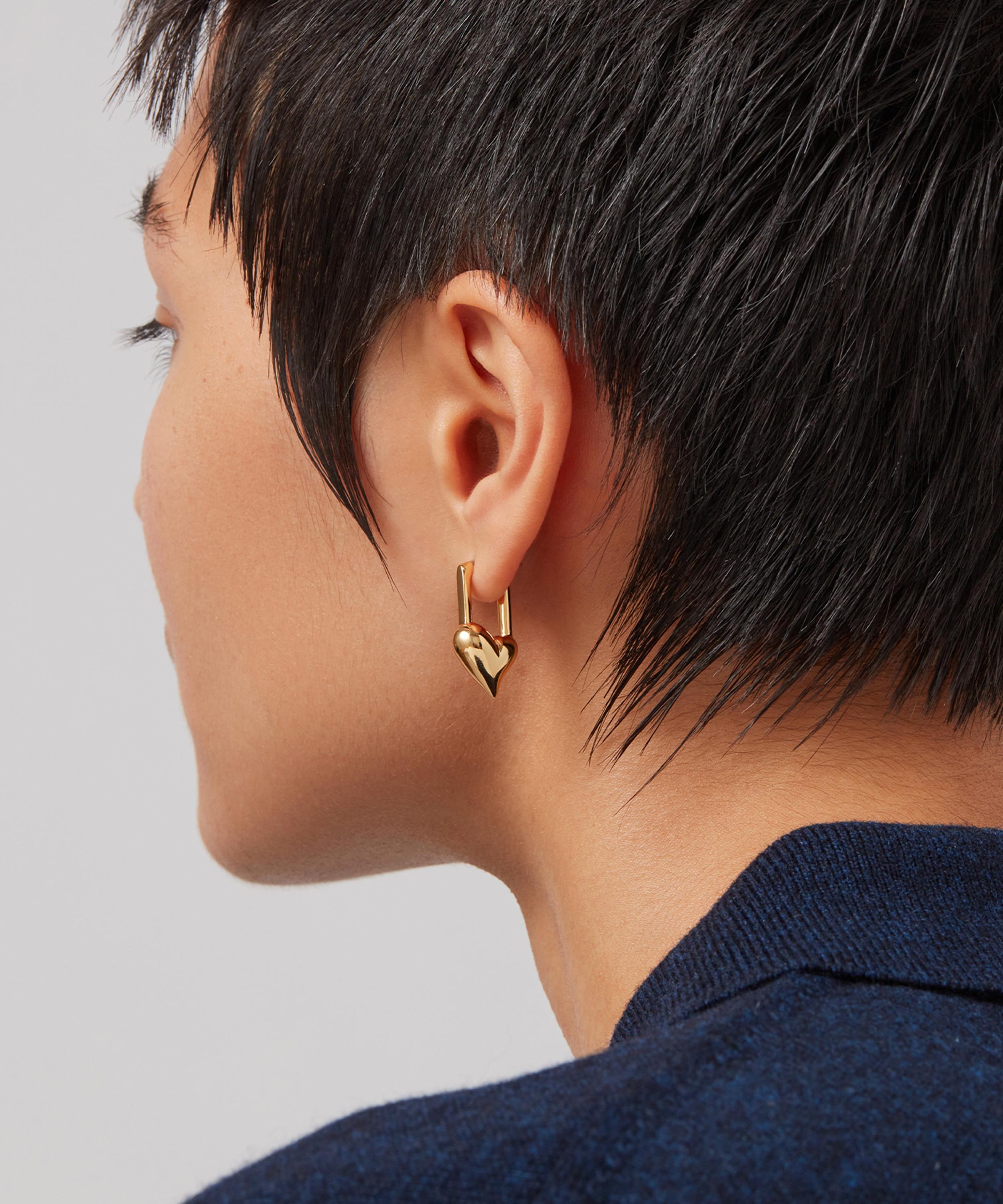 Celebrate the power of good style and the art of getting dressed with these huggie hoop earrings from JENNY BIRD. Fashioned into a charming padlock heart in 14ct gold-plated brass, they’re finished with a classic hinge clasp. Fashionable and ultra-versatile, they can be worn solo or layered with other earrings to create a trend-led stack.