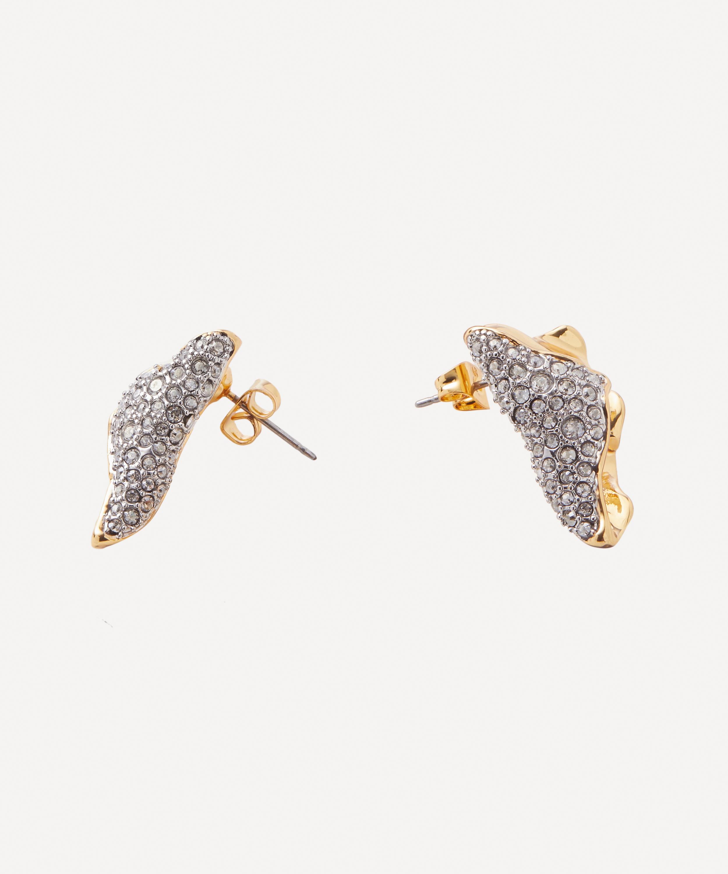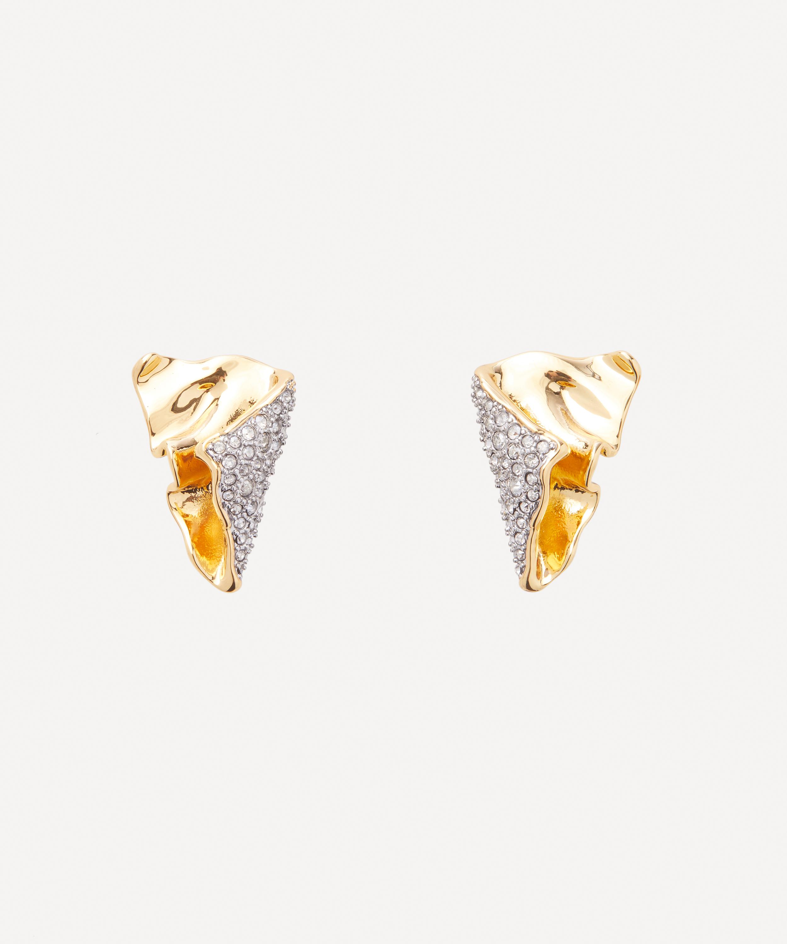 Exemplifying the brand’s bold and artistic aesthetic, Alexis Bittar presents the Solanales Crystal Folded Mini stud earrings. Crafted from 14ct gold-plated brass, each earring features a sculptural fold-over silhouette with crumpled metalwork and micro pavé crystals in a silver-tone setting.