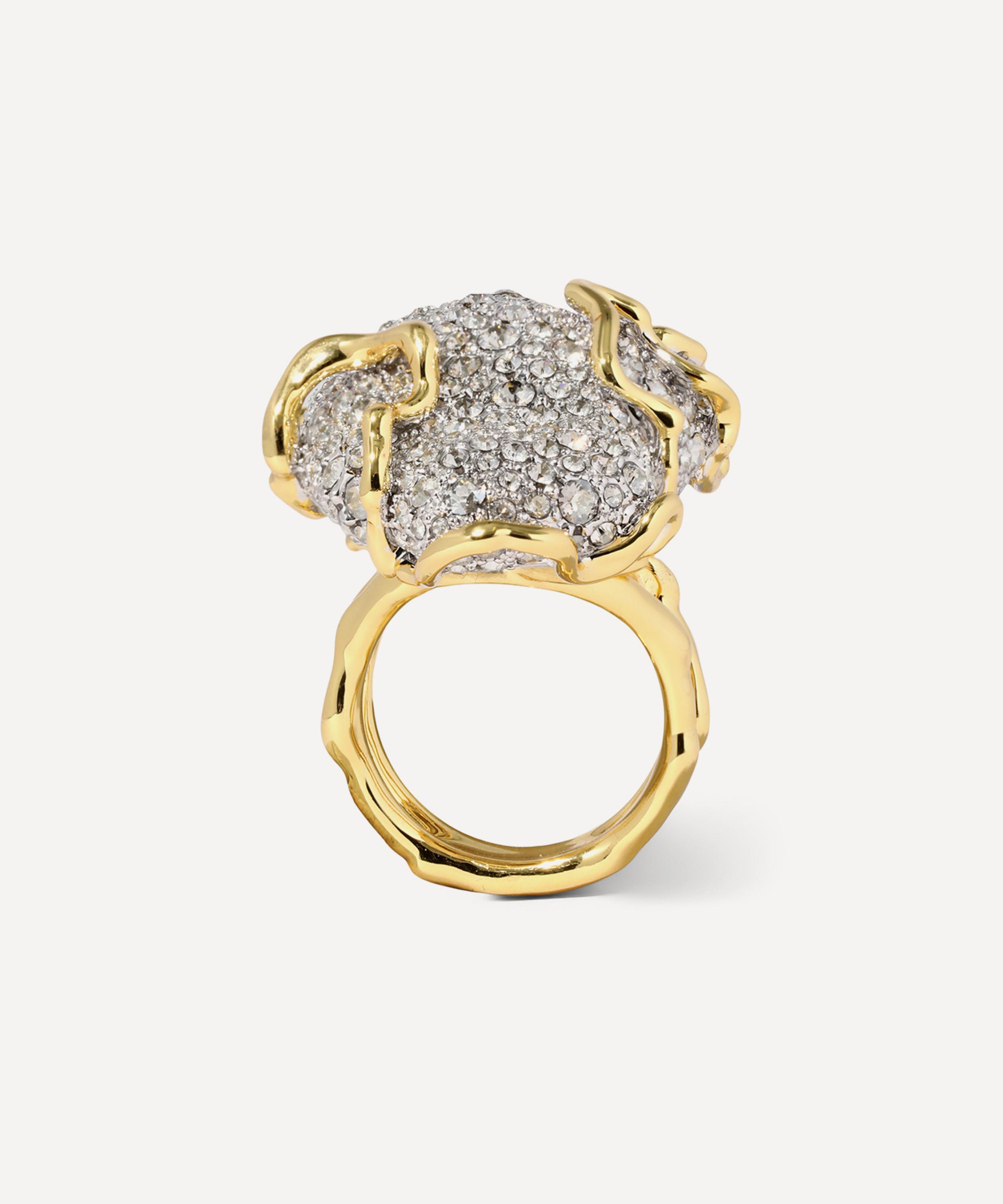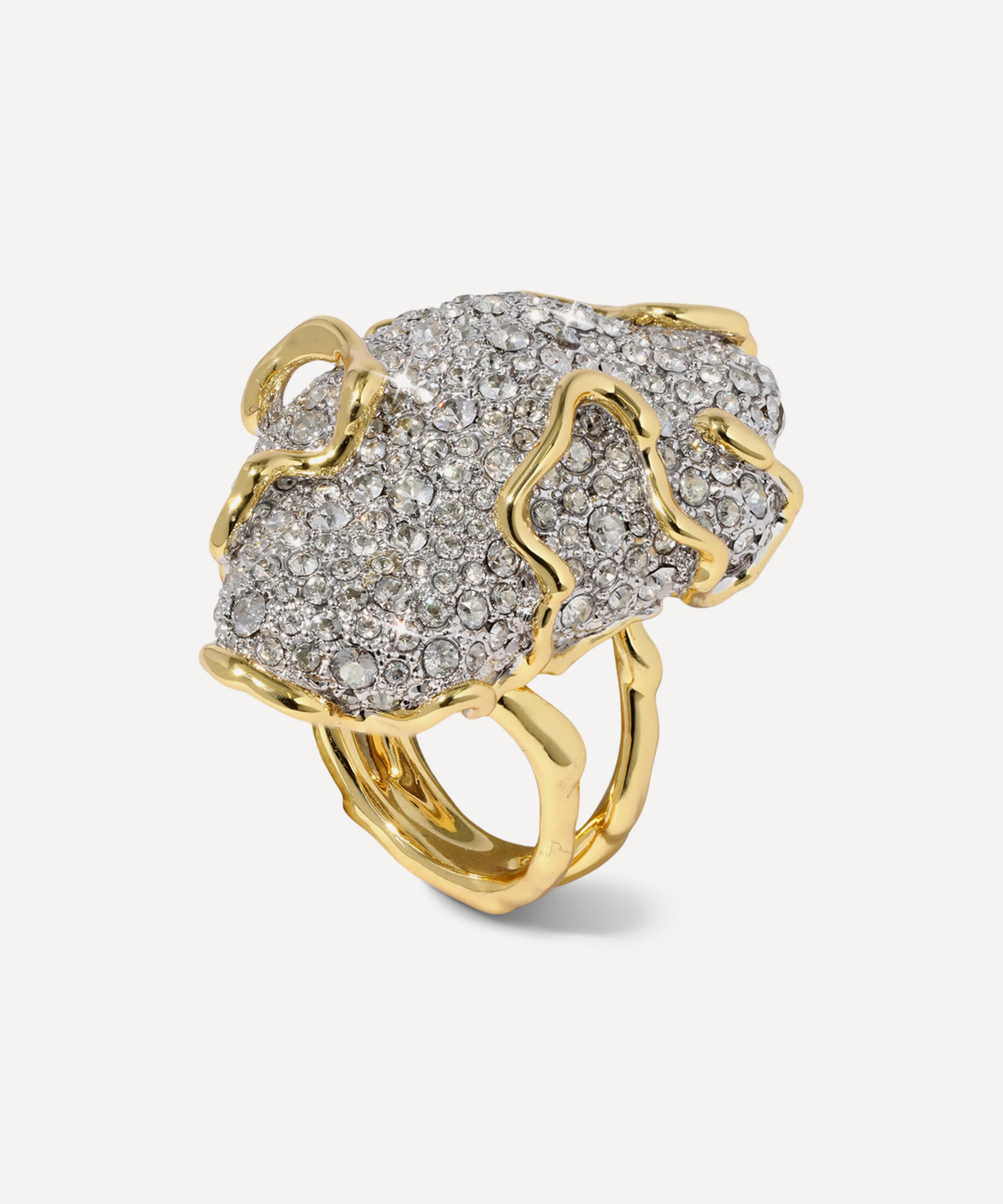 14ct Gold-Plated Solanales Crystal Pavé Pebble Ring